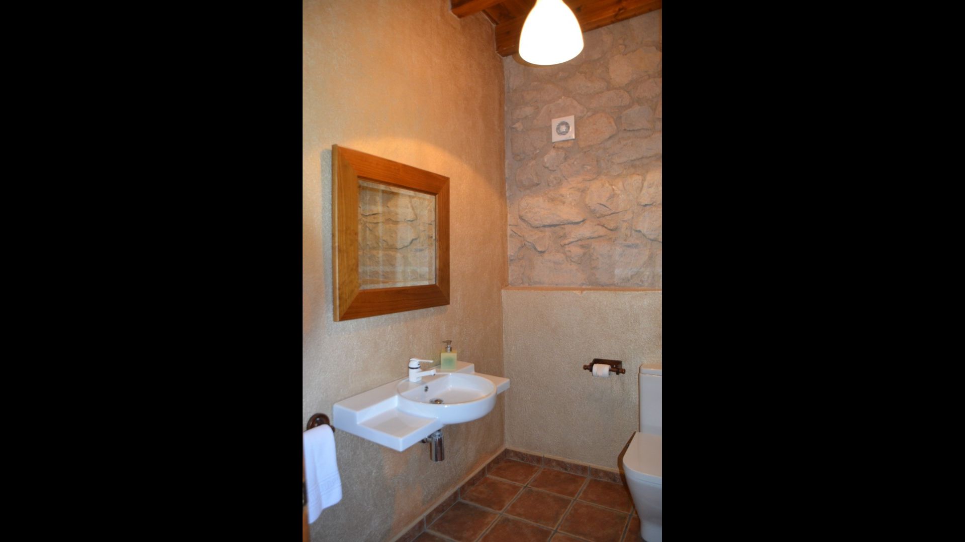 Hidues habitacions a la planta primera, on també hi ha la cuina, el menjador i la terrassa superior. Un dormitori té un llit de matrimoni i un dormitori té dos llits individuals. Comparteixen bany.