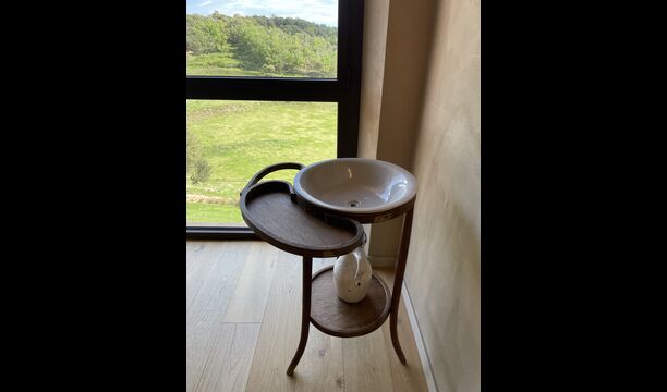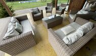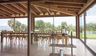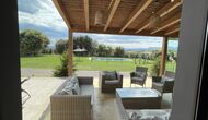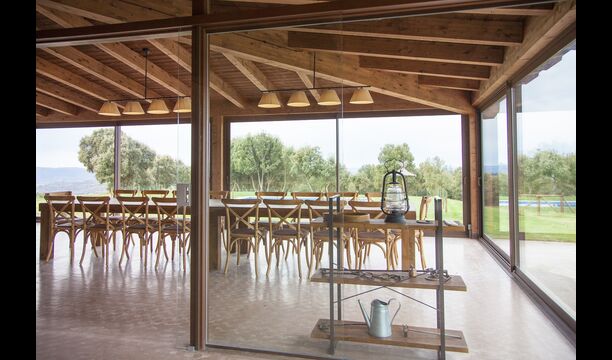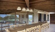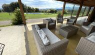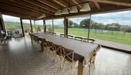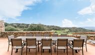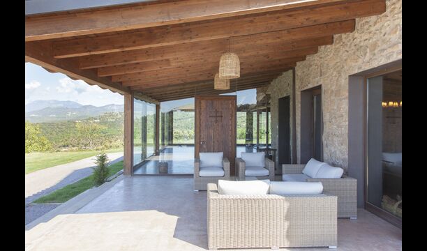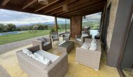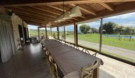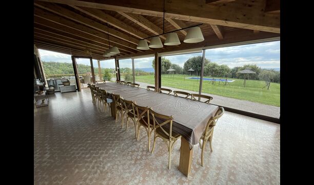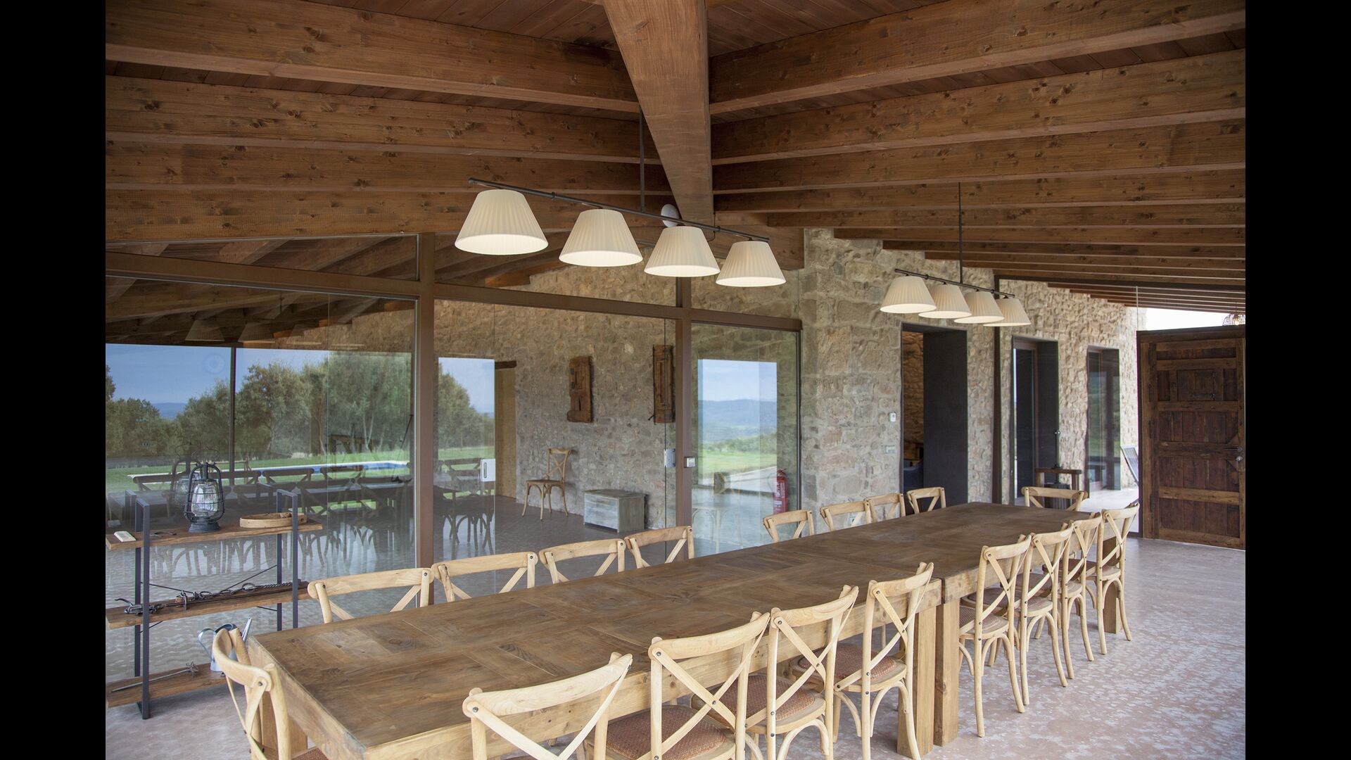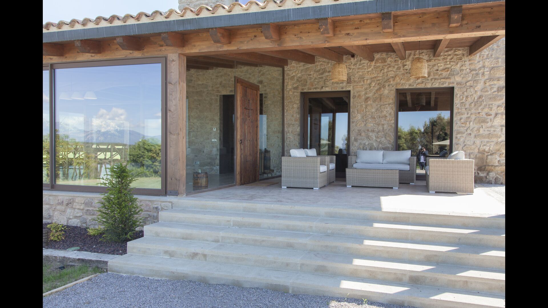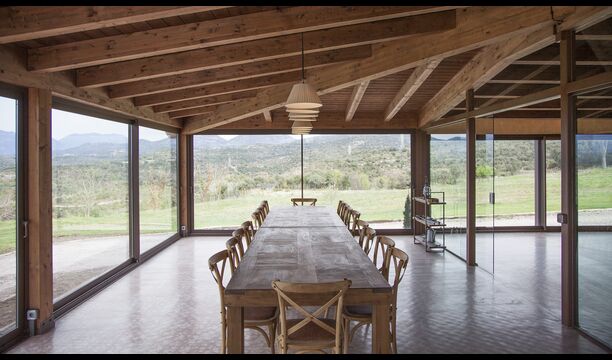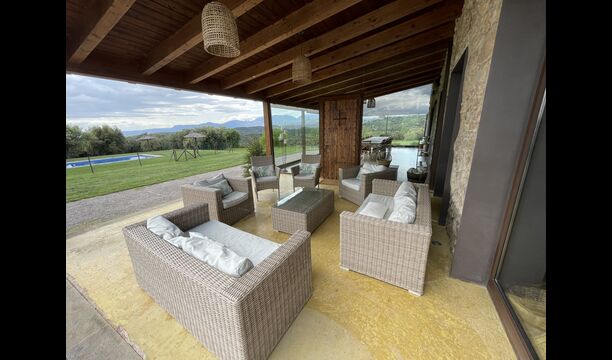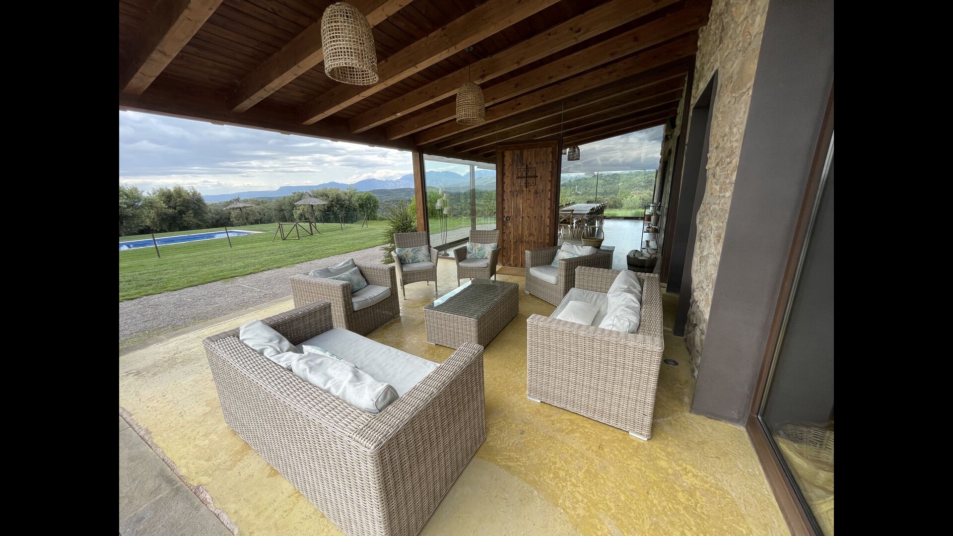 A la planta baixa hi ha un porxo situat davant de la piscina i amb unes vistes espectaculars a les muntanyes. Des d'aquí es pot entrar al menjador, que té vistes al jardí a través dels grans finestrals.