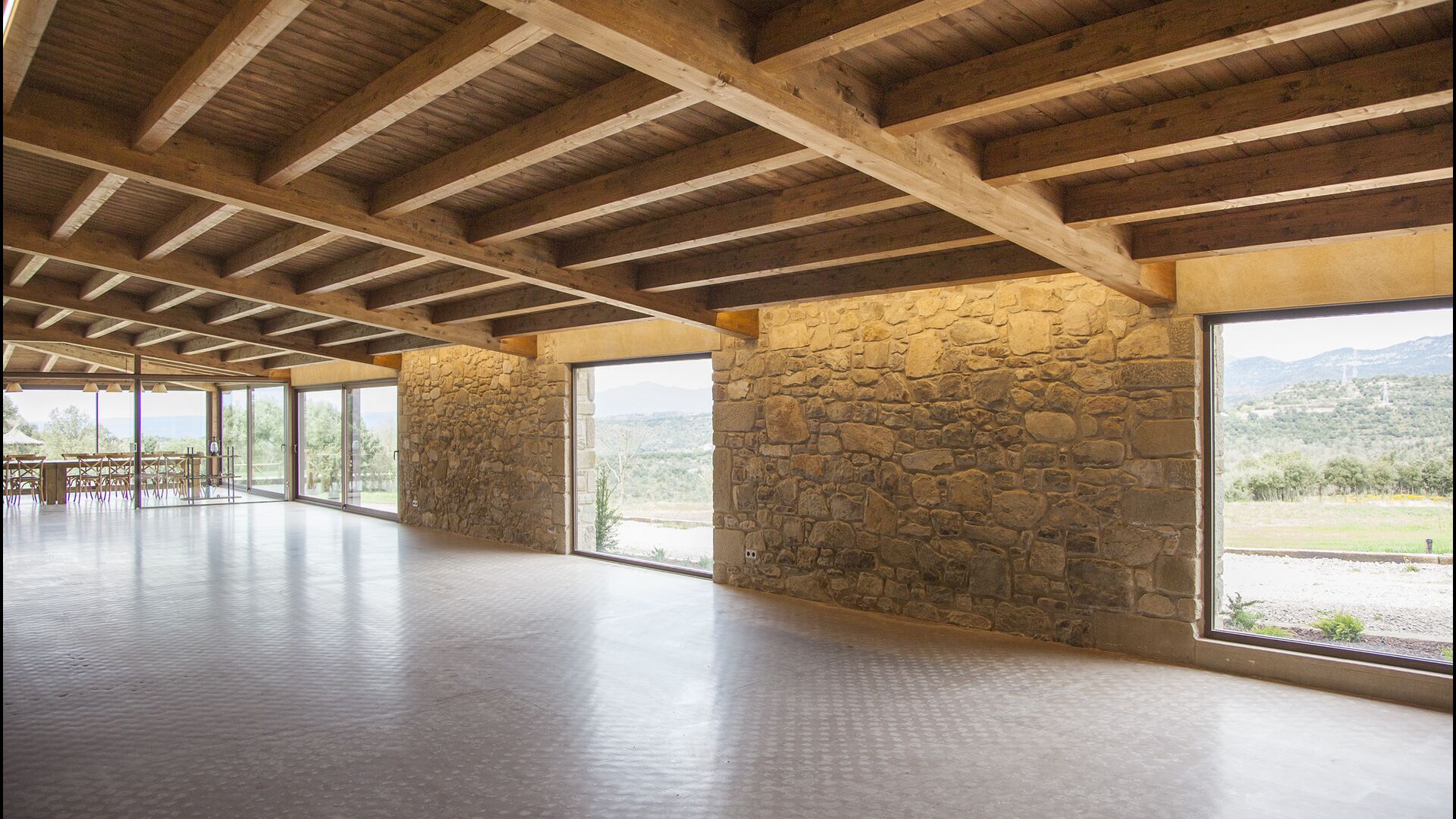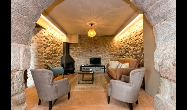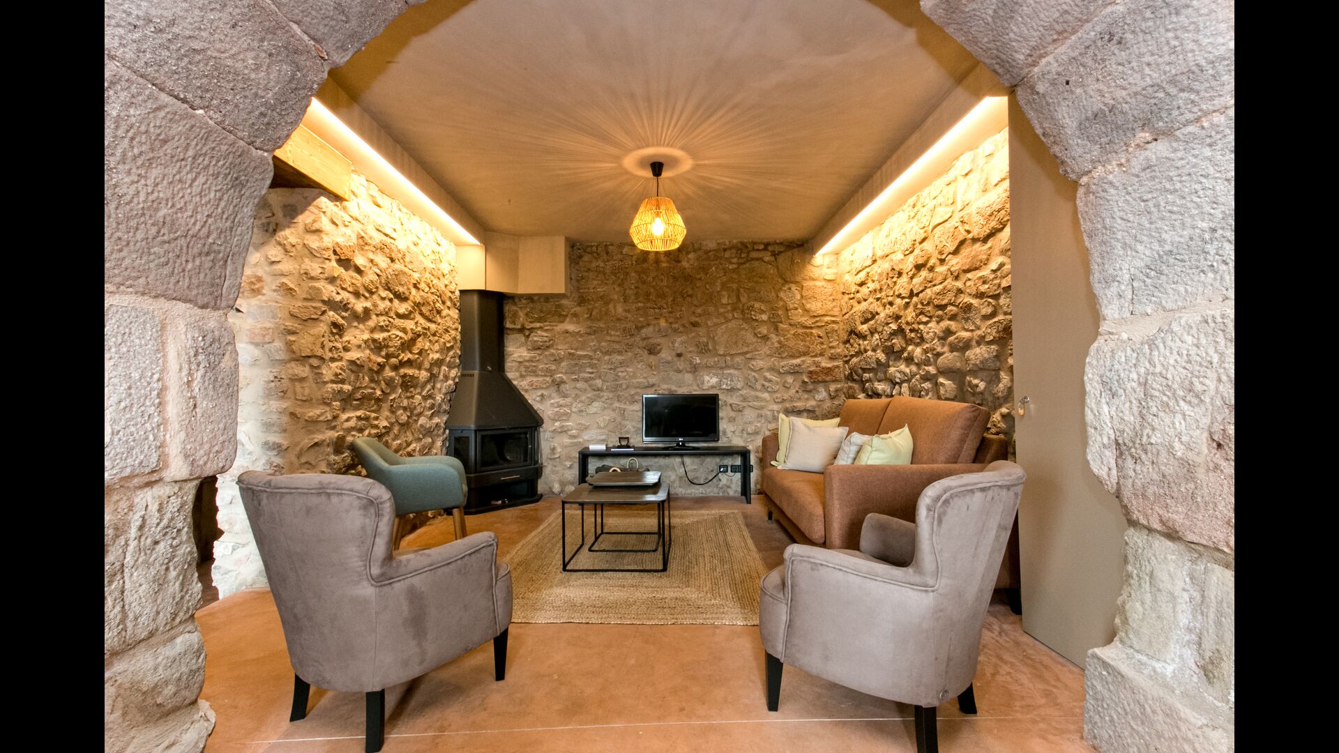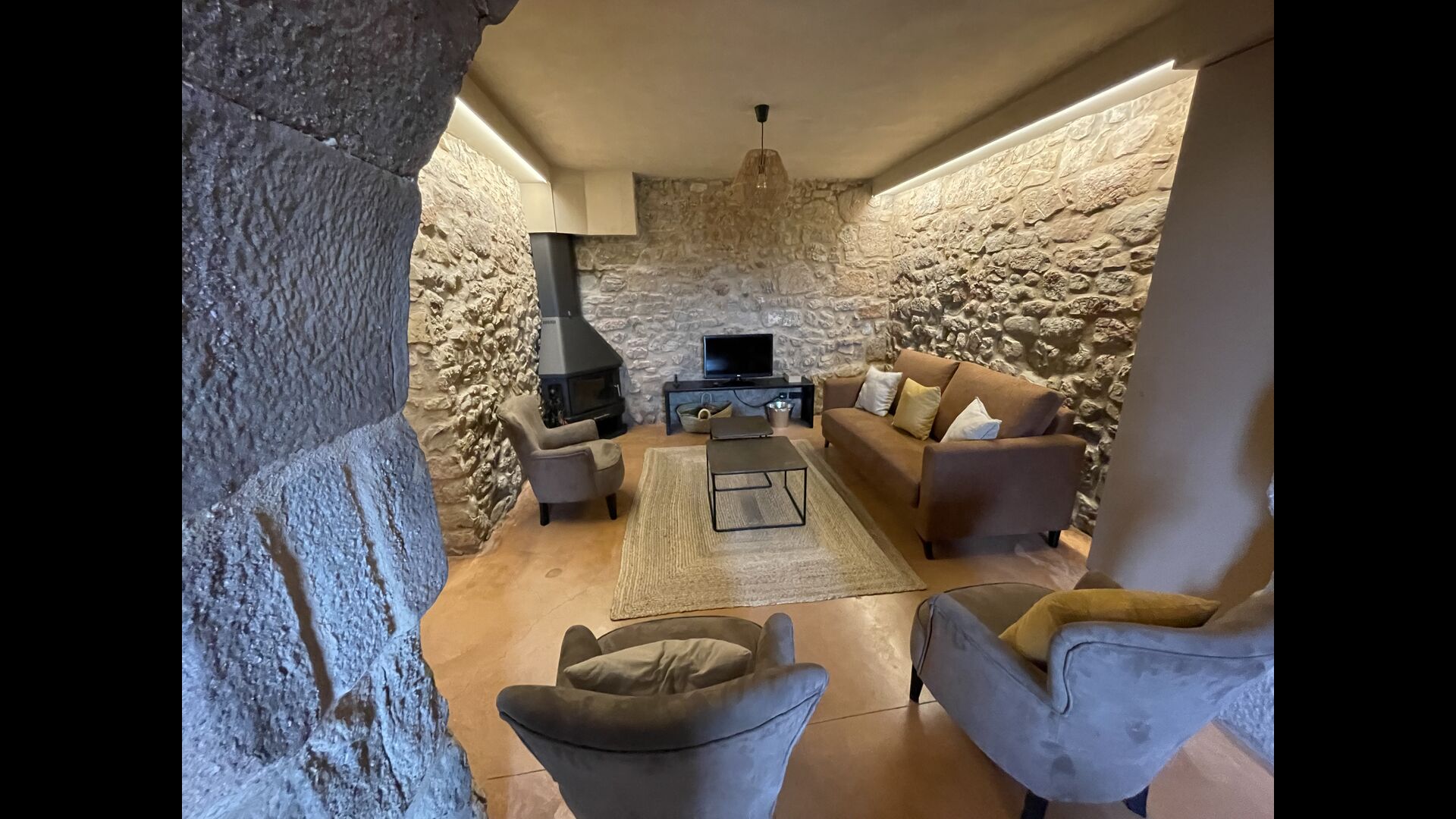 Una casa espectacular, plena de detalls de la construcció original, emmarcada en mobles de fusta i teixits càlids.