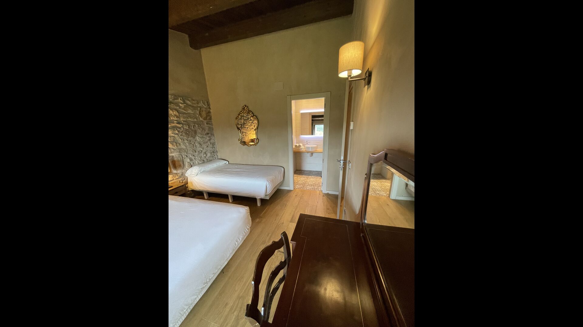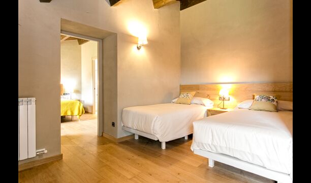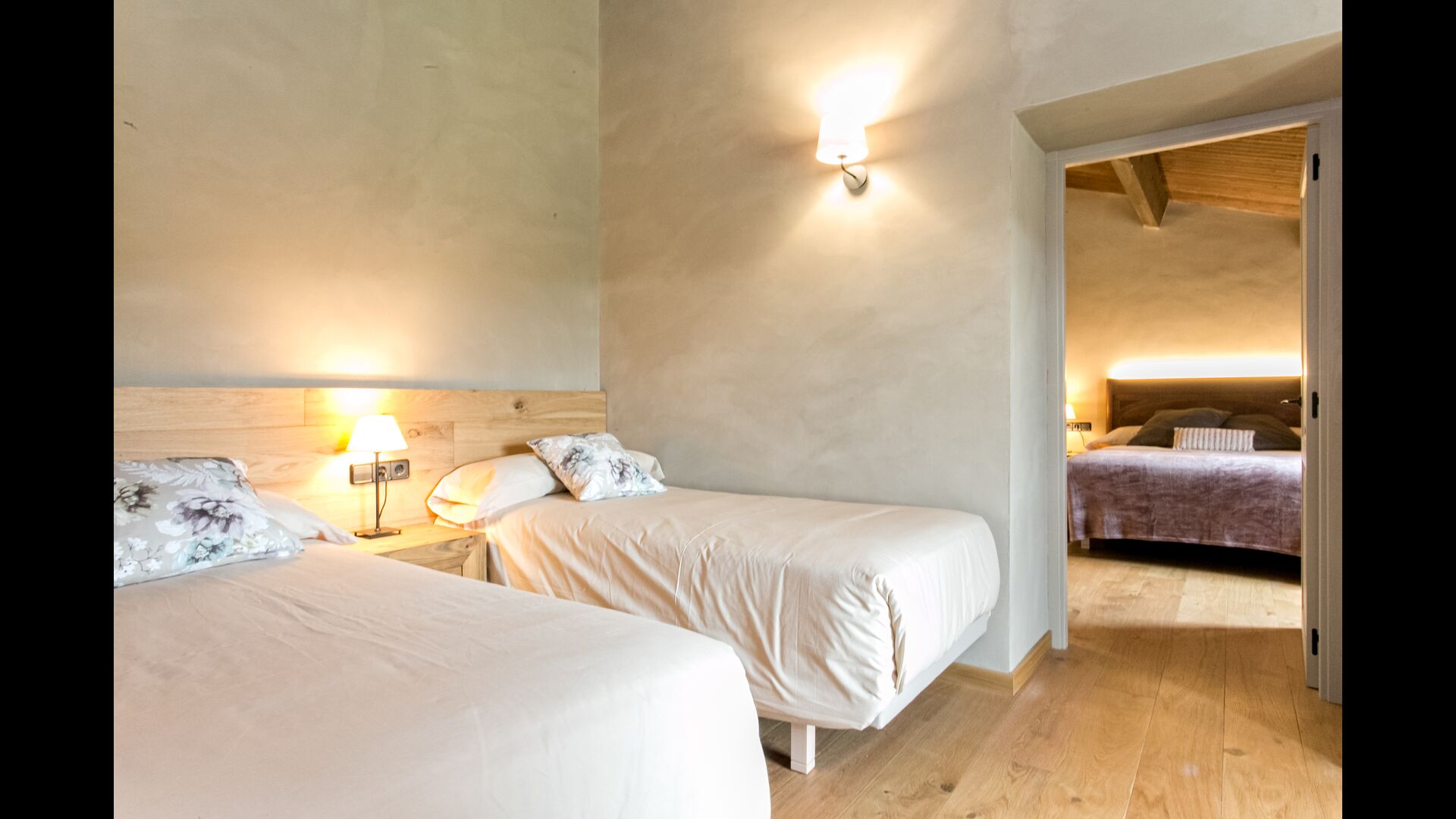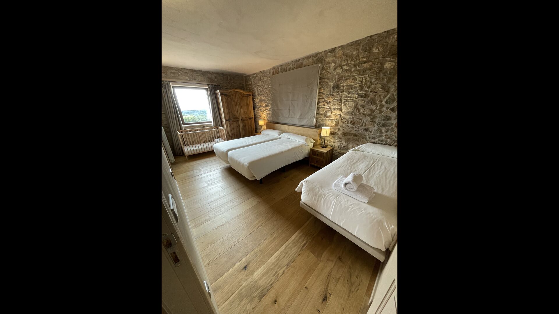 A la primera planta hi trobareu 6 grans habitacions dobles amb vistes a la natura, totes amb bany privat. A la segona planta trobem 2 habitacions dobles més, i 2 habitacions quàdruples (amb dos llits individuals i un llit de matrimoni, separades per una porta). Aquests també tenen totes les finestres exteriors