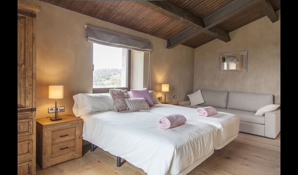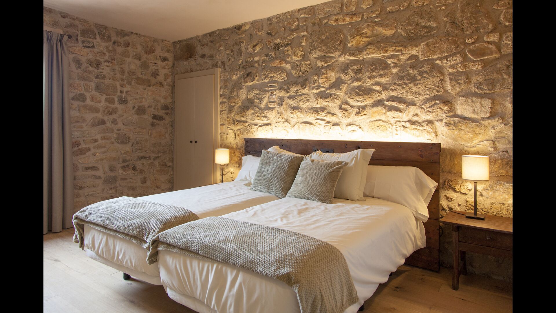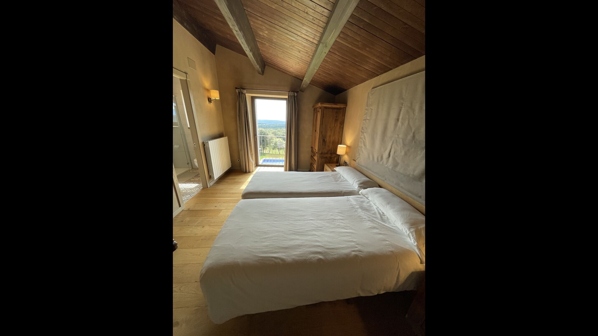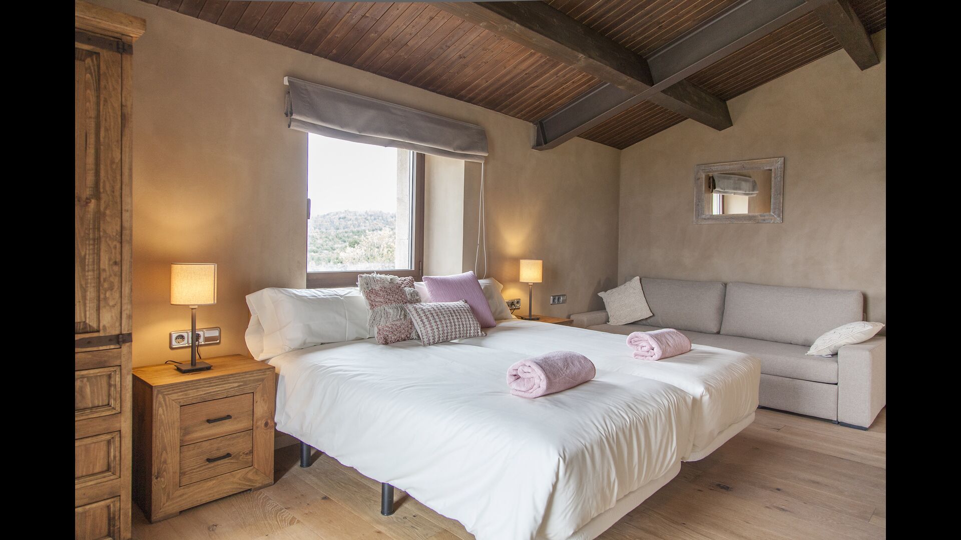 A la primera planta hi trobareu 6 grans habitacions dobles amb vistes a la natura, totes amb bany privat. A la segona planta trobem 2 habitacions dobles més, i 2 habitacions quàdruples (amb dos llits individuals i un llit de matrimoni, separades per una porta). Aquests també tenen totes les finestres exteriors