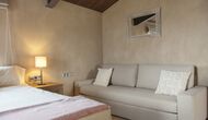 A la planta superior hi ha un acollidor saló, que es troba al costat de l'habitació triple, que té tres llits individuals. L'habitació és ideal com a habitació infantil i el petit saló serà excel·lent per utilitzar-lo com a racó acollidor per als nens al vespre.