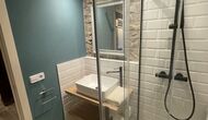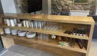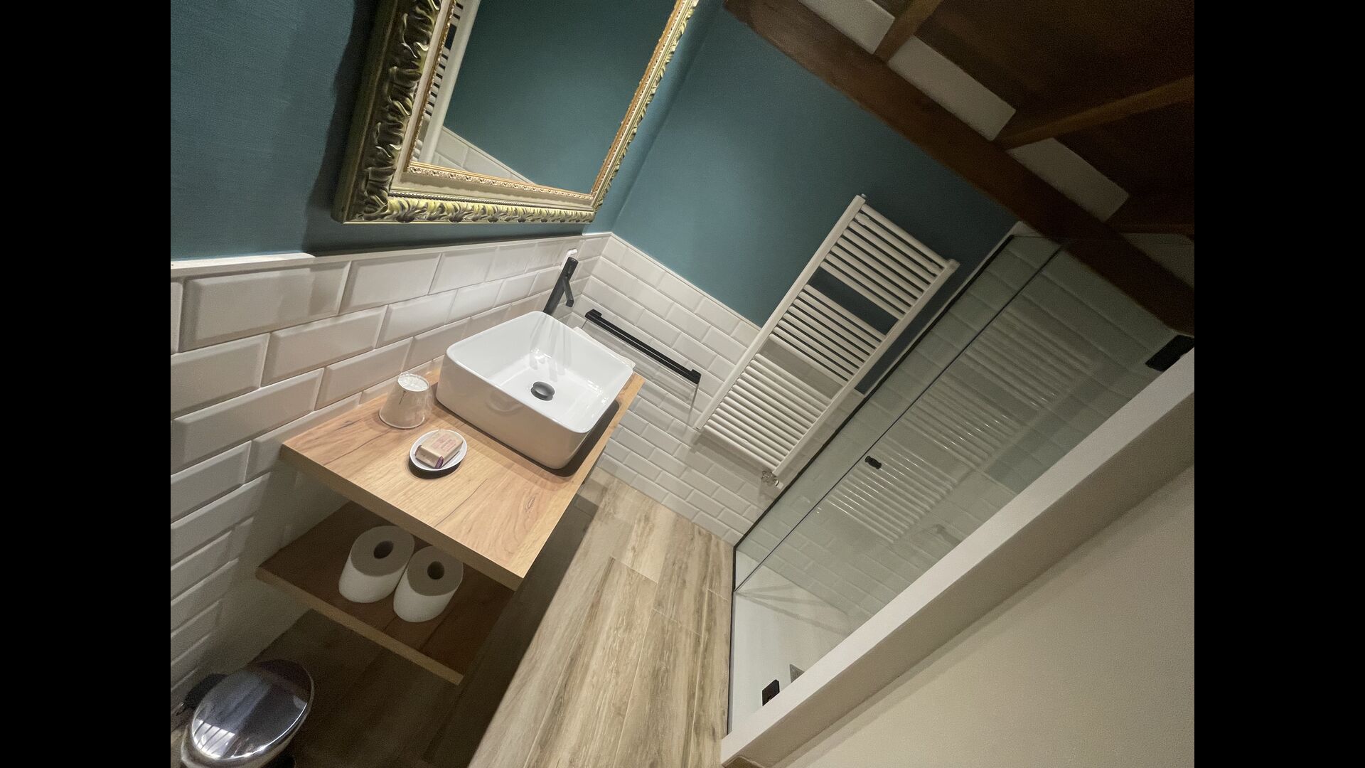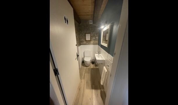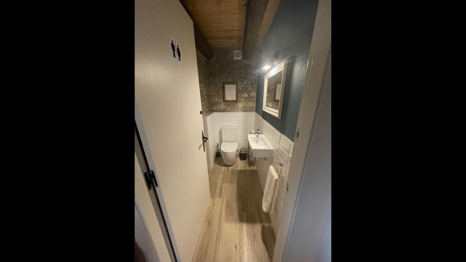 A la planta baixa, hi trobareu una sala d'estar amb untelevisor intel·ligent, una llar de foc (llenya inclosa), una taula gran per a un màxim de 14 persones, un sofà llit, butaques múltiples i 4 llits individuals – adossat a una cuina equipada amb coberteria i estris de cuina complets, sabó i fregalls, dues neveres,congelador, rentadora, microones, cuina/forn elèctric. , una cafetera Nespresso, torradora, batedora, espremedora, rentaplats, així com una cuina elèctrica de vitroceràmica i 3 fogons. A més, la planta baixa també té el seu propi bany privat amb dutxa.