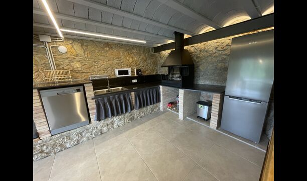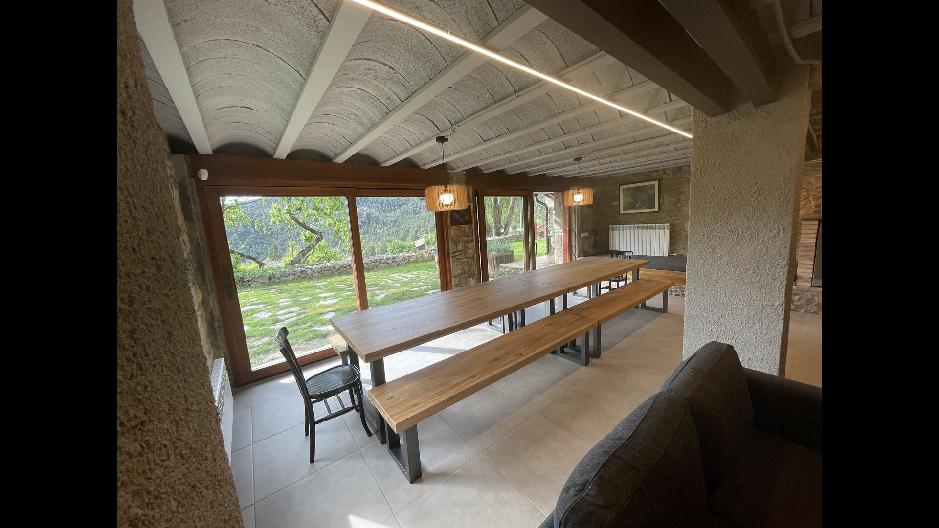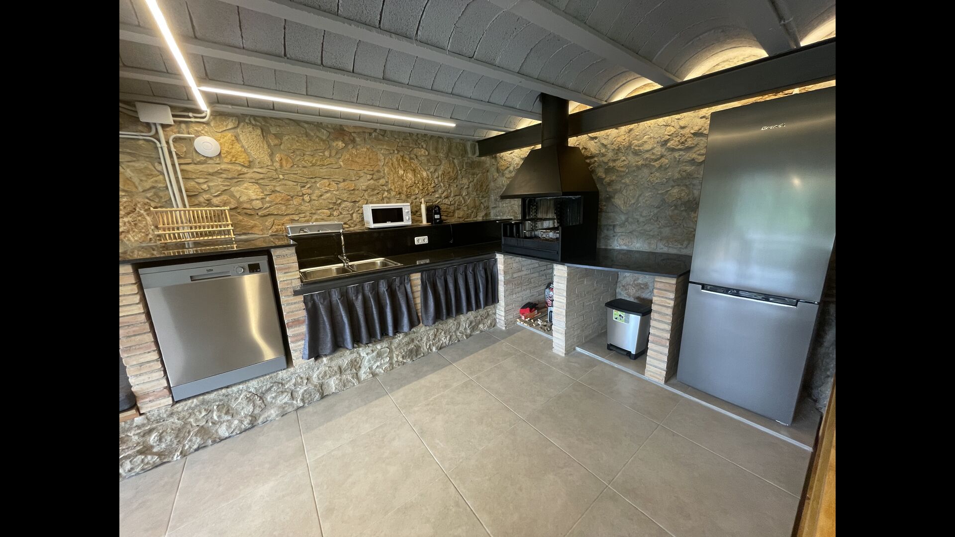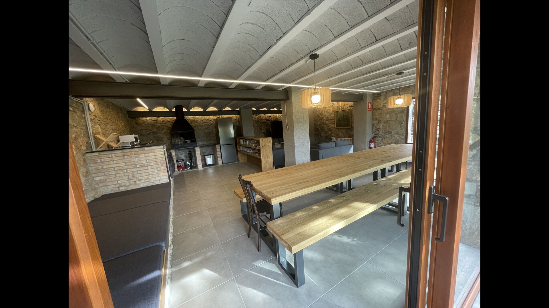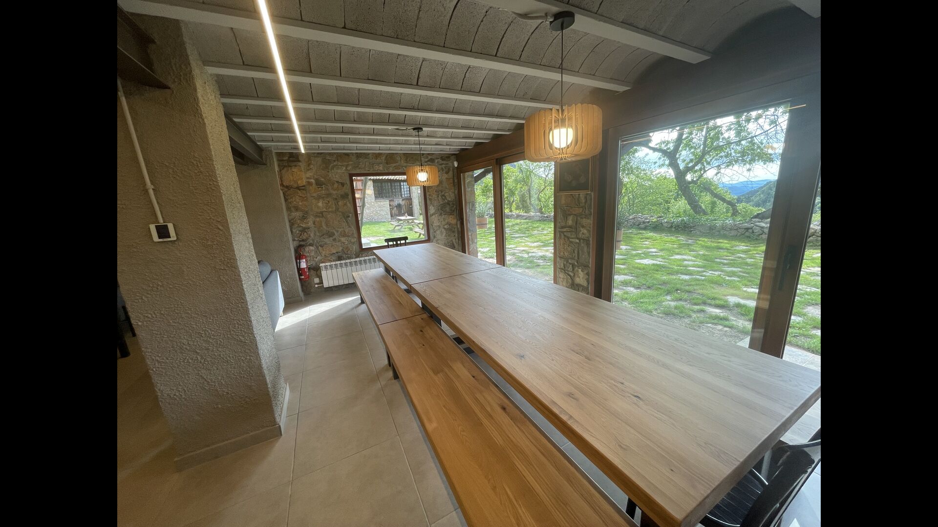 La casa també té una meravellosa zona de porxo/pati, completa amb la seva taula gran (fins a 14 persones), la seva nevera/congelador i una barbacoa per a la brasa. Perfecte per sopar mentre el sol es pon sobre el paisatge serè i muntanyós que es desplega davant dels teus ulls, vetllades de jocs de taula i llargues xerrades amb amics o familiars fins a altes hores de la nit amb una bona ampolla de vi català.