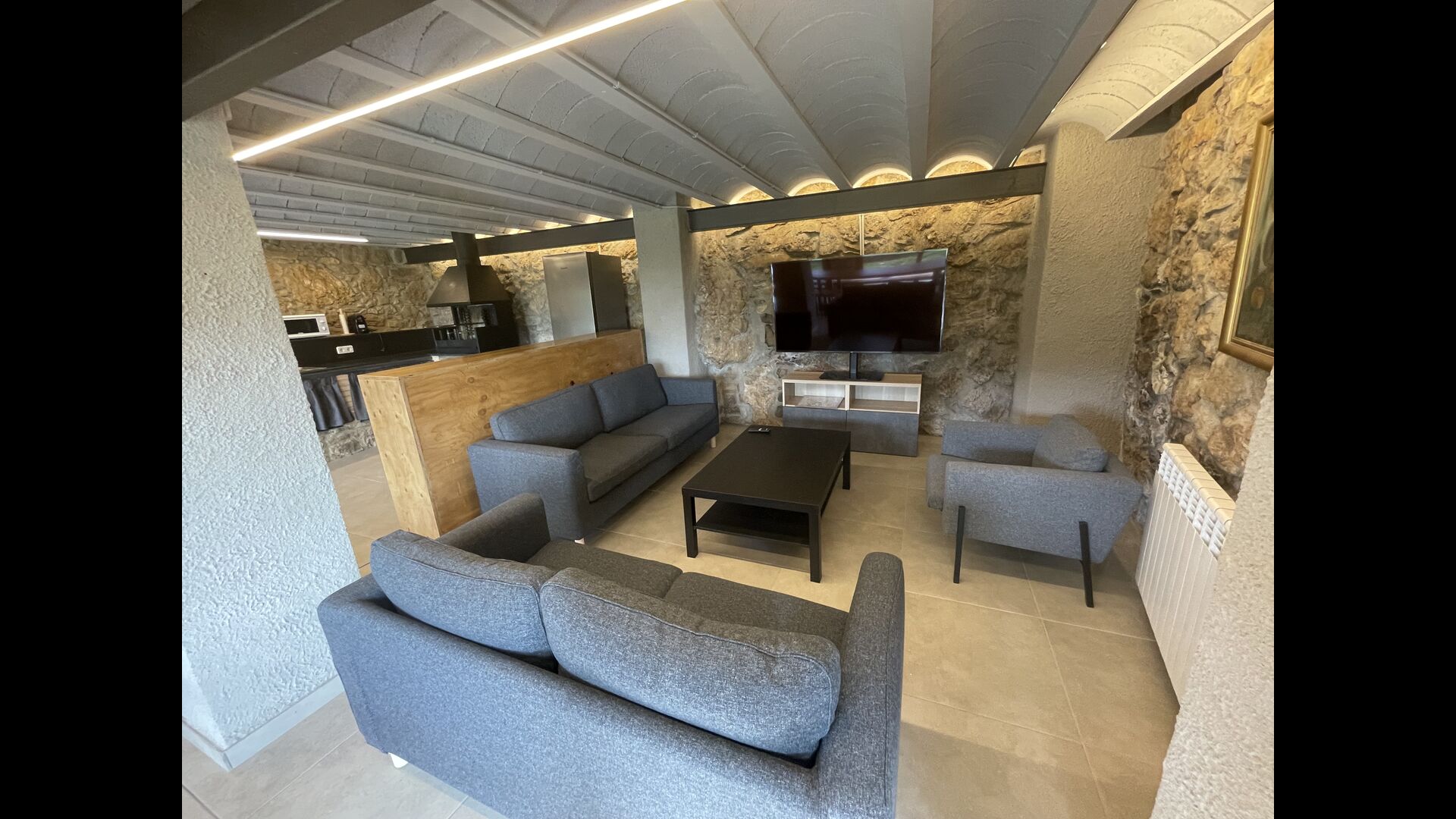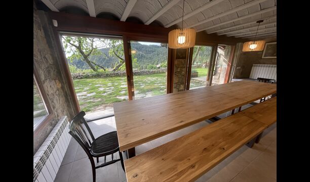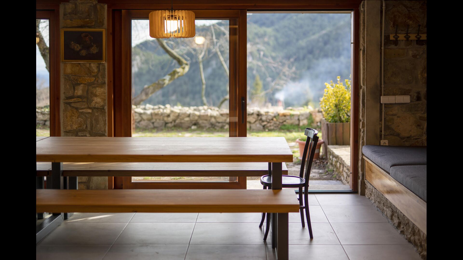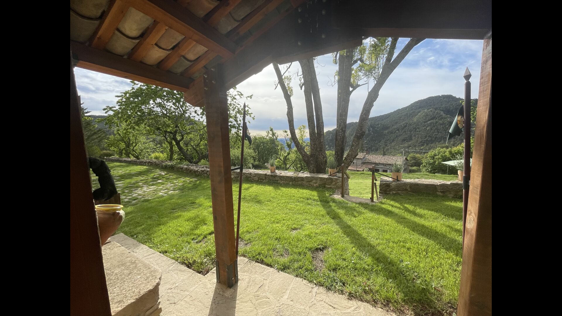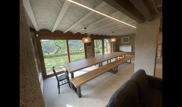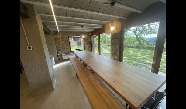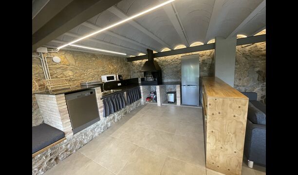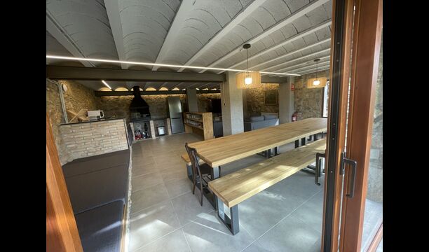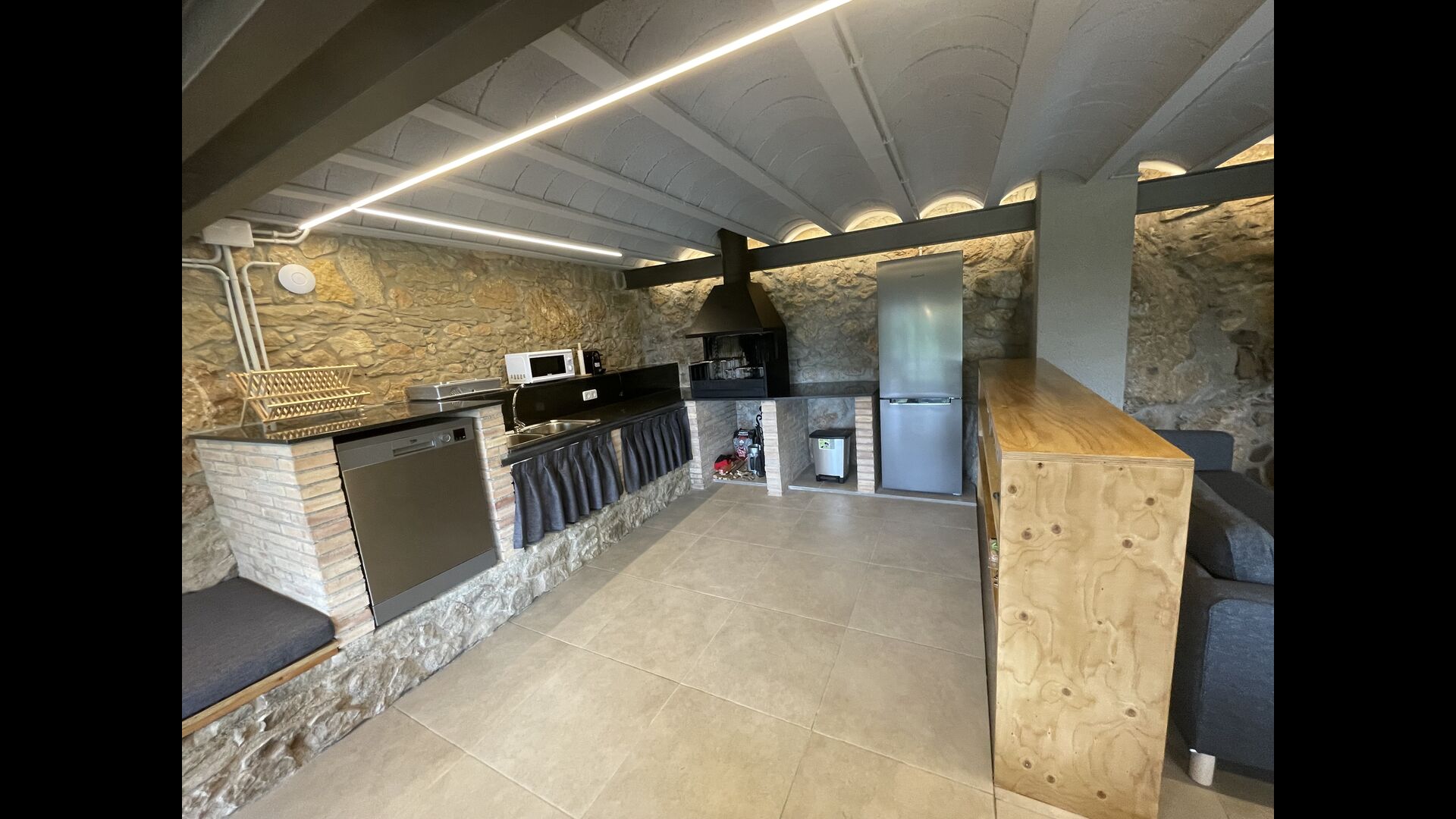 La casa també té una meravellosa zona de porxo/pati, completa amb la seva taula gran (fins a 14 persones), la seva nevera/congelador i una barbacoa per a la brasa. Perfecte per sopar mentre el sol es pon sobre el paisatge serè i muntanyós que es desplega davant dels teus ulls, vetllades de jocs de taula i llargues xerrades amb amics o familiars fins a altes hores de la nit amb una bona ampolla de vi català.