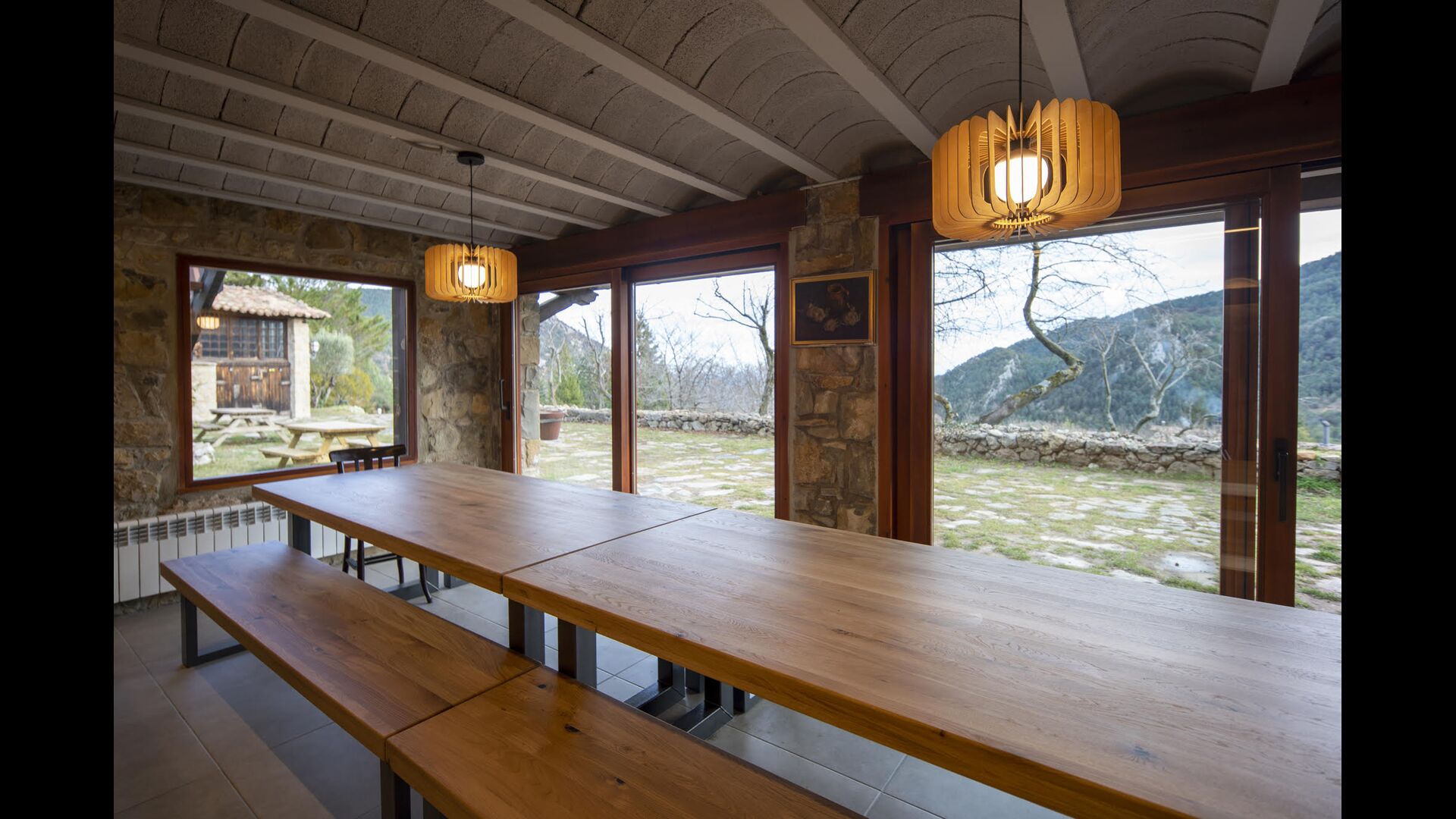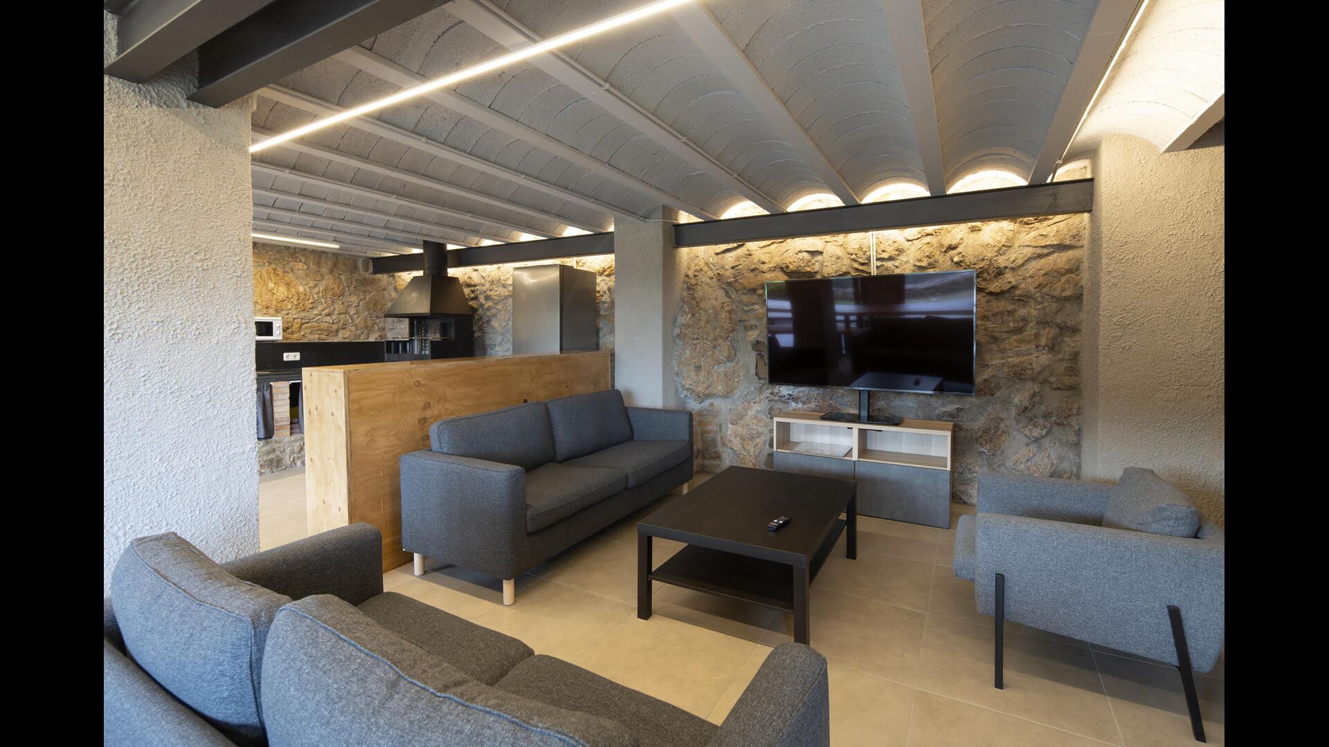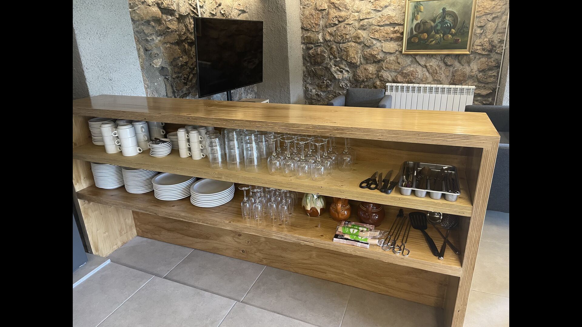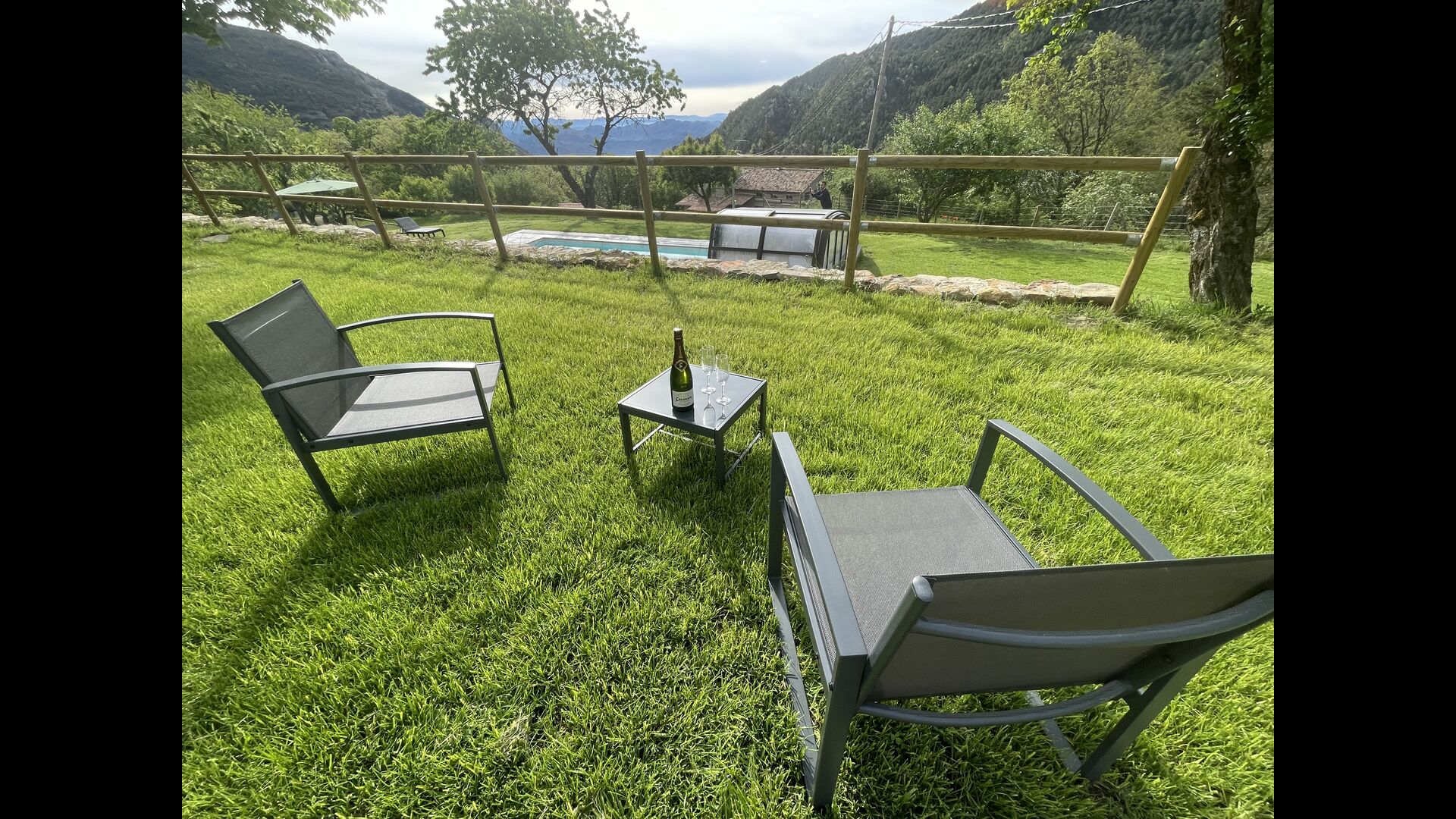 La casa també té una meravellosa zona de porxo/pati, completa amb la seva taula gran (fins a 14 persones), la seva nevera/congelador i una barbacoa per a la brasa. Perfecte per sopar mentre el sol es pon sobre el paisatge serè i muntanyós que es desplega davant dels teus ulls, vetllades de jocs de taula i llargues xerrades amb amics o familiars fins a altes hores de la nit amb una bona ampolla de vi català.