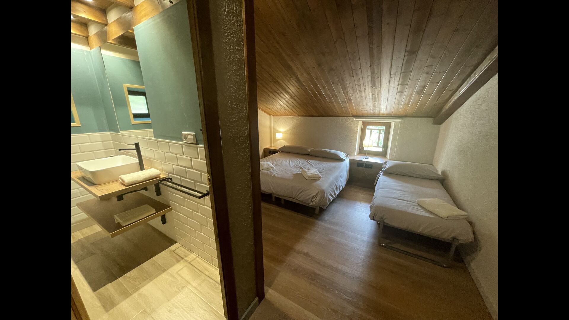A laprimera planta hi ha capacitat d'allotjament per a fins a 11 persones – i excel·lents vistes panoràmiques. Totes les habitacions tenen el seu propi bany privat equipat amb dutxa i tovalloles. La planta té 2 habitacions dobles, 1 habitació doble amb un sofà llit per a 2 persones i 1 habitació doble amb unn llit supletori per a una persona.