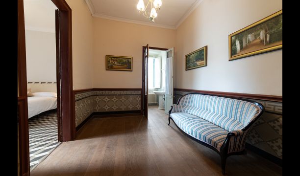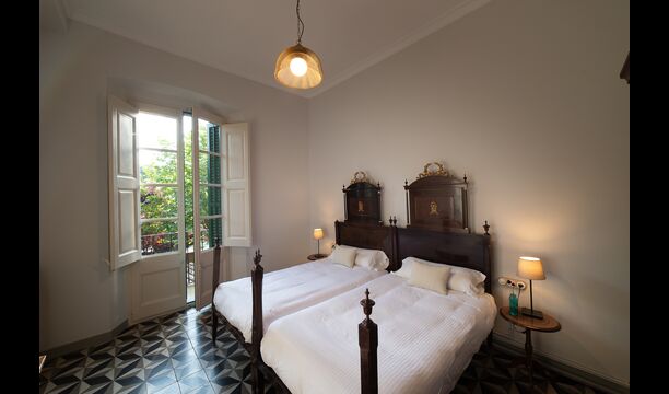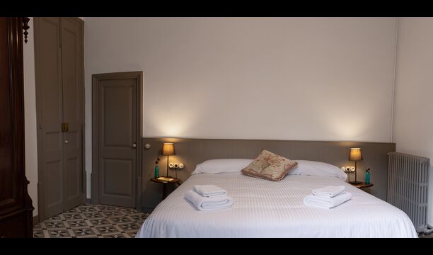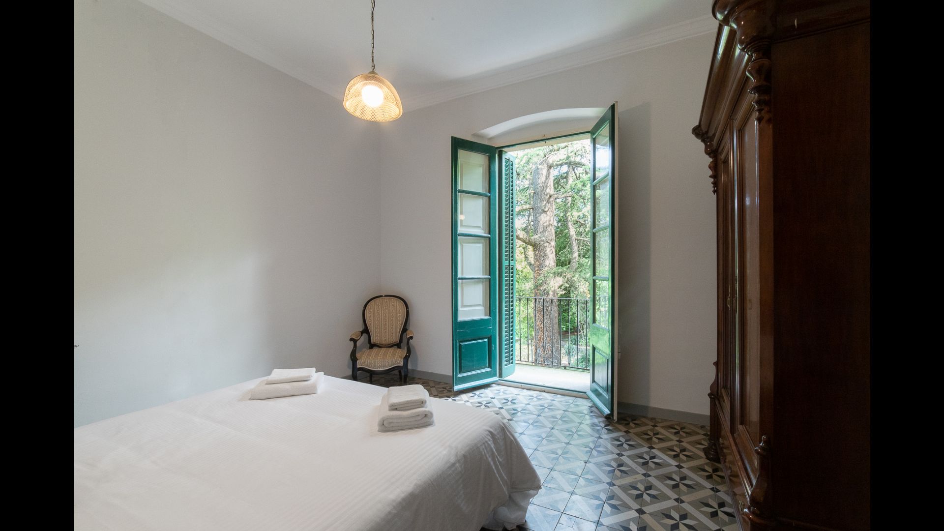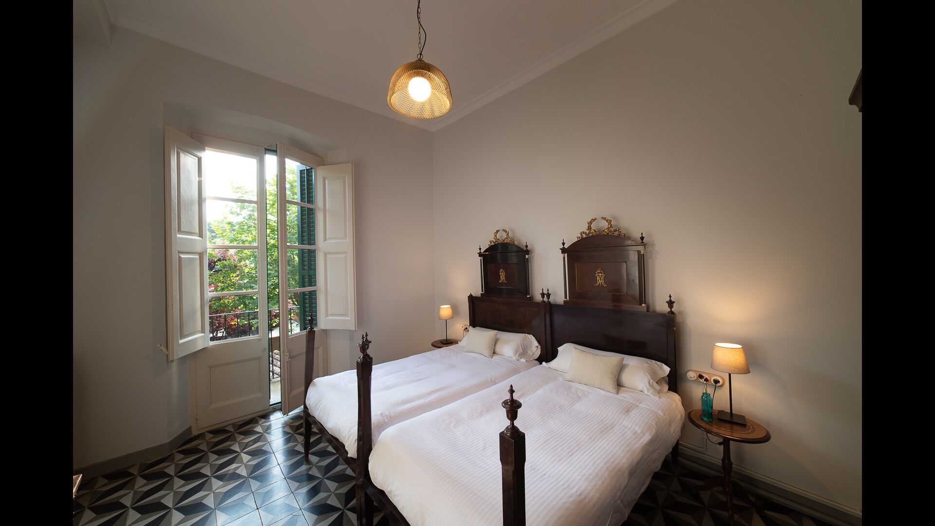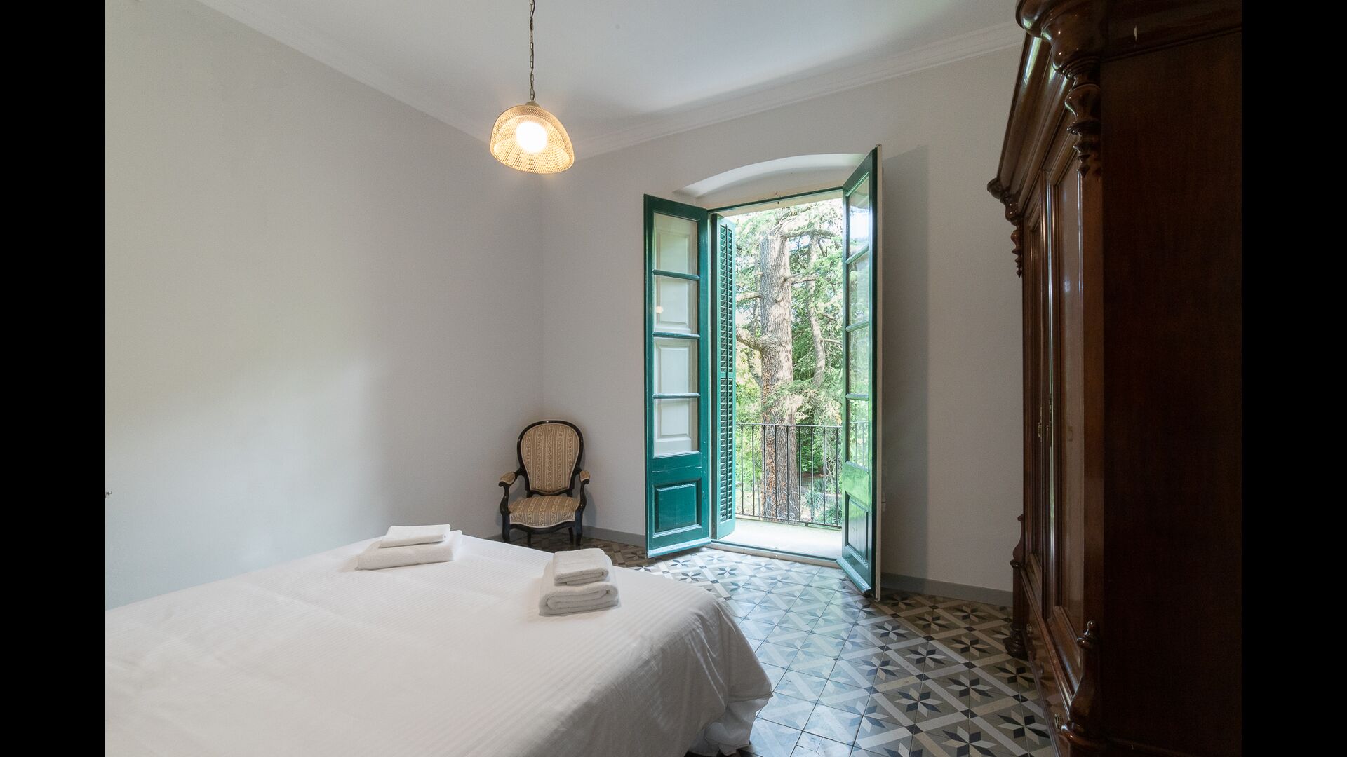 Hay 11 dormitorios repartidos en las dos plantas, que son el primer y segundo piso, ya que la planta baja no se utiliza. Todas ellas son amplias habitaciones dobles. Todas las habitaciones son similares a las suites más pequeñas debido a su gran tamaño. La decoración es elegante y clásica, y la mayoría de las habitaciones tienen balcones. Dos de las habitaciones son habitaciones para niños. Siete de los dormitorios tienen baños en suite, mientras que el resto comparten dos amplios baños.