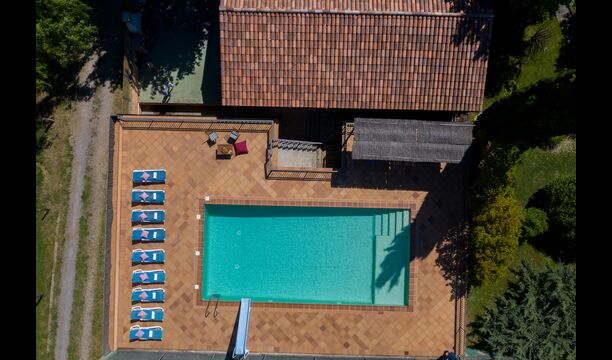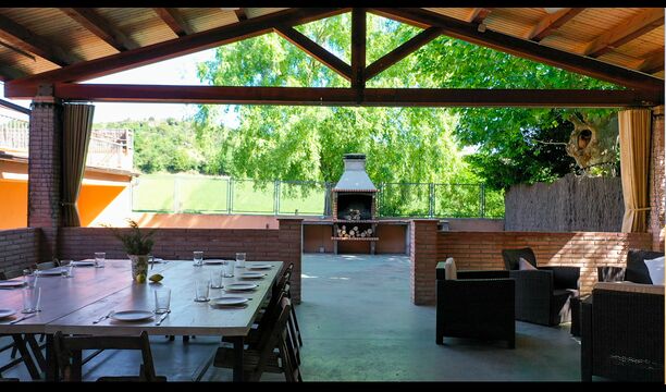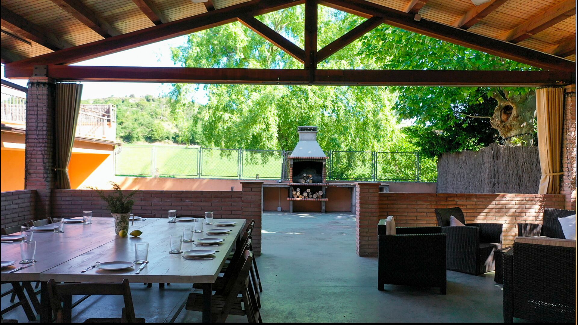 Masia Escritor tiene varias instalaciones al aire libre. En primer lugar, la piscina, un éxito seguro tanto para niños como para adultos. Con un tamaño de 12 metros x 6 metros, hay mucho espacio para refrescarse durante las horas calurosas del día, mientras los niños juegan en el agua. Justo al lado de la piscina hay una terraza cubierta con una mesa de comedor y una cómoda zona de estar. Desde aquí puede vigilar a los niños que juegan en la piscina o simplemente relajarse.