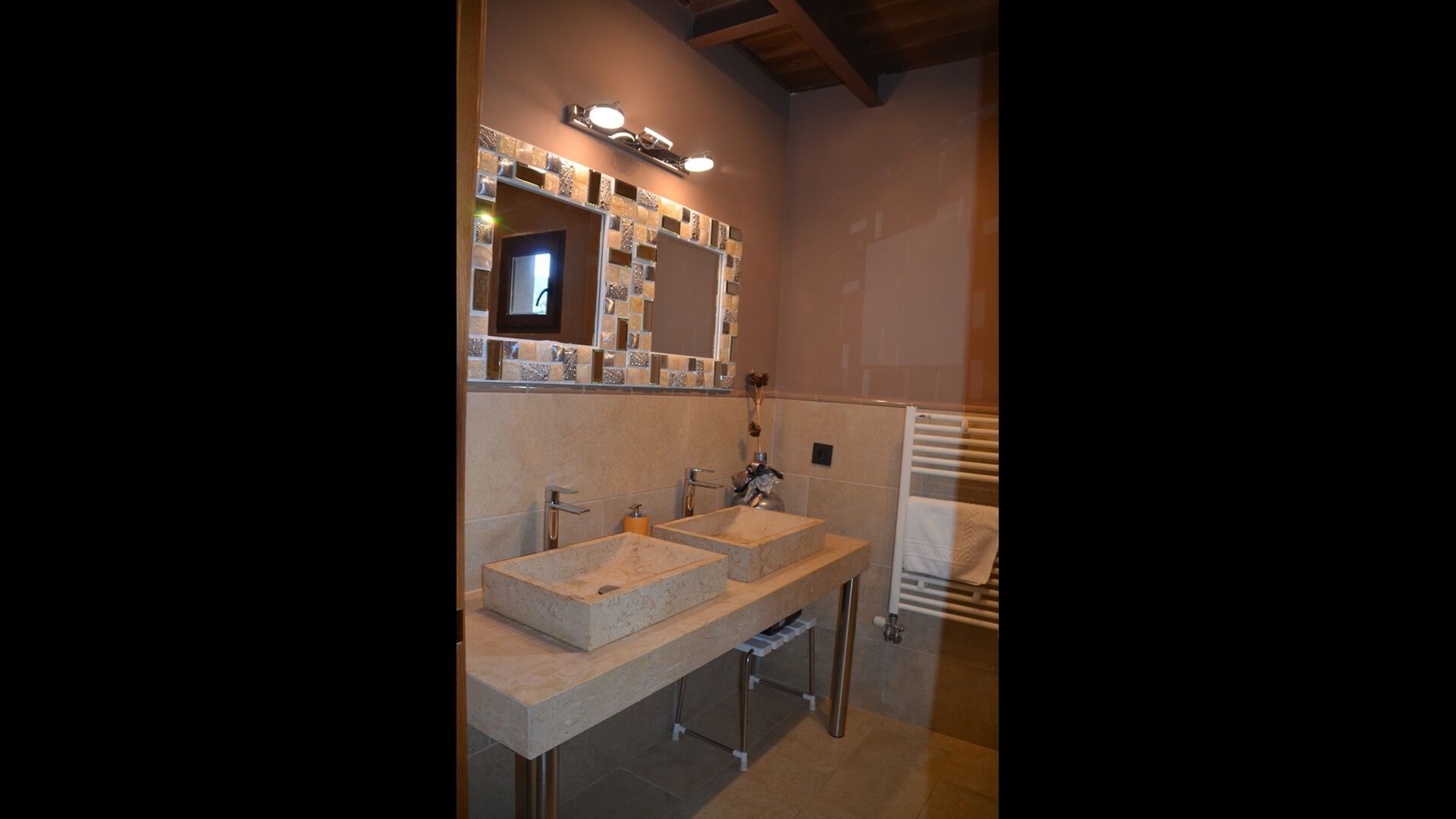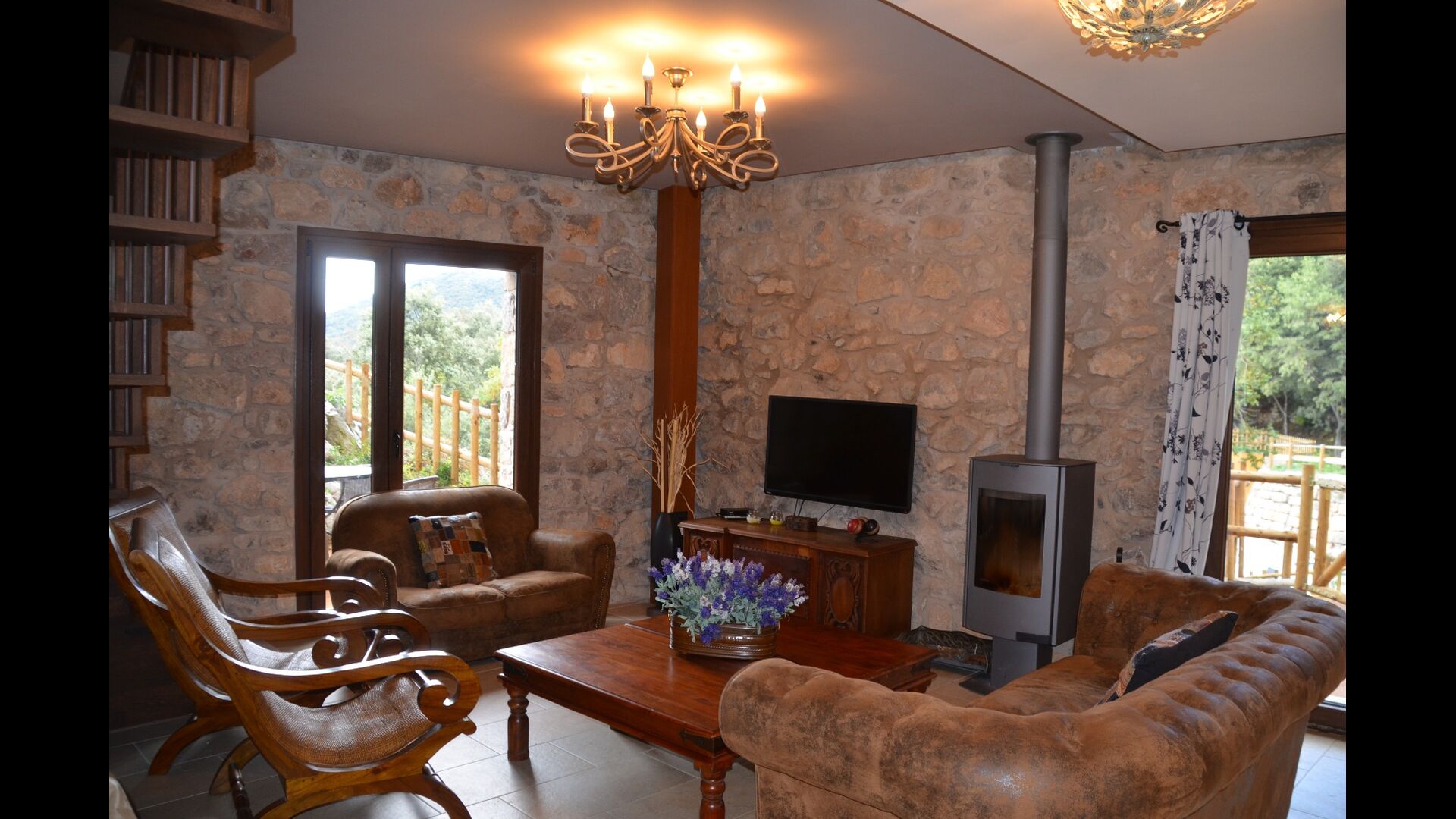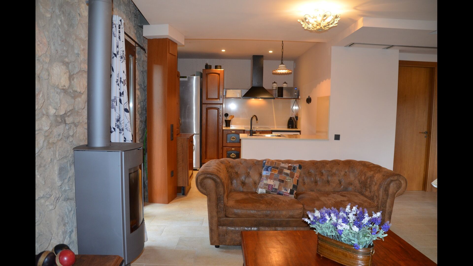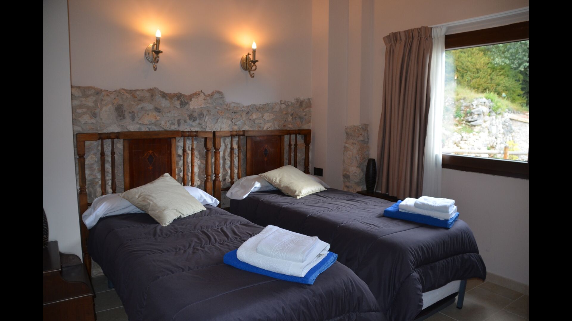 The holiday home Era is one of two apartments located in the large, antique main building. Both apartments cover two floors. The holiday apartment Era can host 4 (+2) guests. The property is high-quality and is built with traditional Catalan stonewalls, which gives a very beautiful, authentic look. The holiday apartment has two bedrooms: one of the bedrooms is equipped with a double bed, the other with two twin beds. Both bedrooms have an adjoining modern bathroom.