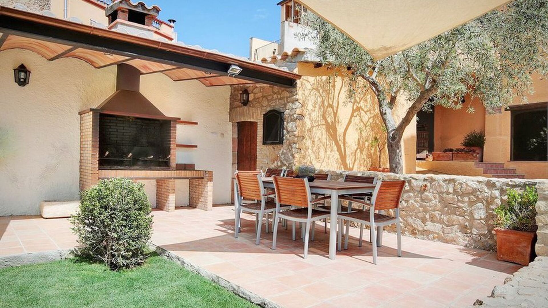 The common outdoor area consists of the swimming pool with Roman steps, sun beds, a play ground for the children, a BBQ and a outdoor dining area, where you can enjoy your dinner or a glass of local cold cava.