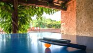 Una és lapiscina compartida, amb una piscina rodona separada per als nens. Les dues piscines es troben a la mateixa zona, que està tancada. També hi ha diverses ganques de sol per descansar i relaxar-s'hi. A l'altre costat de la tanca, hi ha un gronxador per als nens.