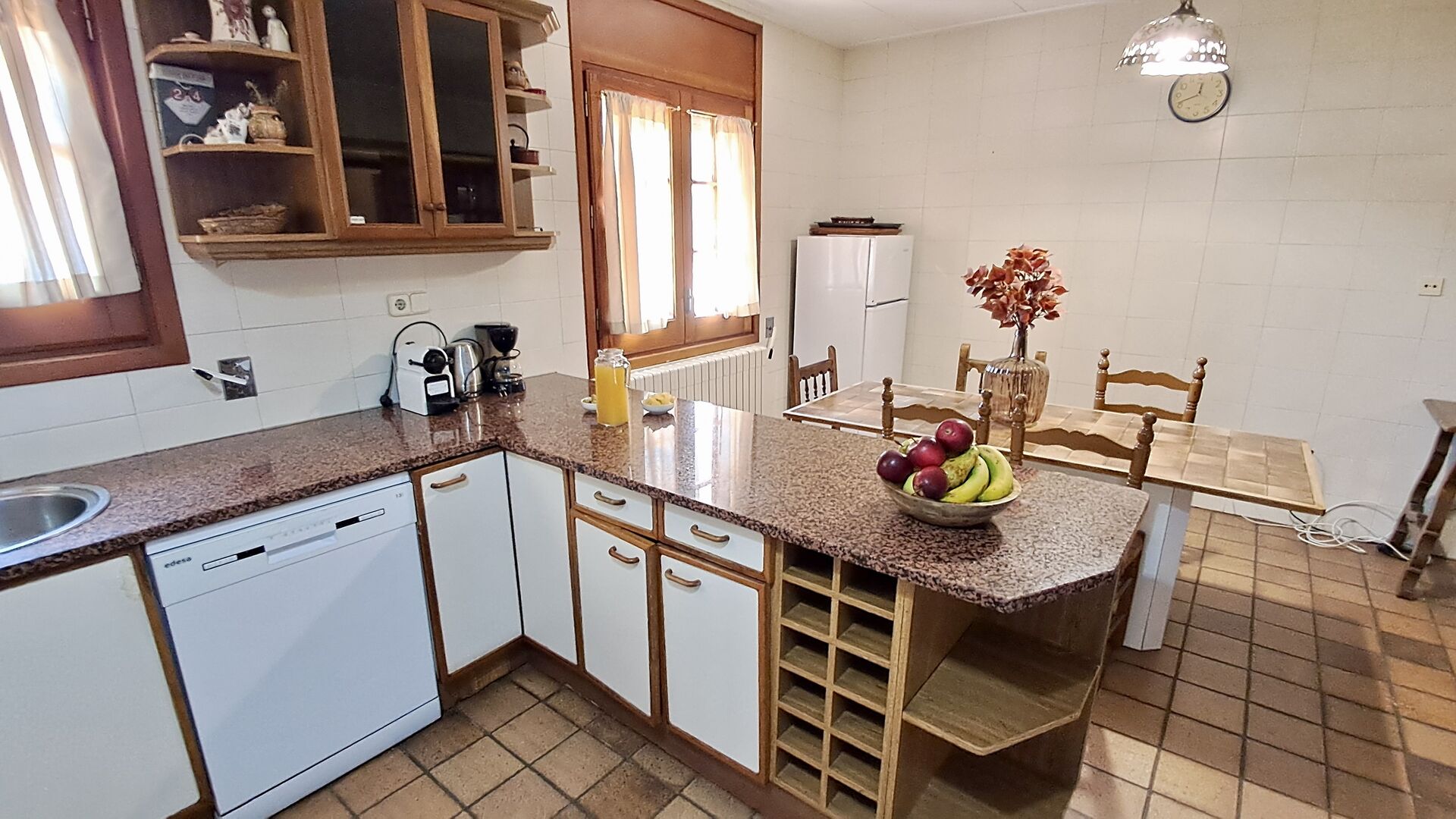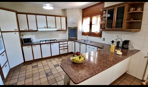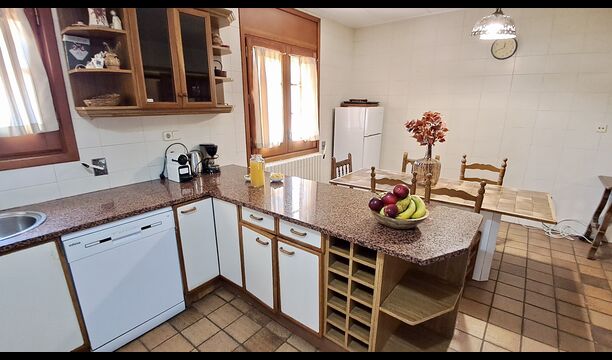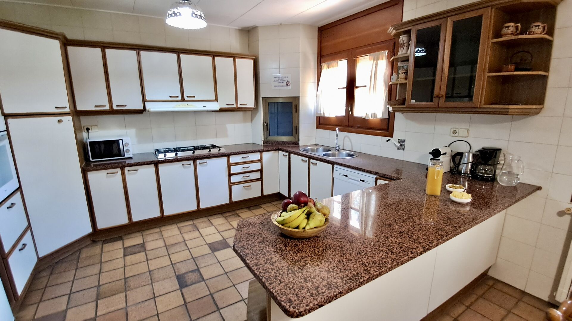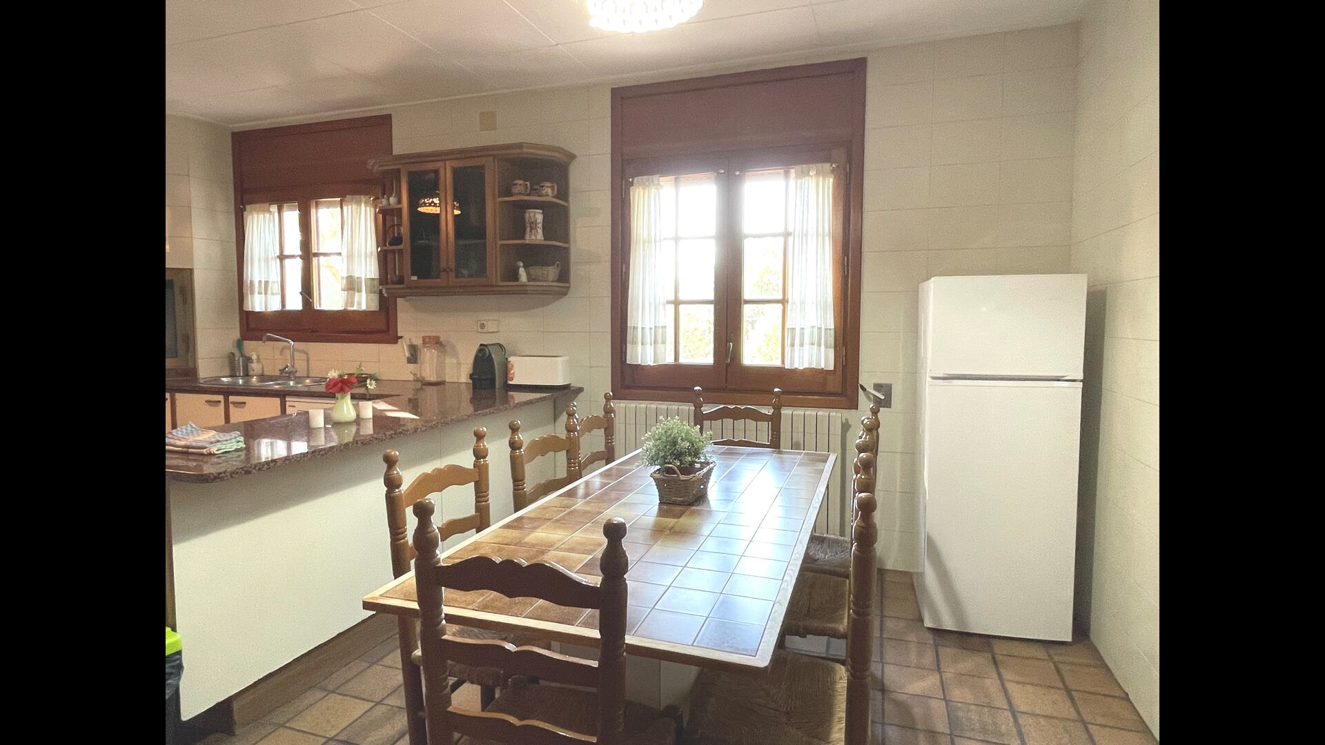La cuina està just al costat, de manera que des de la cuina podreu accedir fàcilment a la zona de menjador, a la terrassa exterior amb vista sobre el camp de golf i a la zona de la piscina. La cuina està molt ben equipada amb 3 neveres, fogons, forn, rentavaixelles, Nespresso, microones, torradora, etc. A més, hi ha un menjador més petit, ideal per esmorzar.