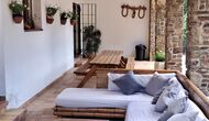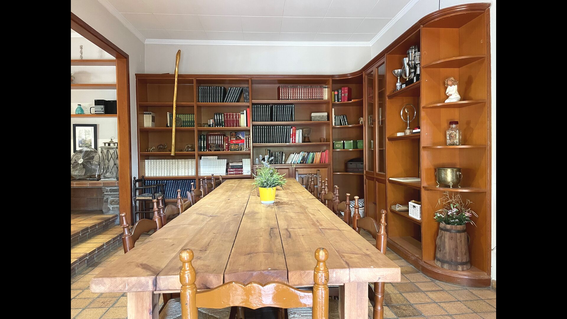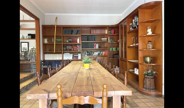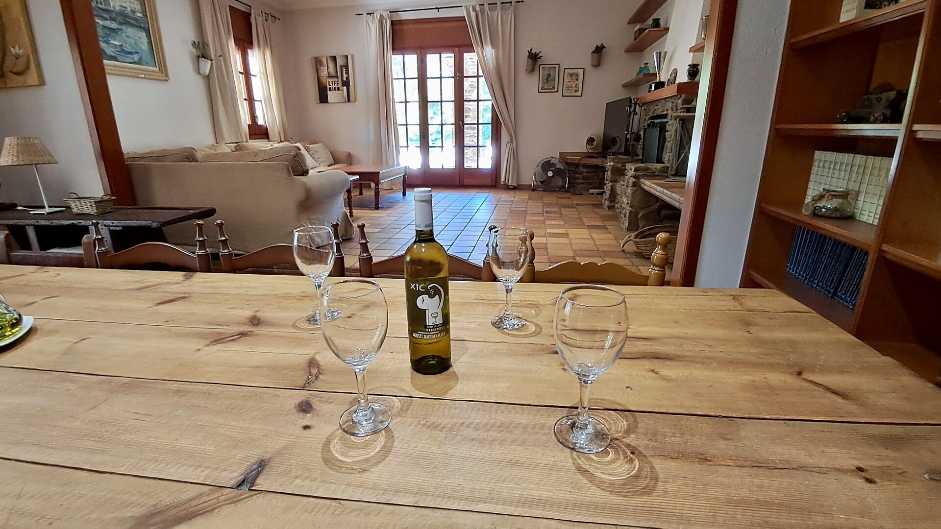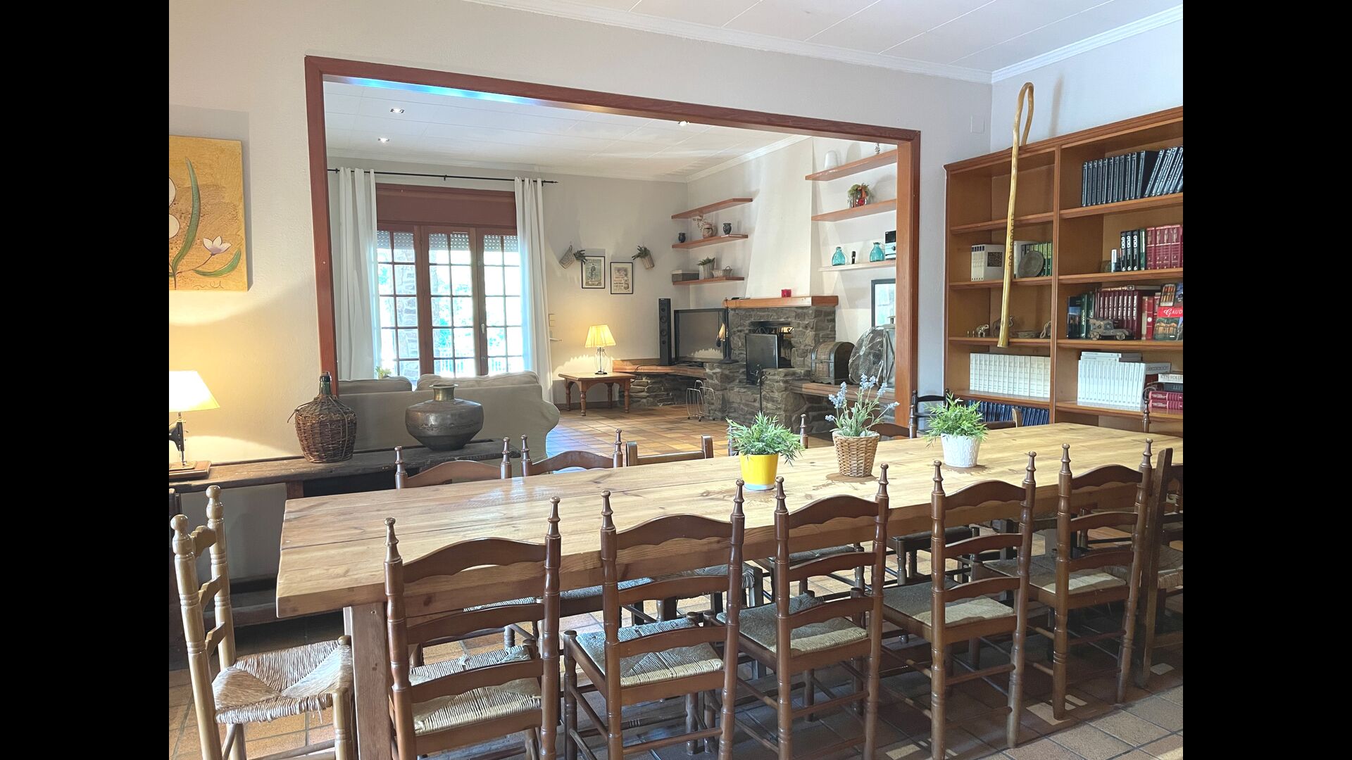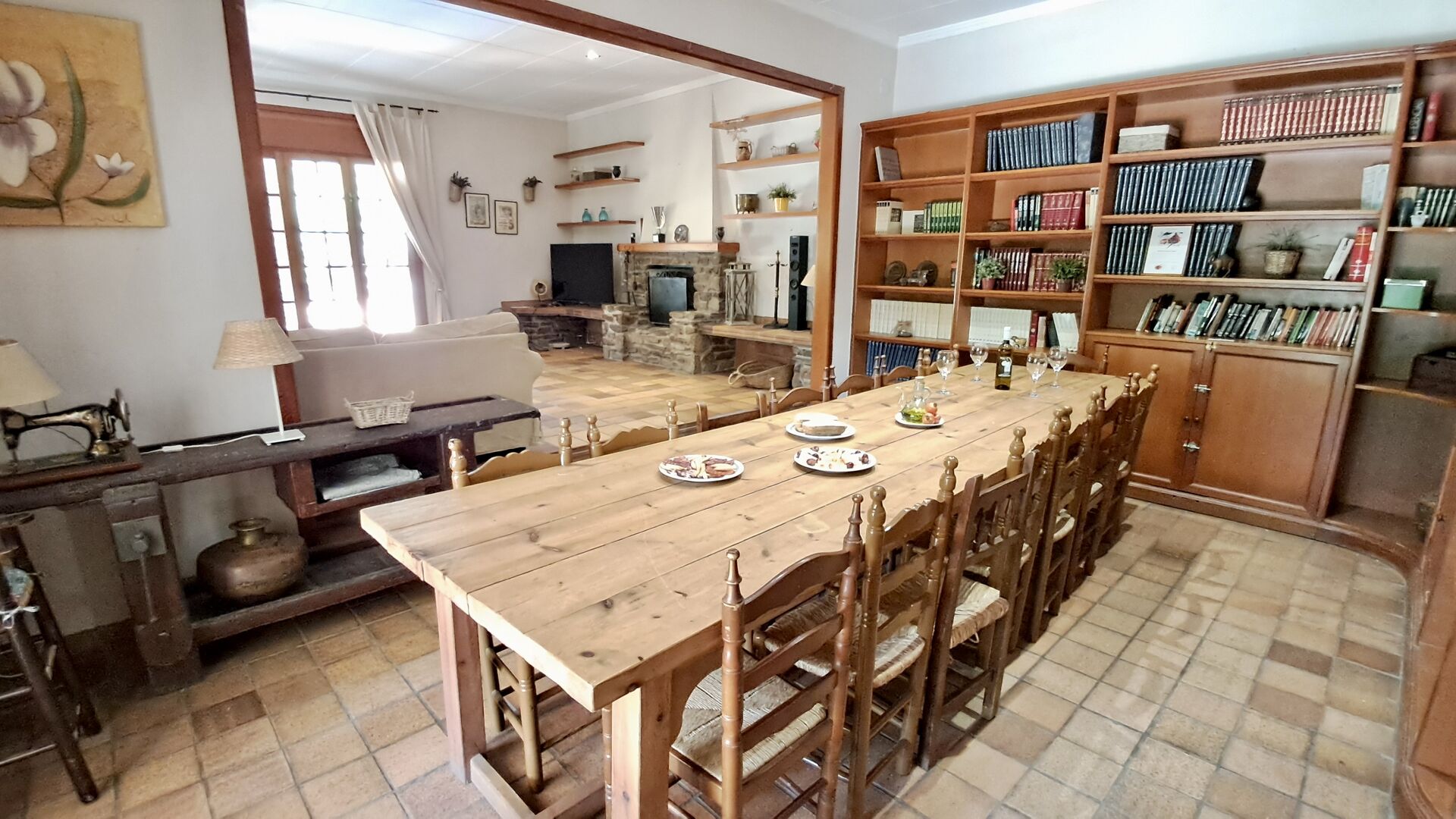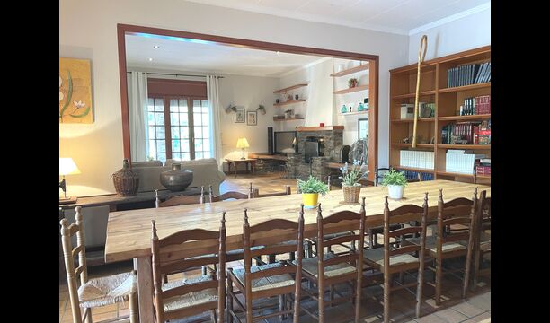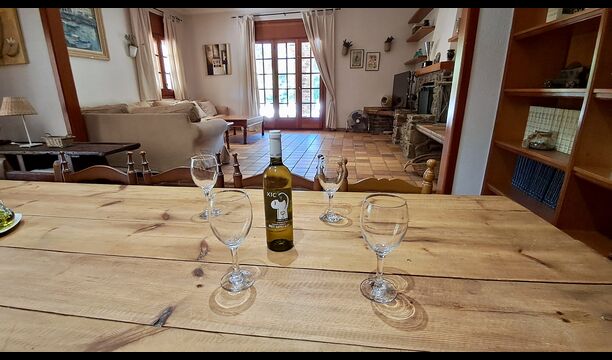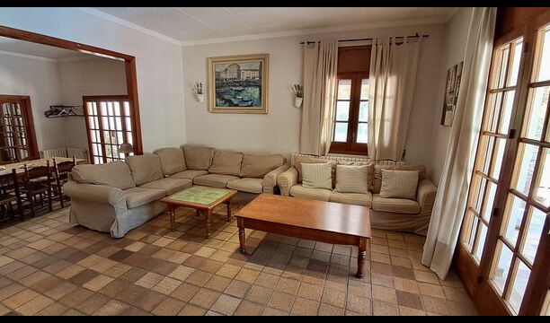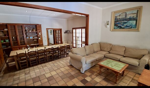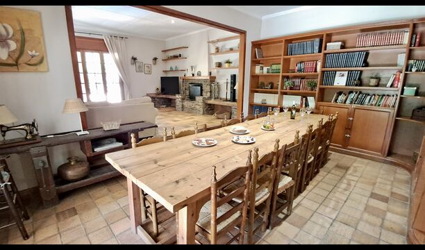 La casa té una sala comuna molt agradable i molt gran amb una taula de menjador llarga en un extrem i després un gran sofà racó. Les grans portes dobles donen vistes i accés a la zona de la piscina.