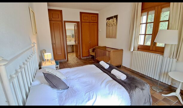 L'altre passadís es troba al llarg de la casa i les habitacions tenen vistes al camp de golf. Aquí trobareu una habitació doble amb llit de matrimoni, una habitació doble amb dos llits individuals (disposada com a llit de matrimoni), després una habitació amb un llit de matrimoni i una llitera(ideal per a una família). Aquestes habitacions comparteixen bany amb dutxa. Al final, hi ha una habitació de mida suite amb llit de matrimoni, bany privat i accés directe a la terrassa. Hi ha un llit per a nadons a l'habitació.