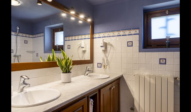 On the ground floor you will find the common areas: there is a fully equipped kitchen with microwave, oven, dishwasher and washing machine and much more, a dining room where you can enjoy your homemade meals and a cozy sitting area with TV and fireplace. There is also on this floor a large double room with a modern and spacious bathroom.