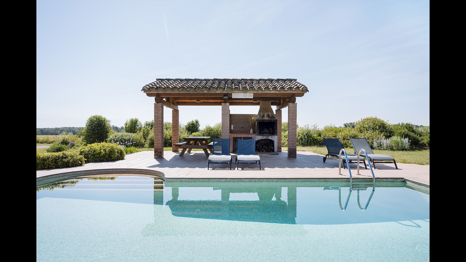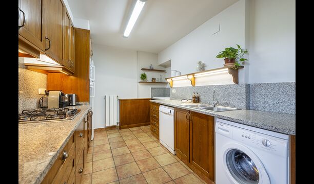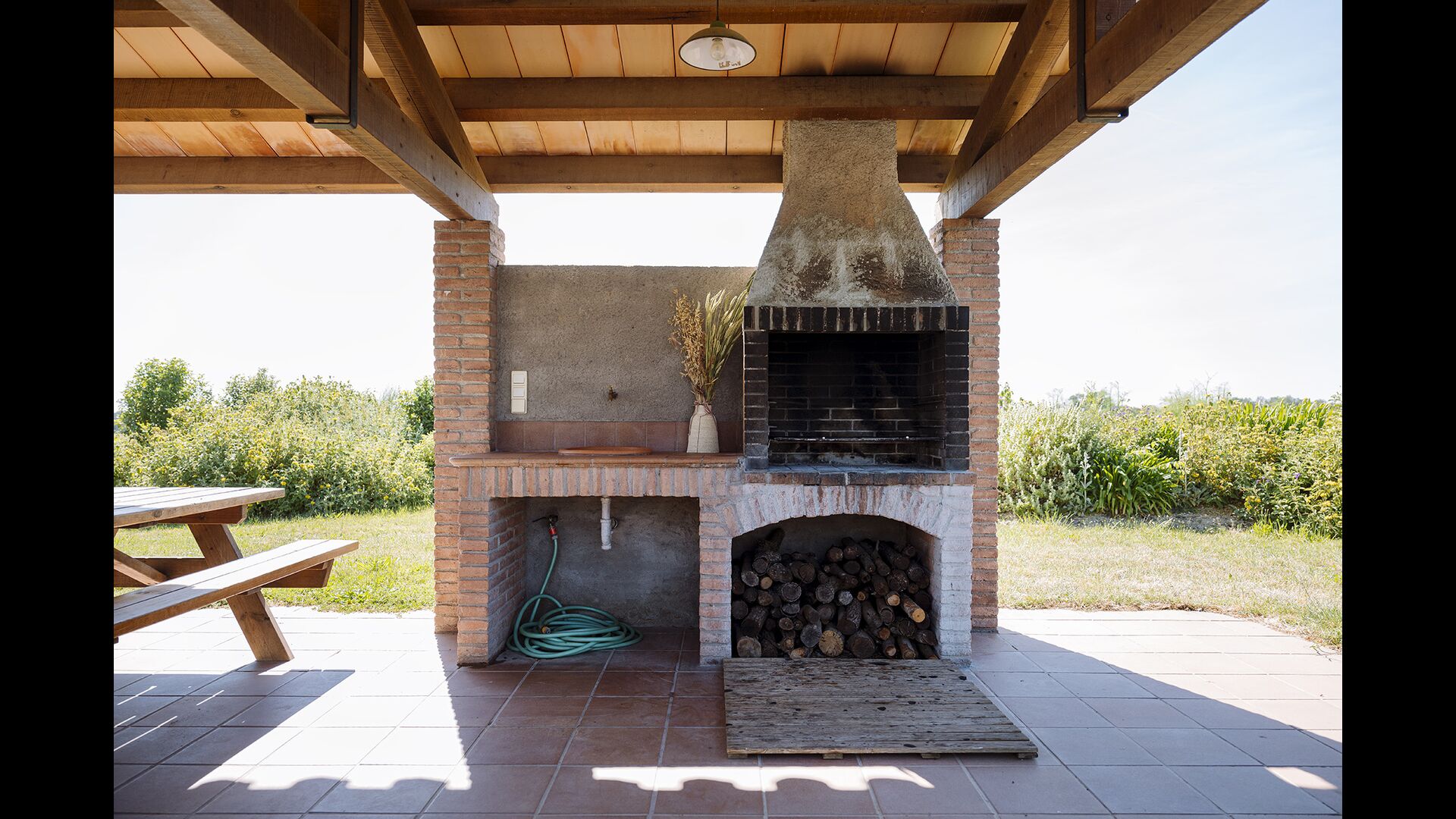 From the kitchen there is a direct exit to the covered terrace - a place that probably will be your natural meeting point and it is without a doubt a perfect place to enjoy the homemade dinner. Furthermore there are a BBQ and a view to the pool, so you can keep an eye on the children playing.