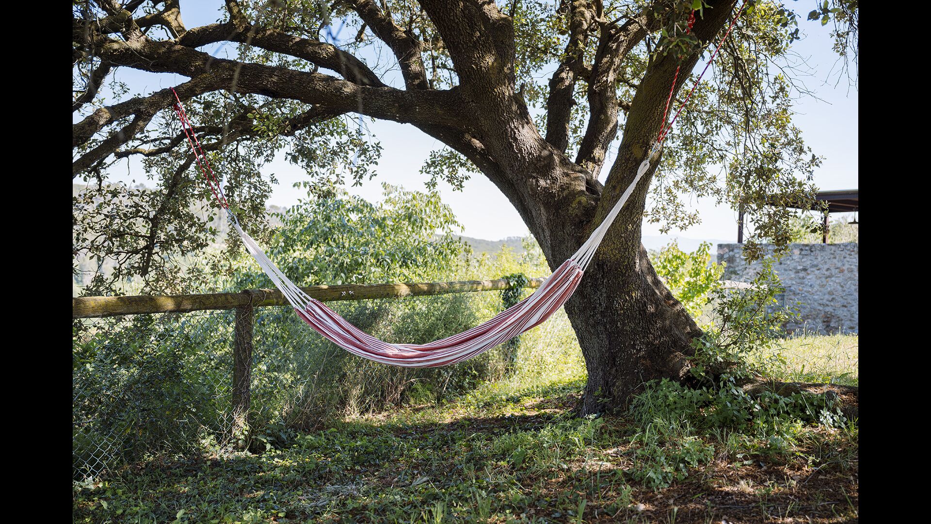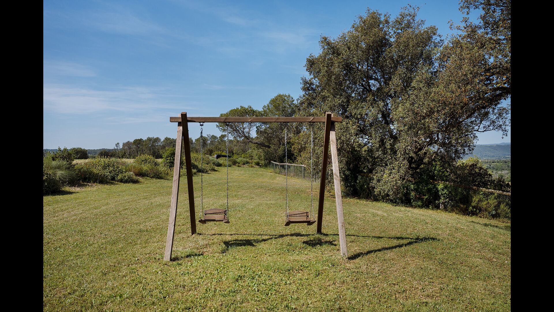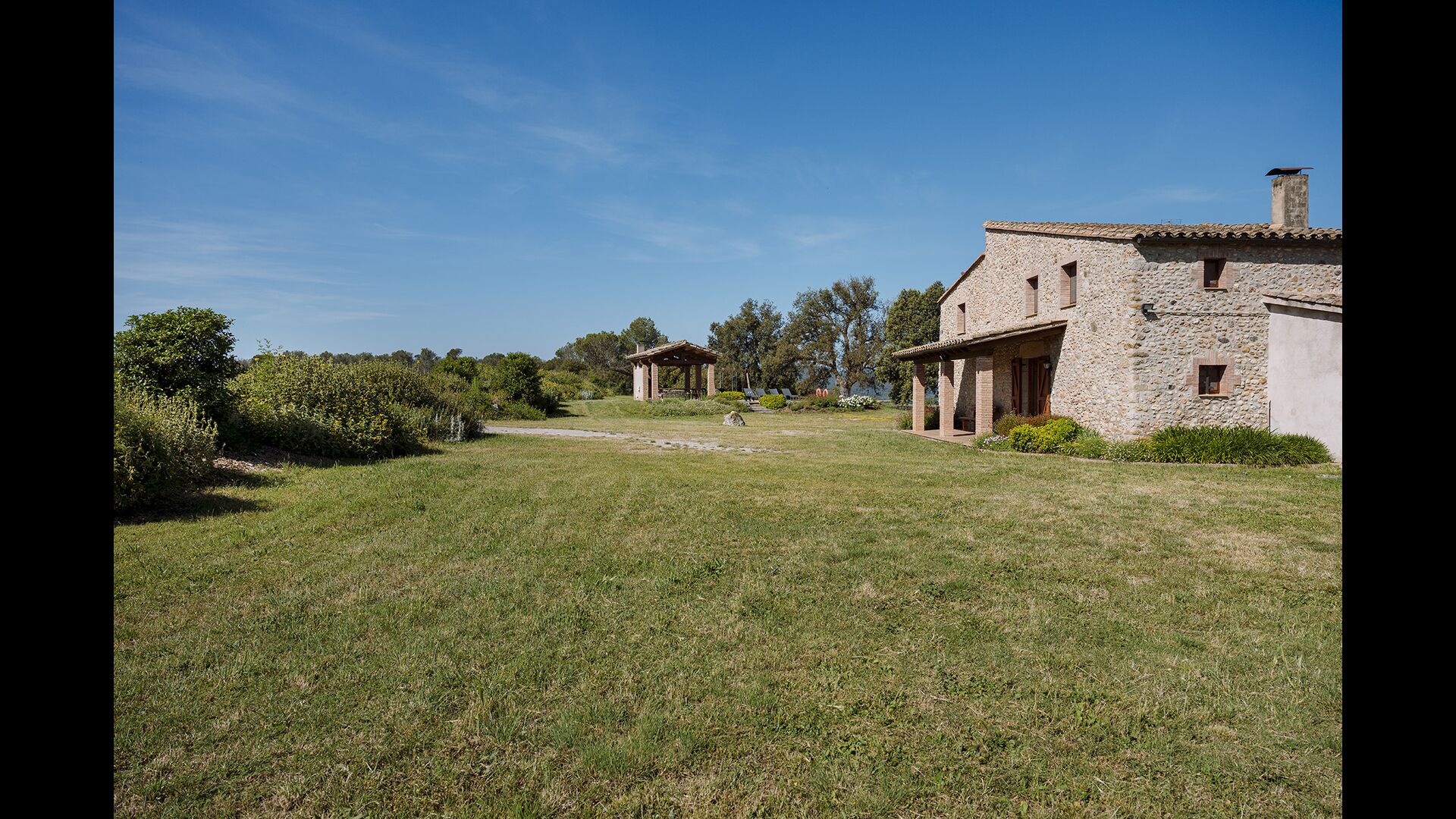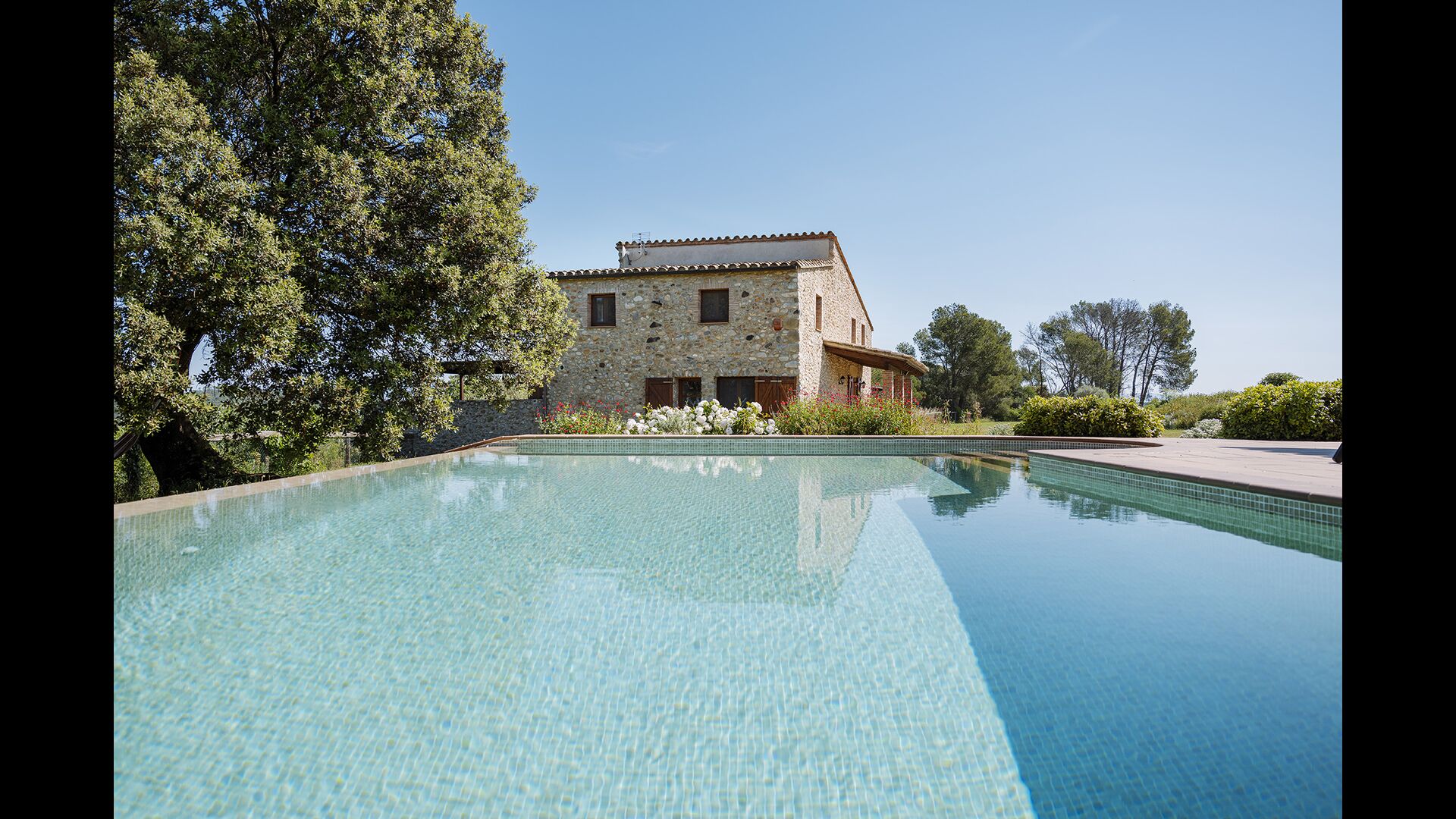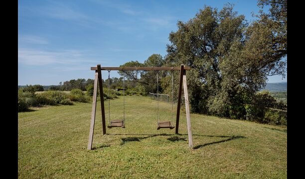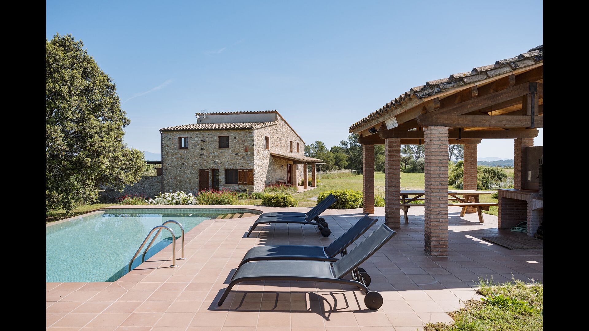The swimming pool, located toward the hillside, will surely be the children's favorite. It has a size of the entire 32 m2, and it's very unique: It has an overflow system that integrates it into the landscape. It is the ultimate relaxation place and also works as a good cooling element for the body. The pool is equipped with sun beds, where the Catalan heat can be enjoyed at full blast.