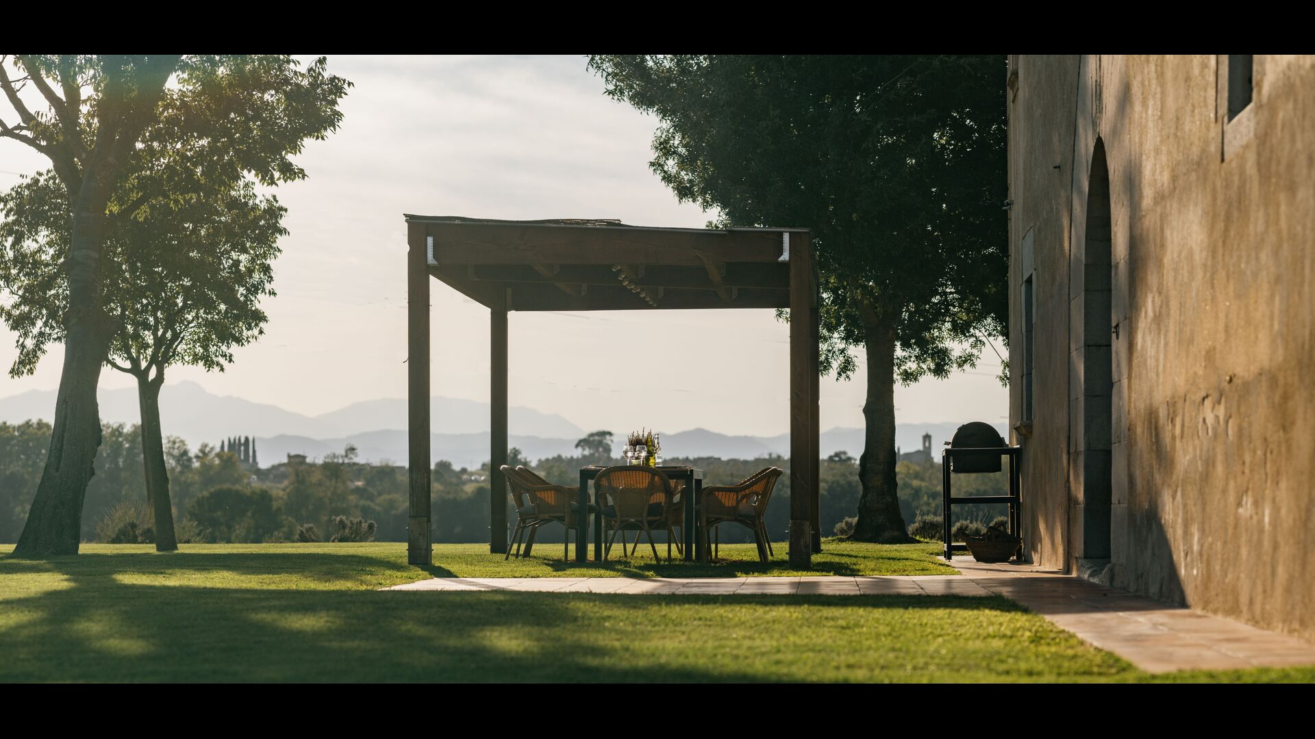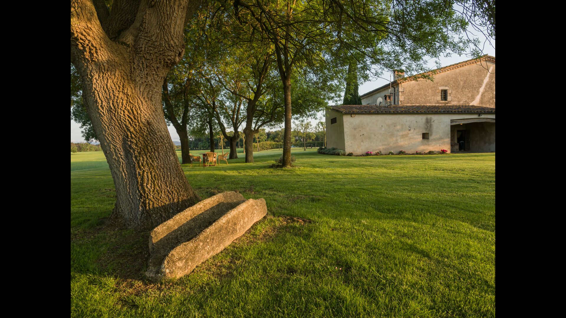 La casa tiene una ubicación maravillosa que combina tierras de cultivo con bosques de robles, encinas y pinos y arroyos y arroyos bordeados de vegetación. La granja en sí está rodeada por una gran zona verde con árboles y campos de cultivo. Tiene unas vistas excepcionales del Montseny, la llanura de La Selva y una buena proporción de los Pirineos catalanes y sus estribaciones.