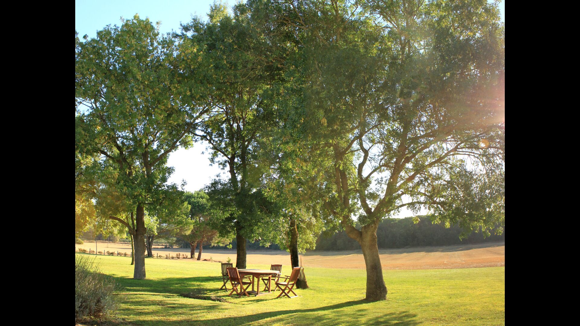 La casa de vacaciones tiene su propia gran piscina y un gran césped para jugar y tomar el sol. También hay una terraza al aire libre y muebles de exterior para que todos puedan disfrutar de su cena en grupo.