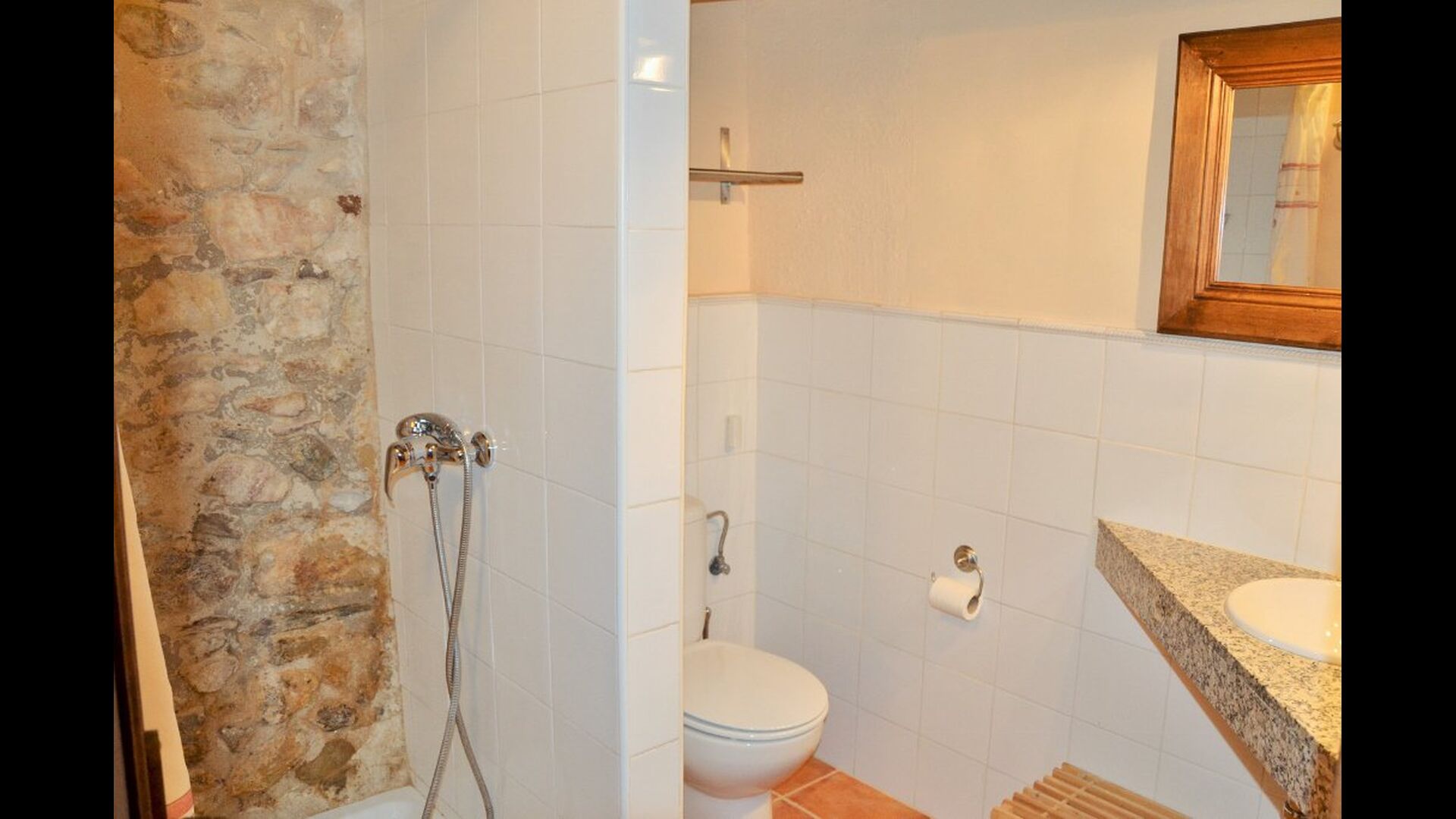 A la primera planta hi ha les dues habitacions confortables. Comparteixen un bany amb lavabo i dutxa, i hi ha un bany amb un vàter.