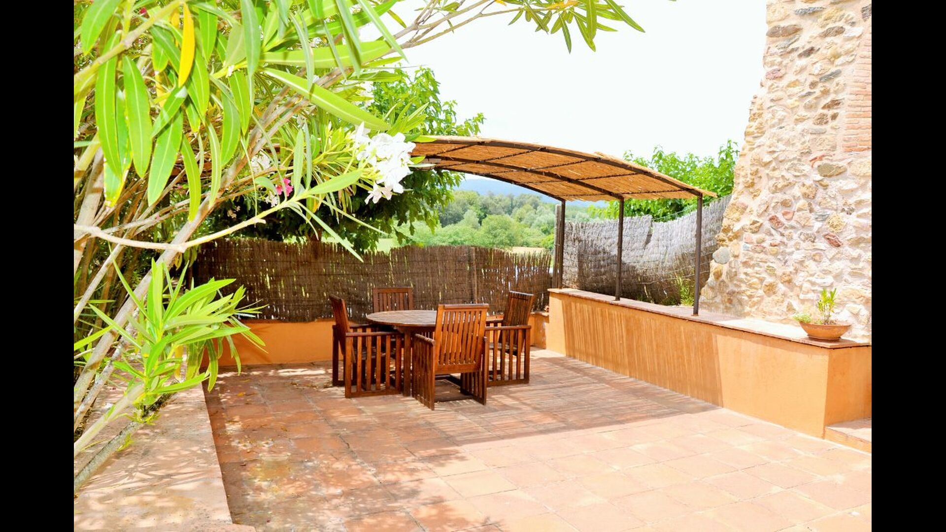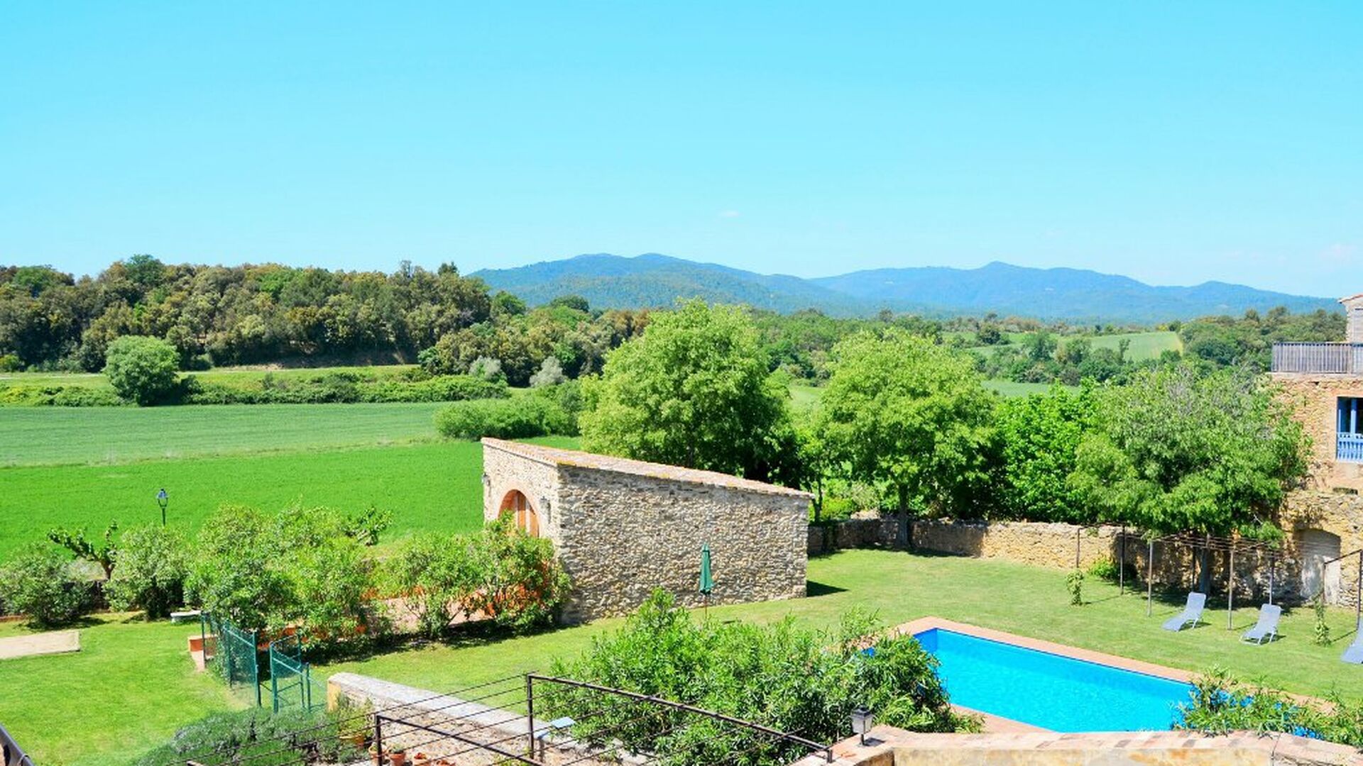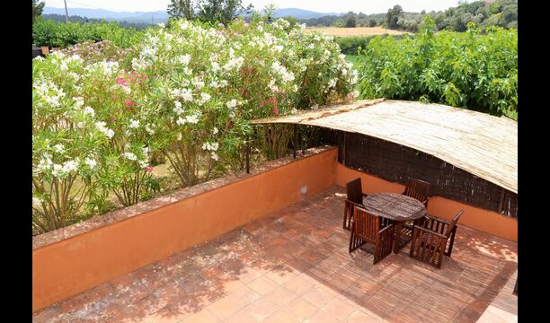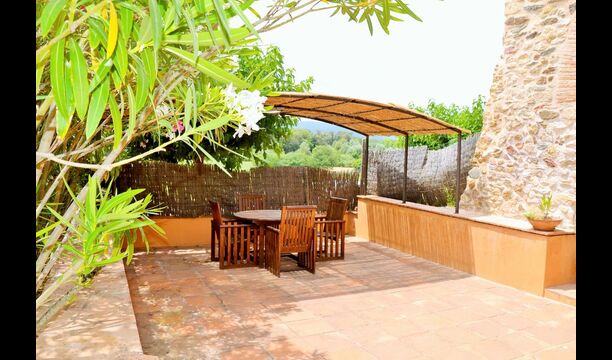 La casa té un jardí molt gran amb una piscina enorme, que està protegida amb una tanca i amb gandules perquè pugui relaxar-se, només per ser interrompuda per un refrescant bany. A la resta del jardí, hi ha diverses zones de pati i tarongers i llimoners proporcionen l'ombra i el toc de l'ambient mediterrani. Al poble a poca distància, hi ha alguns restaurants i una botiga amb una mica de tot. Tots els dies a les 12:00, un vaixell de pa arriba a la plaça, de manera que es pot comprar pa fresc per dinar. Hi ha supermercats més grans a La Bisbal, que és reconegut per la seva ceràmica. Aquesta ciutat és a 5 km de la casa.