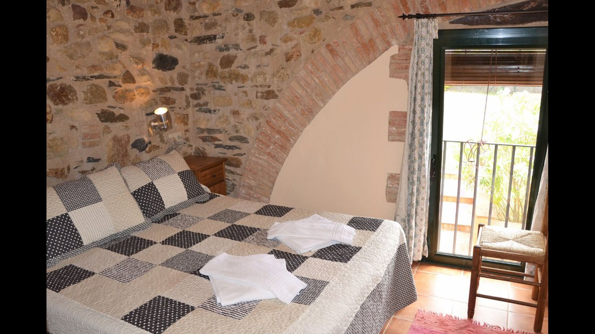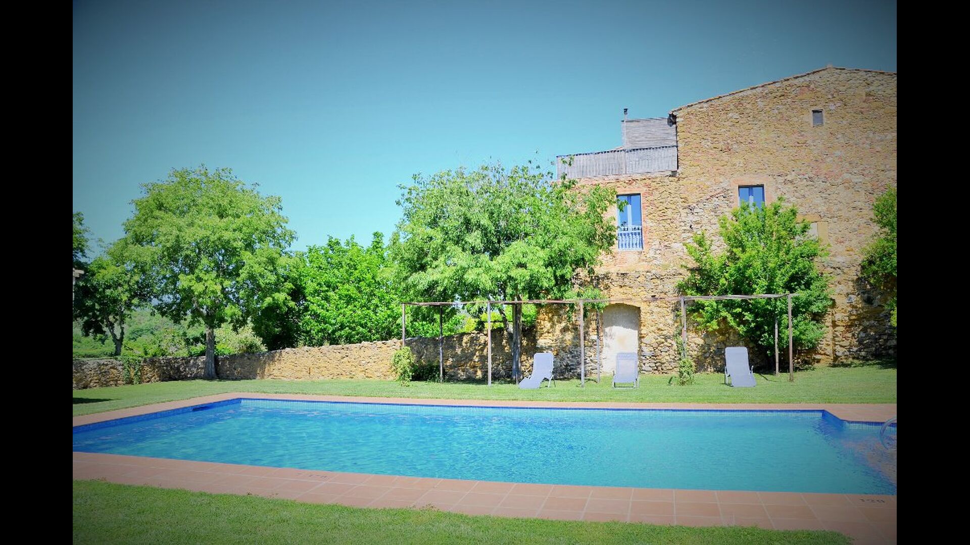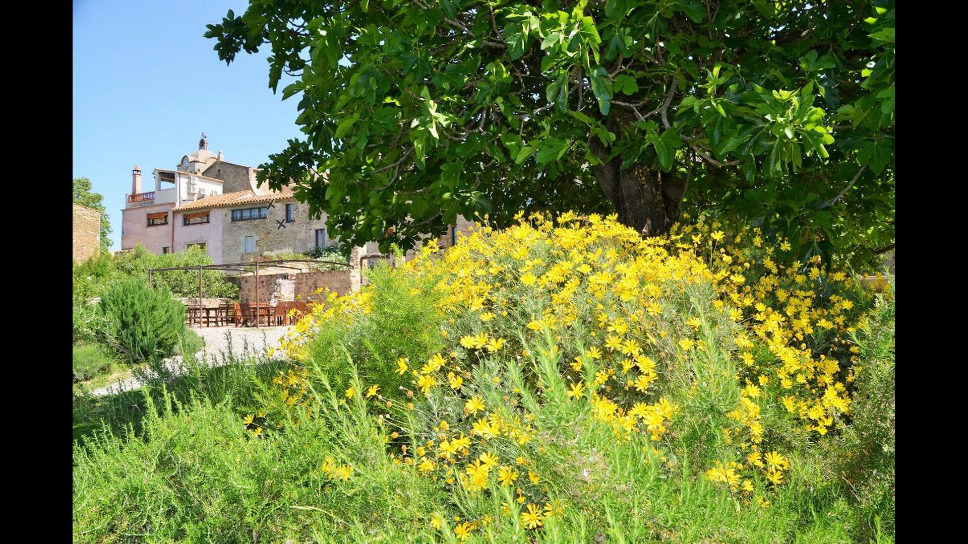La casa té un jardí molt gran amb una piscina enorme, que està protegida amb una tanca i amb gandules perquè pugui relaxar-se, només per ser interrompuda per un refrescant bany. A la resta del jardí, hi ha diverses zones de pati i tarongers i llimoners proporcionen l'ombra i el toc de l'ambient mediterrani. Al poble a poca distància, hi ha alguns restaurants i una botiga amb una mica de tot. Tots els dies a les 12:00, un vaixell de pa arriba a la plaça, de manera que es pot comprar pa fresc per dinar. Hi ha supermercats més grans a La Bisbal, que és reconegut per la seva ceràmica. Aquesta ciutat és a 5 km de la casa.