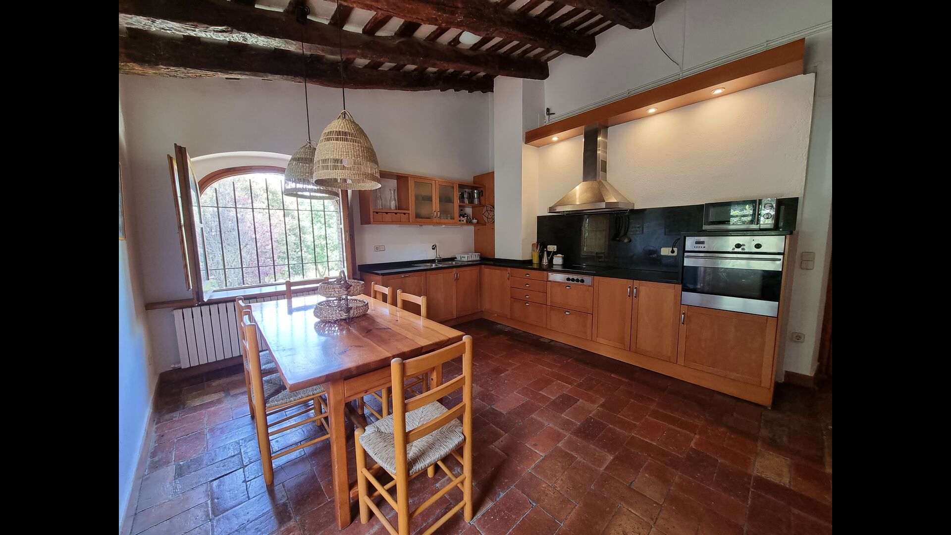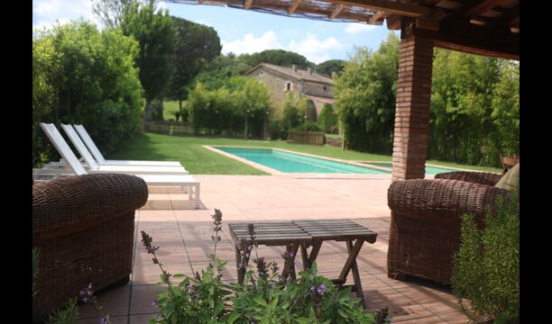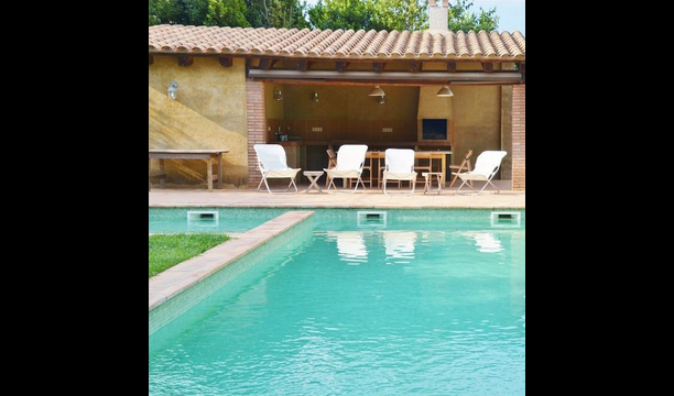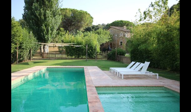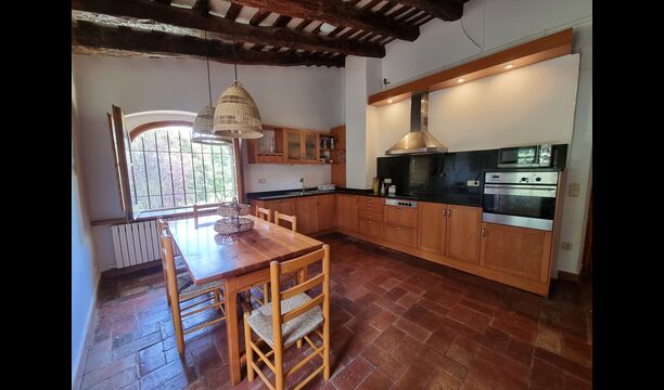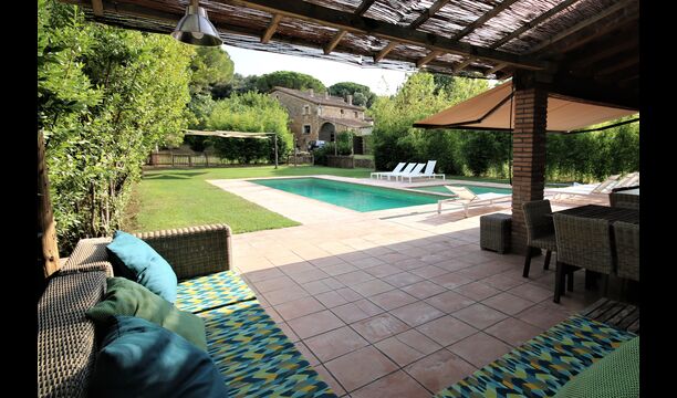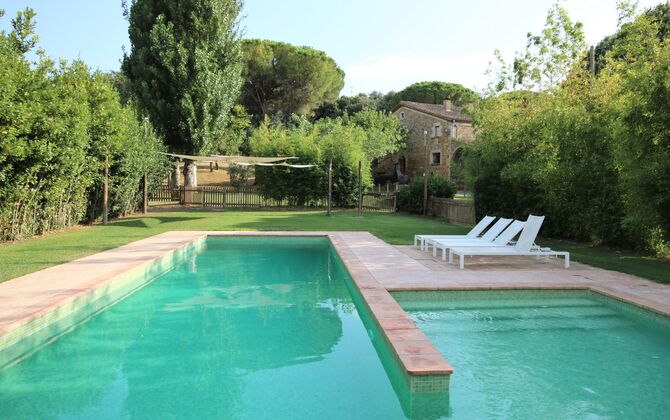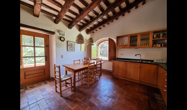 Situada just a sobre del poble, amb camps que separen la casa del començament del poble, es troba aquesta bonica i autèntica casa de vacances catalana, amb un ampli jardí, on la gran zona de piscina és el centre d'atracció principal.