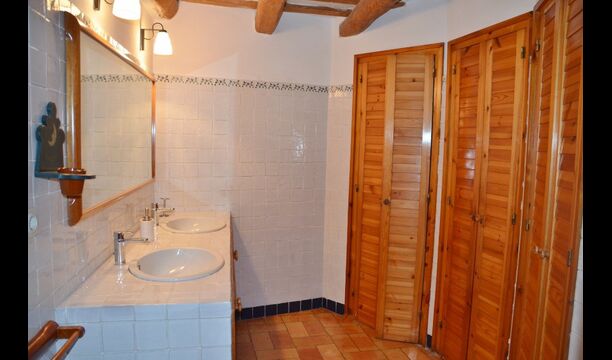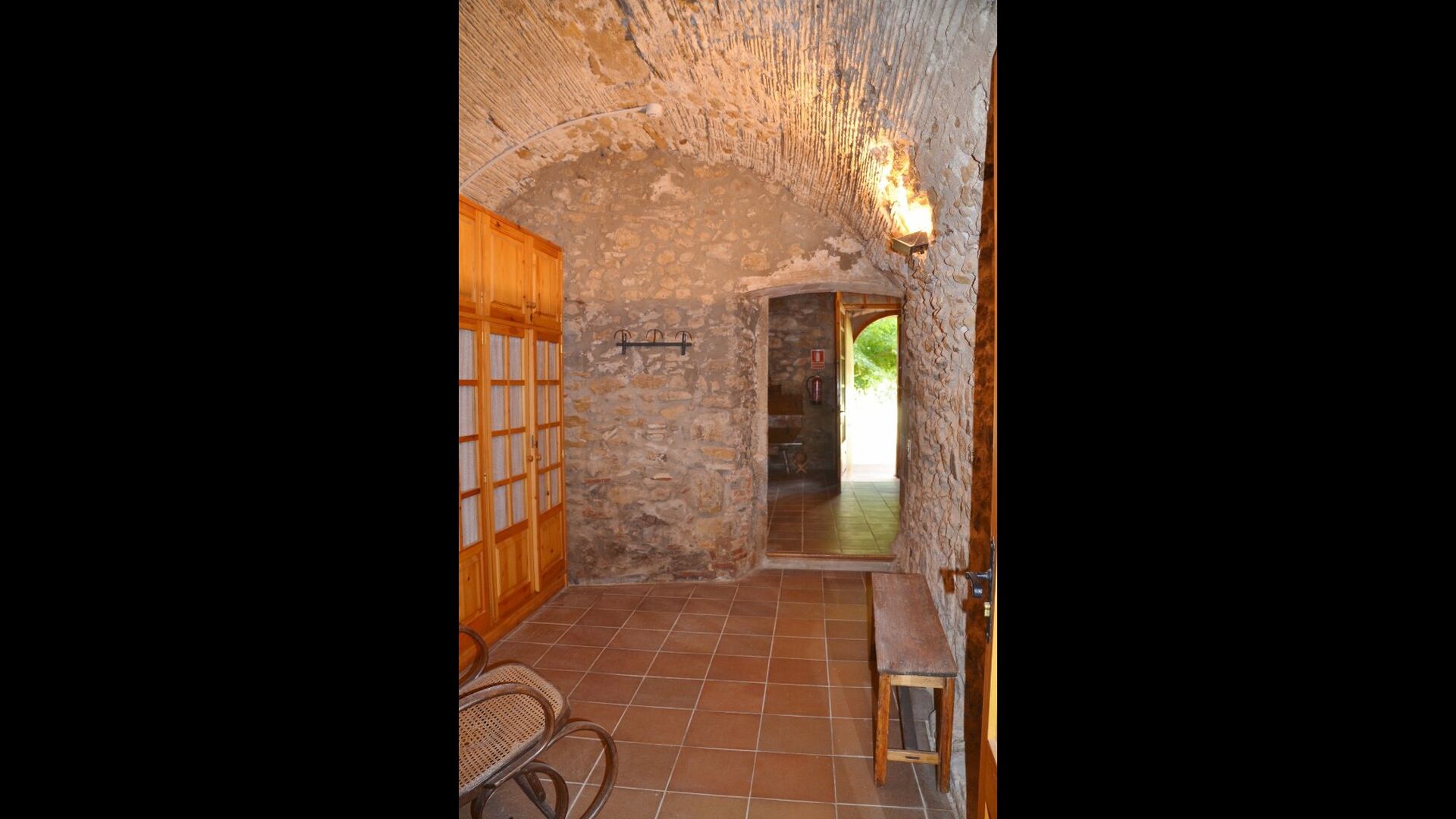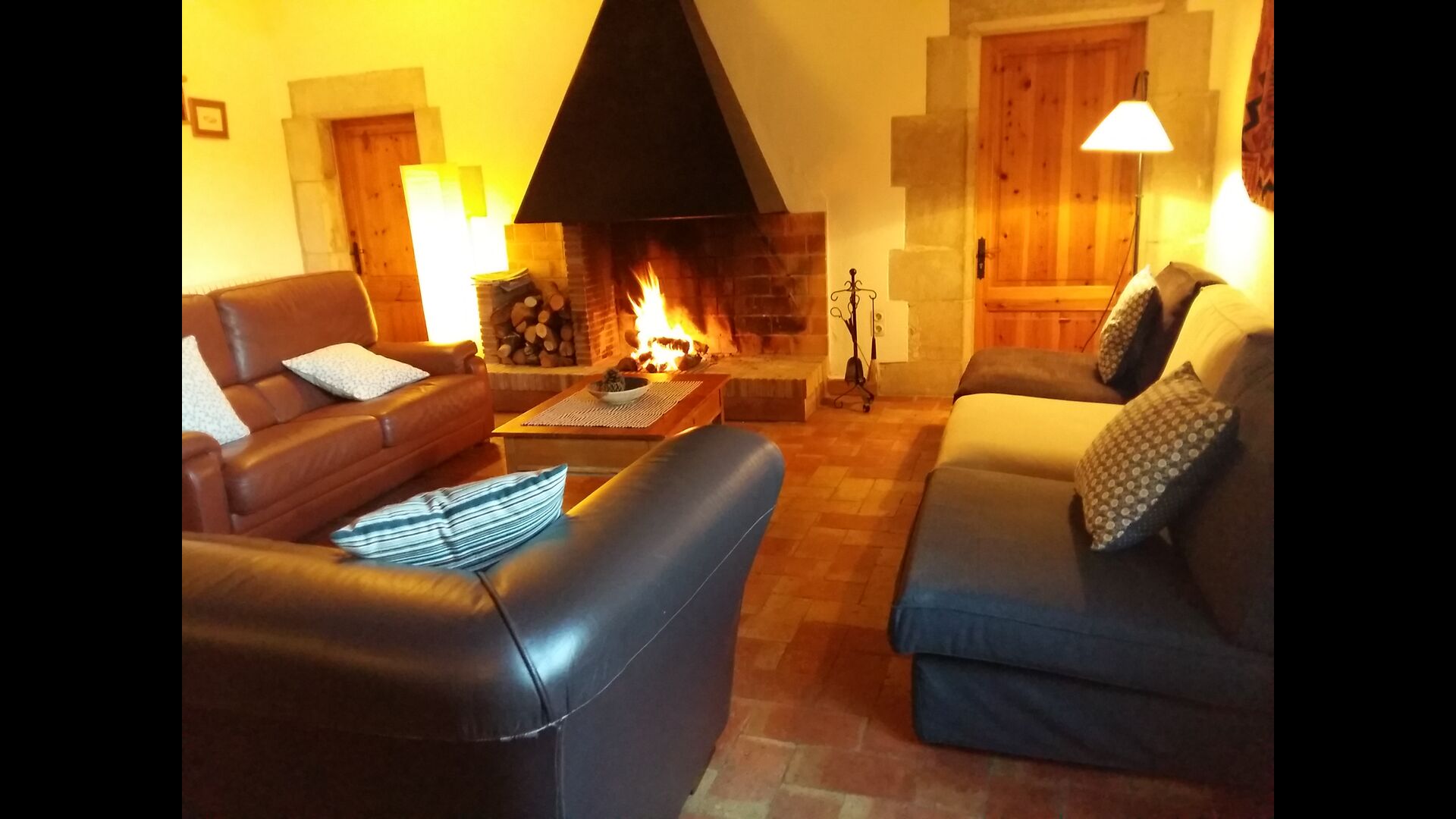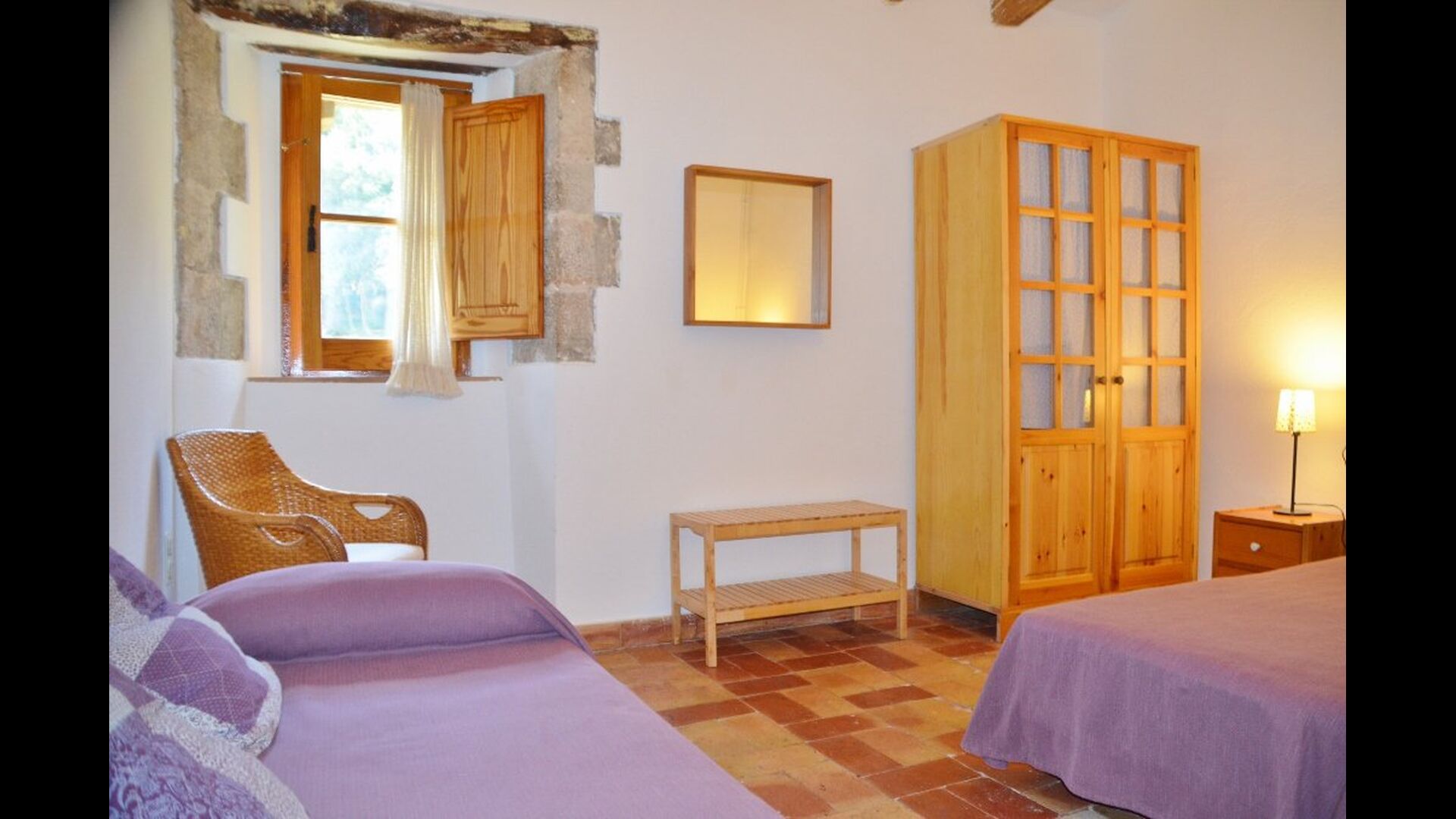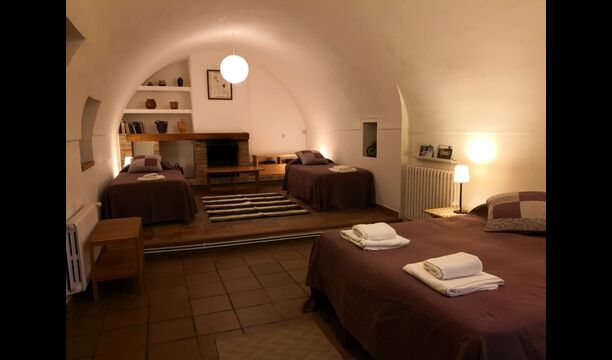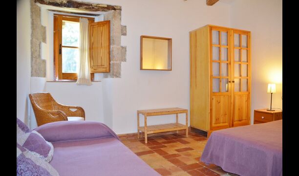 S'entra a la casa per la planta baixa amb un bonic rebedor de sostre alt i amb arcs i un ambient molt agradable creat per les pareds de pedra vista i molts altres detalls autèntics. En aquesta planta, hi ha una agradable habitació familiar quadruple amb bany adaptat i una habitació doble amb llit doble i amb bany privat. Pujant per l'escala hi ha una segona habitació doble amb llit doble i un bell bany.