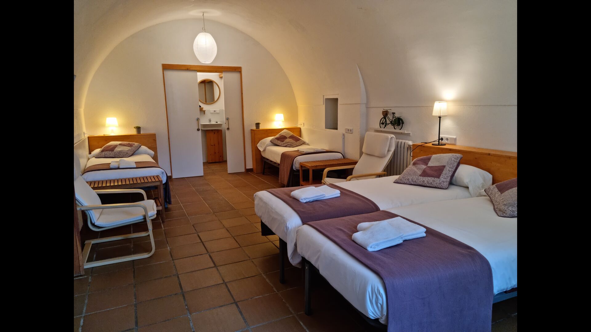 Des de l'àrea comuna, s'accedeix a cinc dormitoris addicionals, dos d'ells dobles amb llit doble i tres dobles amb llits individuals. Les habitacions tenen una vista molt bonica del paisatge i del poble. En aquest pis, hi ha dues cambres de bany per compartir.