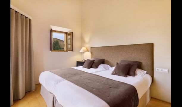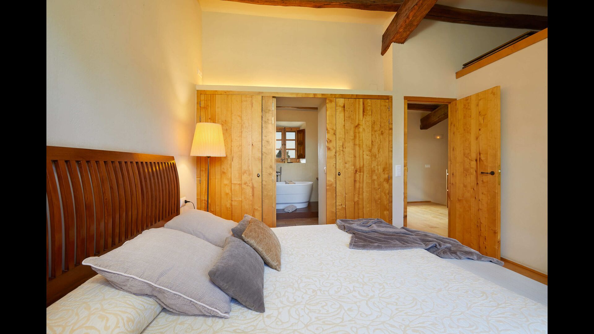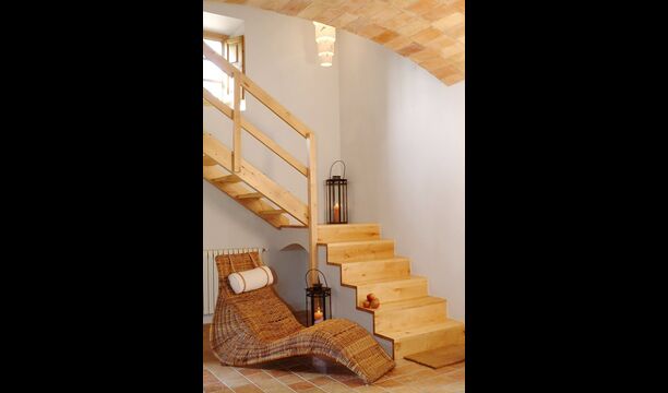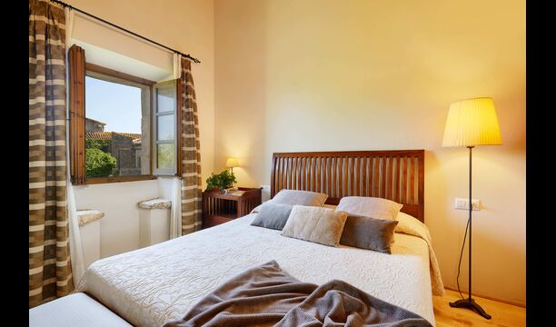 The lovely holiday apartment is located with the front facing the large garden. The house with its stone walls has a very authentic and rustic atmosphere. The apartment has a terrace, where you can enjoy your homemade meals during the warm Catalan evenings.