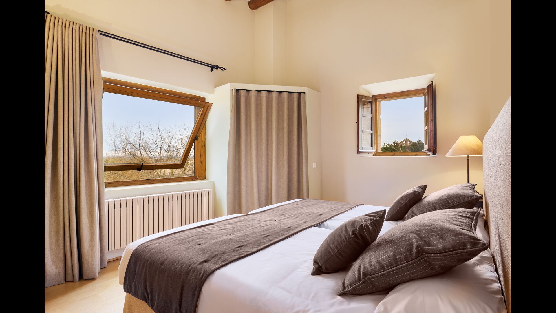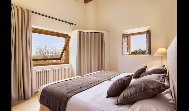 Casa Mas Ametller - Terrasse Llevant, uno is a wonderful holiday apartment located in the Tuscany-like area Empordá with only 6 km to the beaches of Costa Brava. There is room for 4 people in two spacious and beautiful bedrooms: One with a double bed and one with two single beds which is perfect for a family. The apartment is in a house with three other apartments, all rented separately. These share the outdoor facilities.