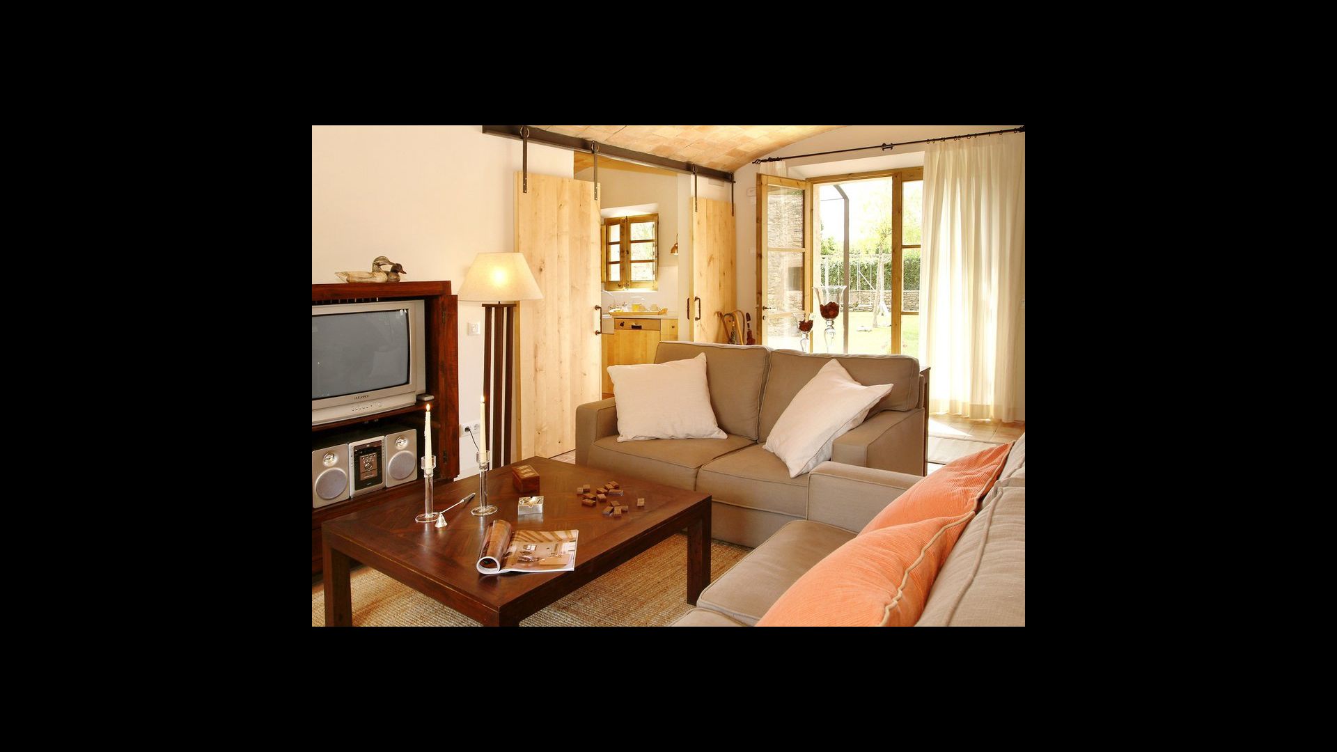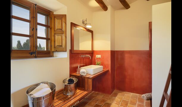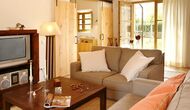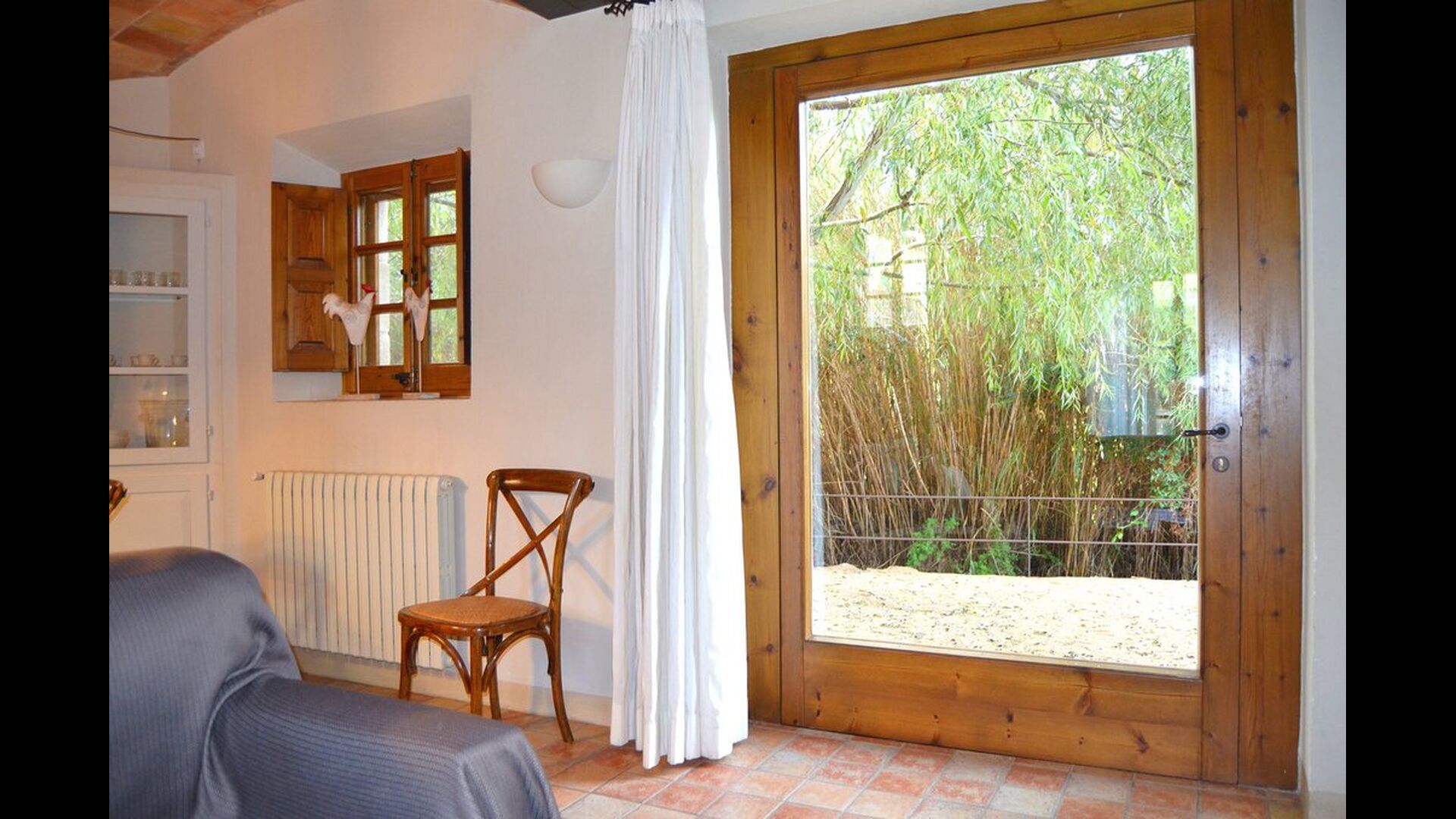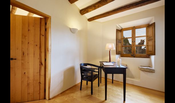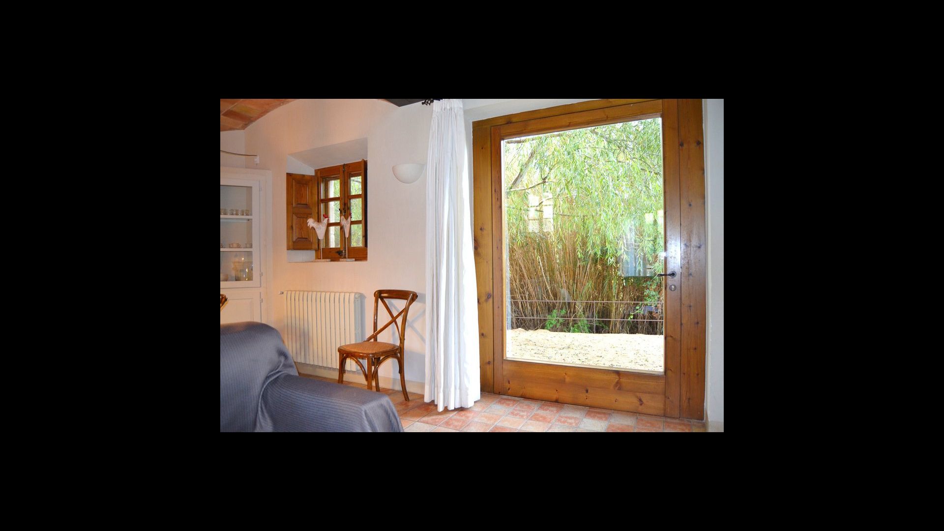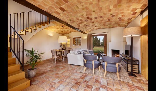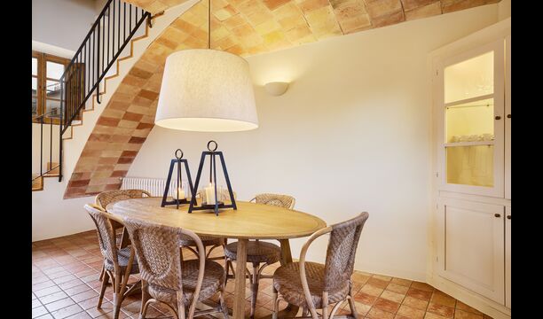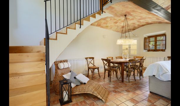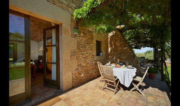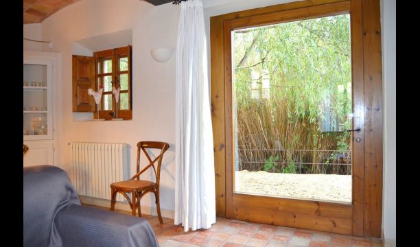 The lovely holiday apartment is located with the front facing the large garden. The house with its stone walls has a very authentic and rustic atmosphere. The apartment has a terrace, where you can enjoy your homemade meals during the warm Catalan evenings.