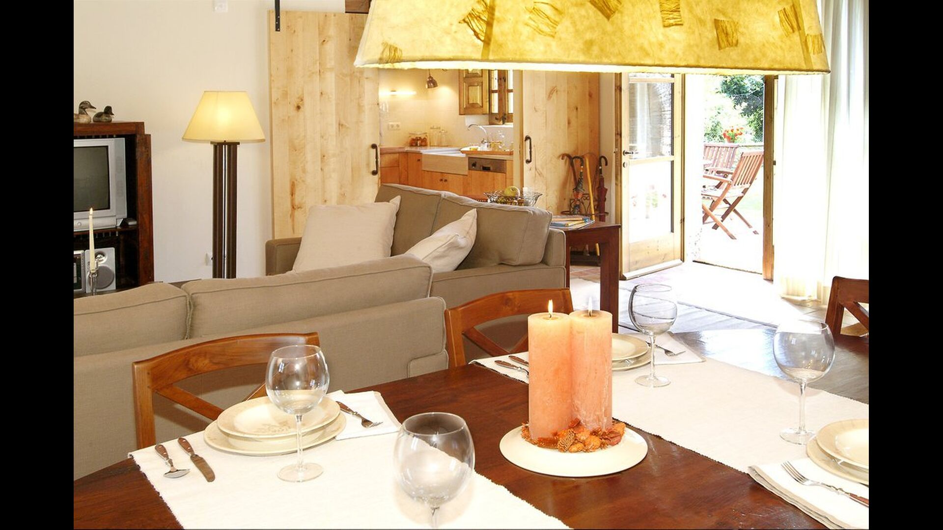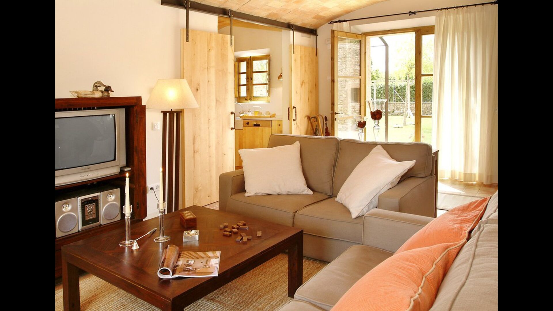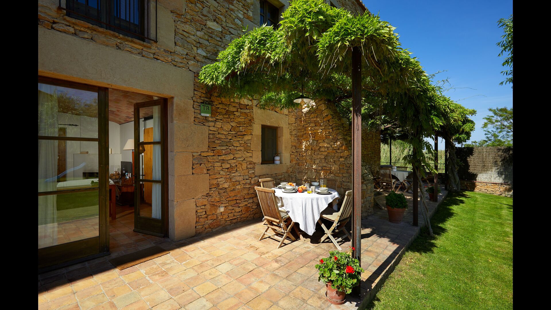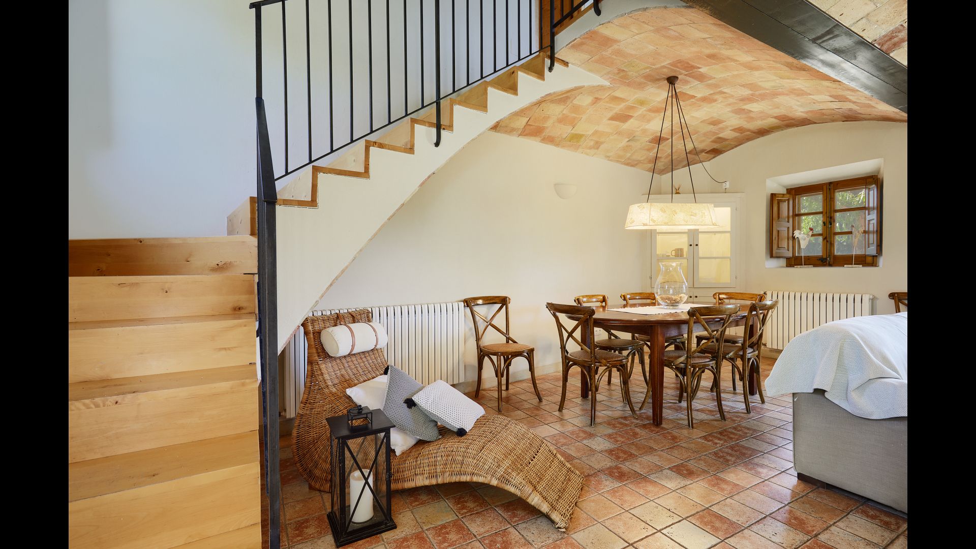 The lovely holiday apartment is located with the front facing the large garden. The house with its stone walls has a very authentic and rustic atmosphere. The apartment has a terrace, where you can enjoy your homemade meals during the warm Catalan evenings.