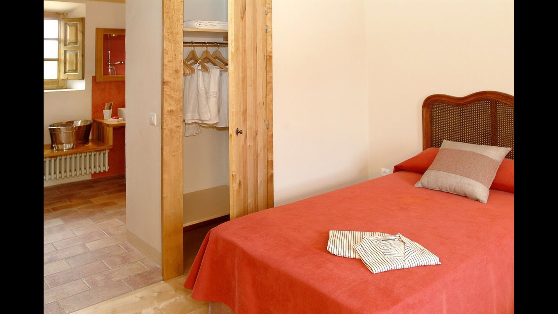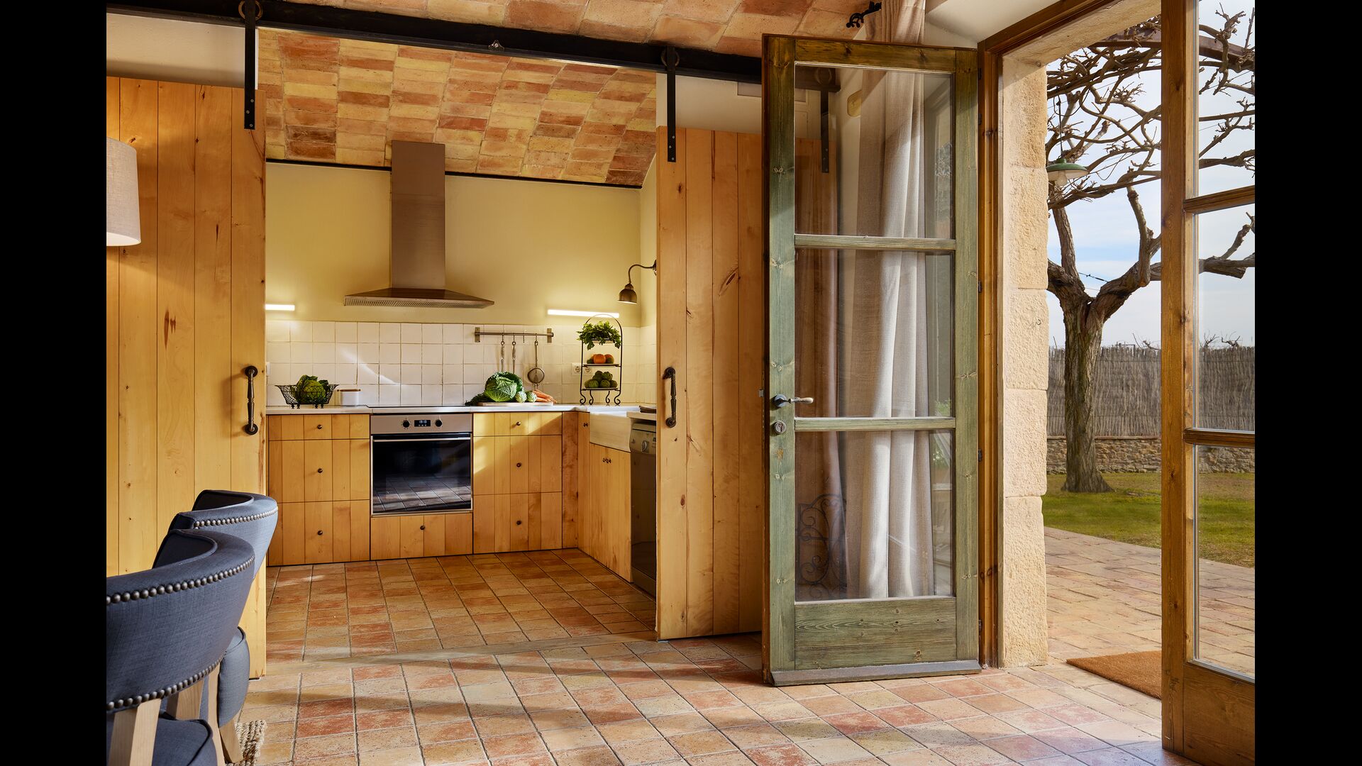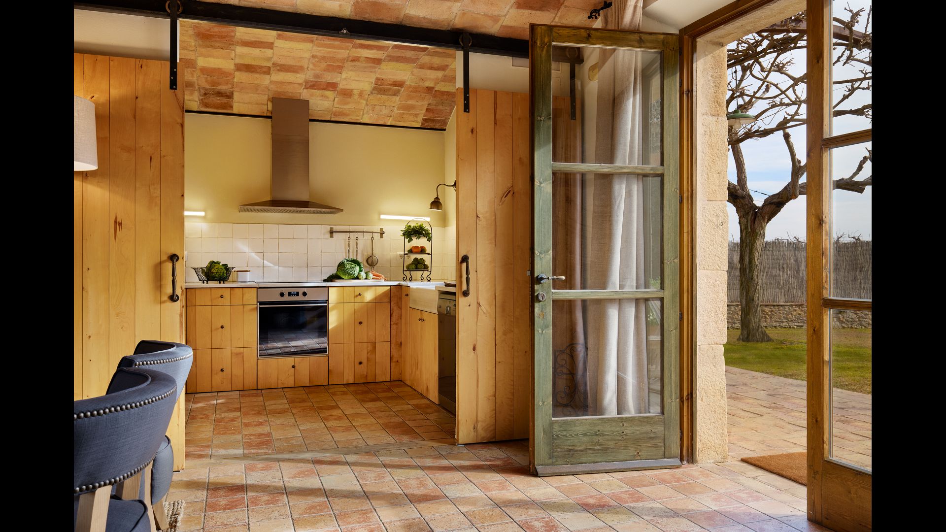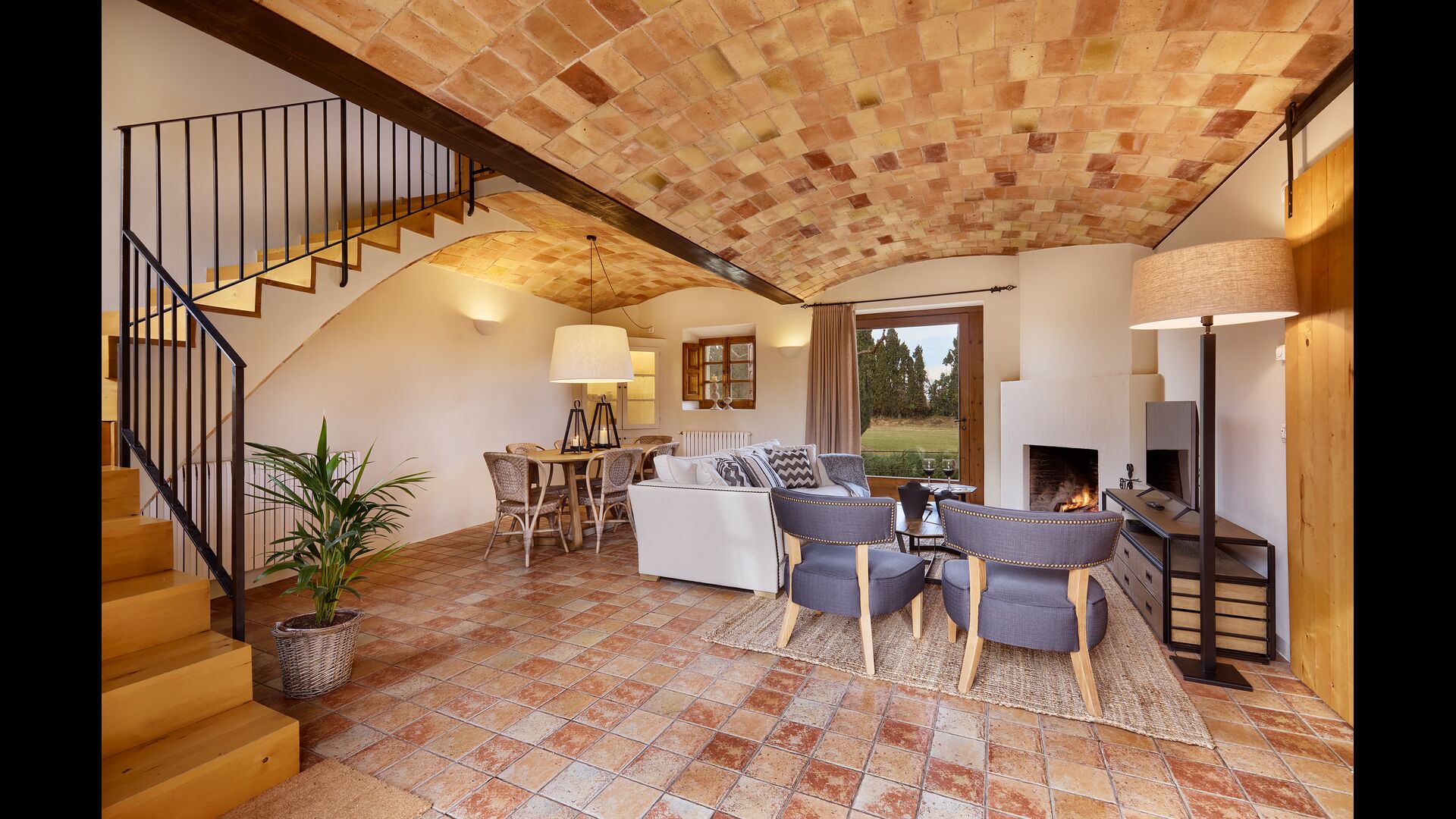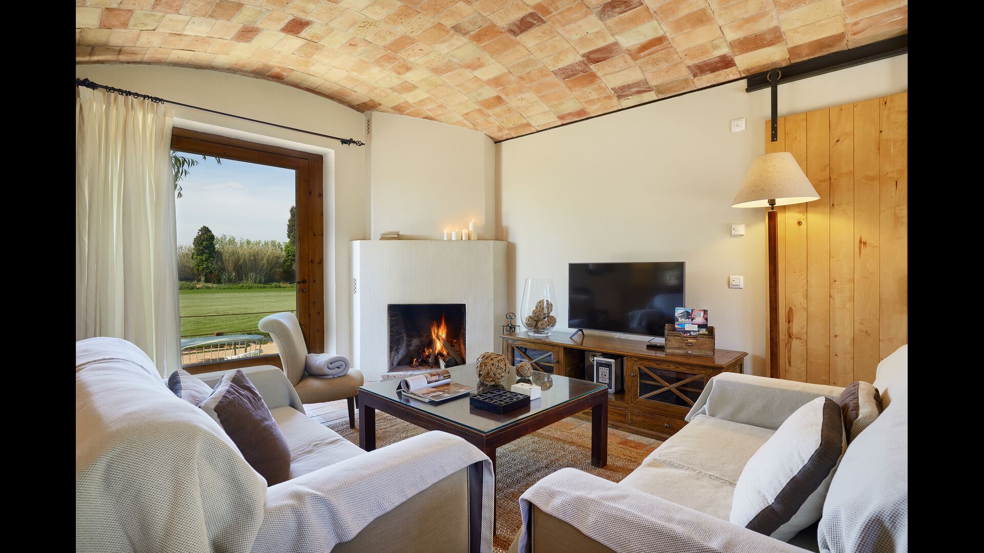 The lovely holiday apartment is located with the front facing the large garden. The house with its stone walls has a very authentic and rustic atmosphere. The apartment has a terrace, where you can enjoy your homemade meals during the warm Catalan evenings.