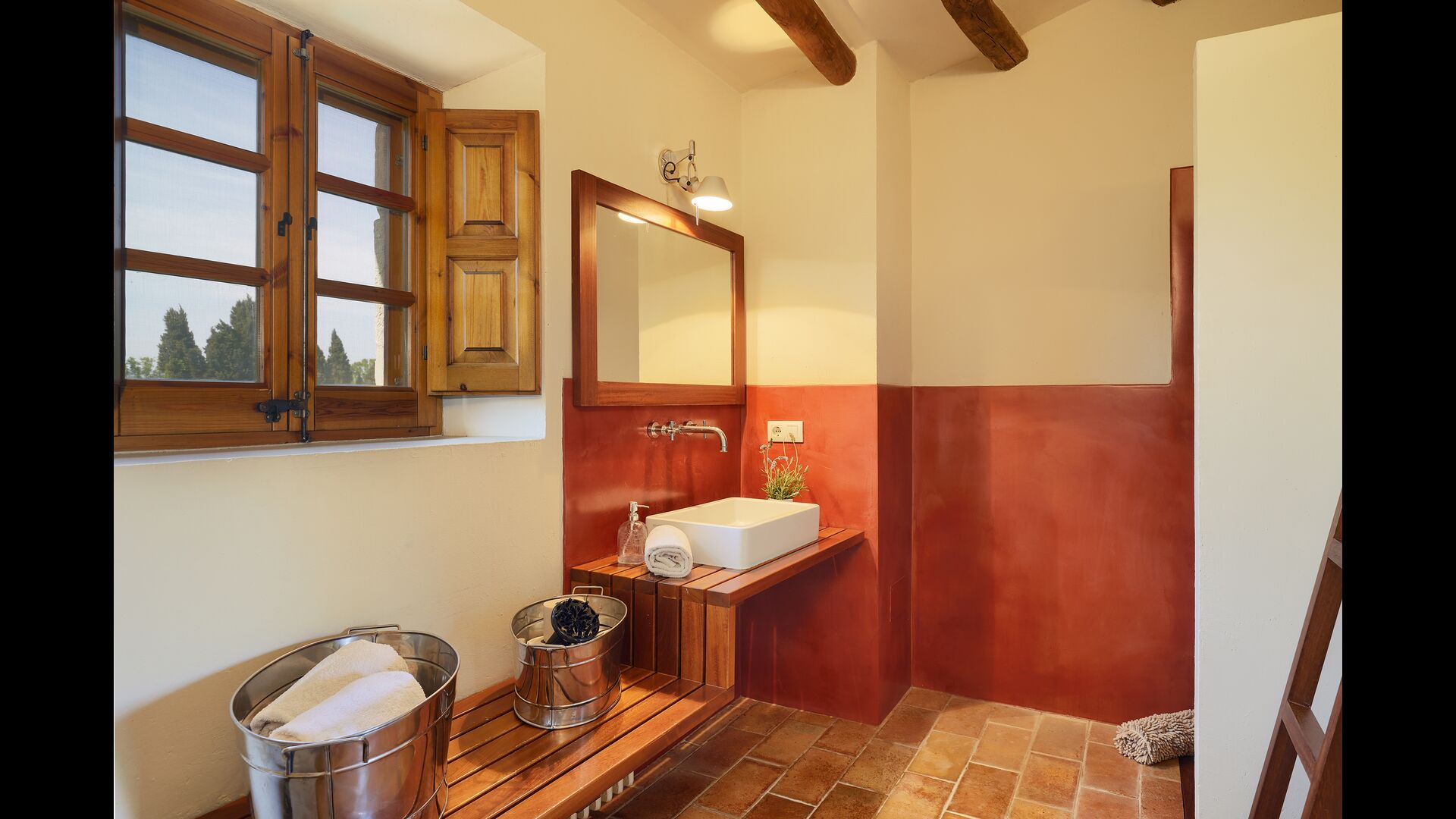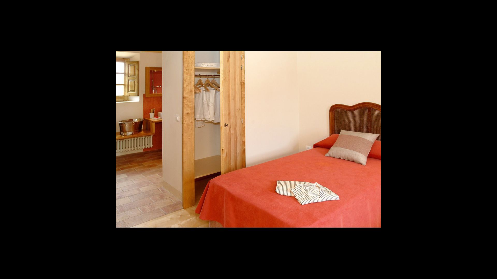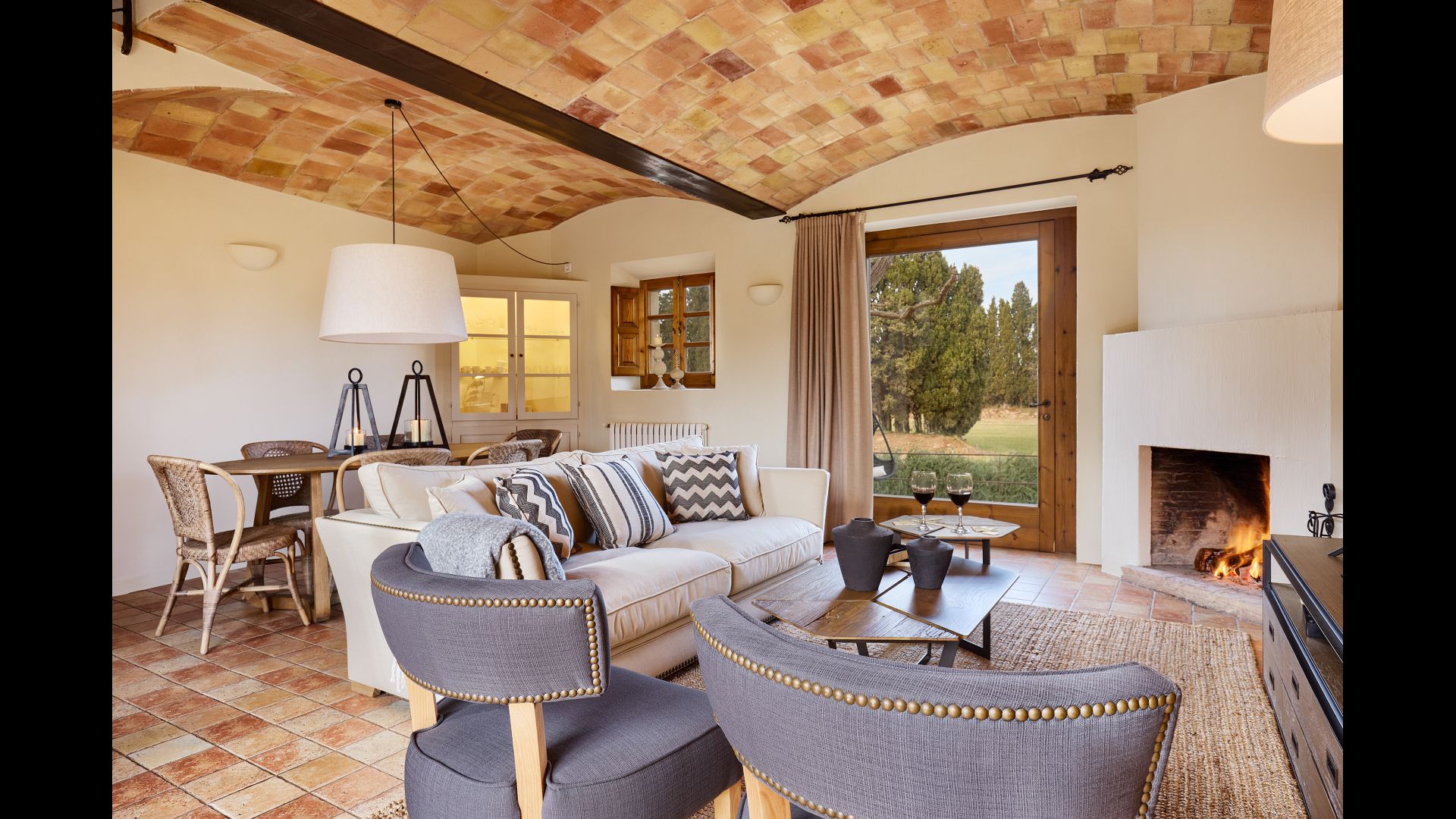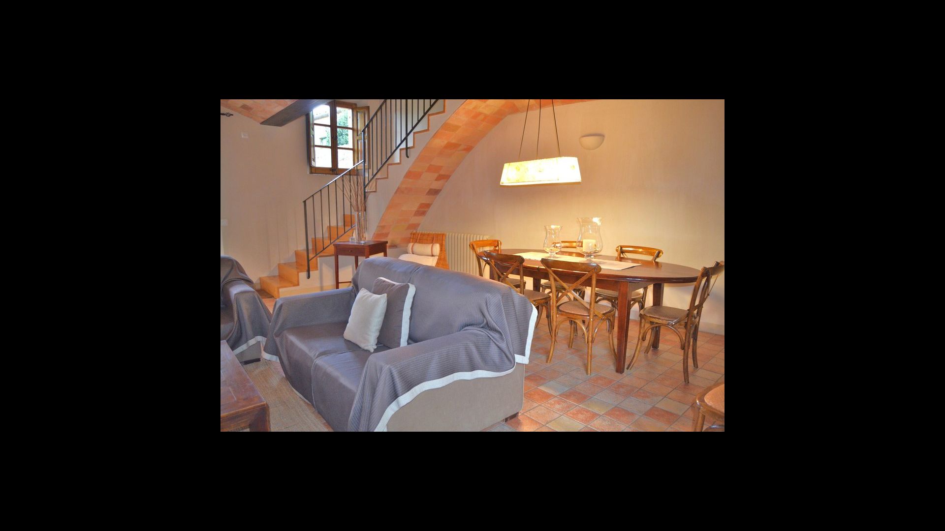 The lovely holiday apartment is located with the front facing the large garden. The house with its stone walls has a very authentic and rustic atmosphere. The apartment has a terrace, where you can enjoy your homemade meals during the warm Catalan evenings.