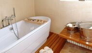 If you go inside, you are met by an apartment of very high quality, and it's not just the material. There is also a good atmosphere in the house. Central to the apartment is the living room as the natural meeting point. Here there is a cosy sofa corner, where you can watch TV or just be together. Furthermore , there is a nice dining table in the living room. Through two sliding doors, there is a large entrance to the kitchen, which is equipped with an oven, a dishwasher and many other necessities. The two bedrooms, located on the first floor, are like the rest of the apartment beautifully decorated. They each have a great and spacious en suite bathroom, one of them with a bathtub.