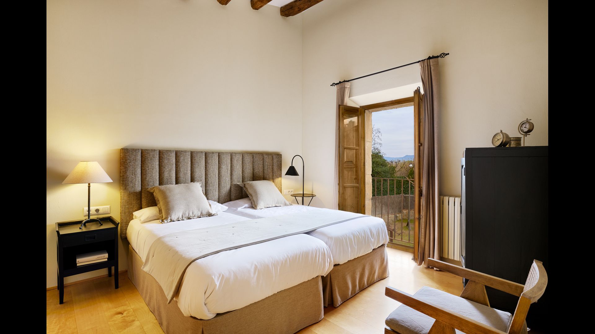 Casas Mametlár - Terraza dos is a wonderful holiday apartment located in the Tuscany-like area Empordá with only 6 km to the beaches of Costa Brava. There is room for 4 people in two spacious and beautiful bedrooms: One with a double bed and one with two single beds which is perfect for a family. The apartment is in a house with three other apartments, all rented separately. These share the outdoor facilities.