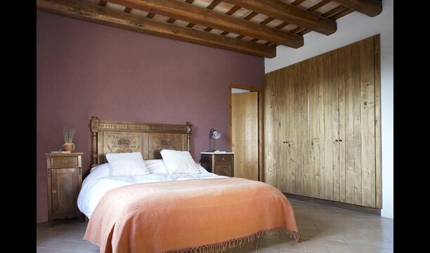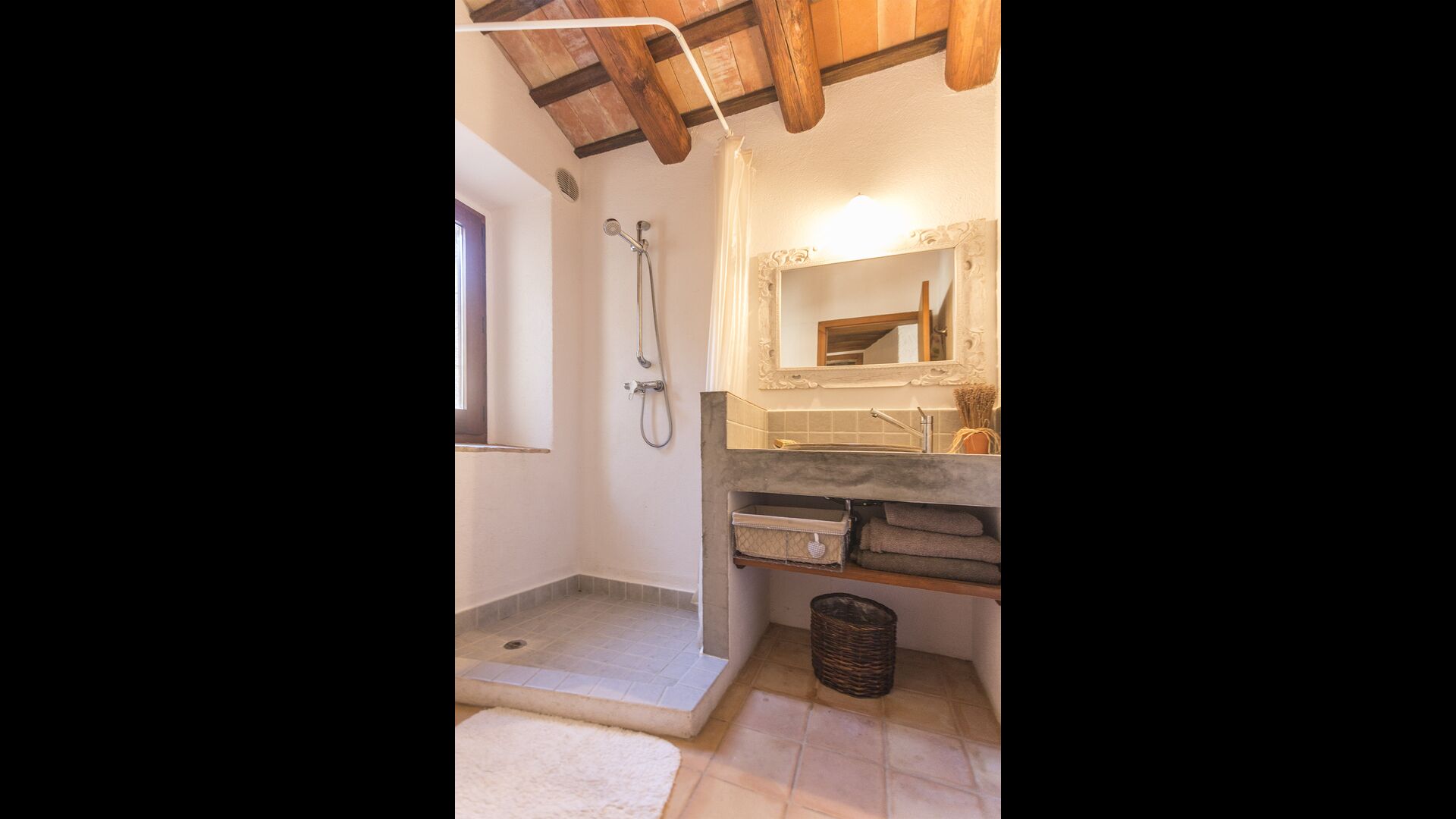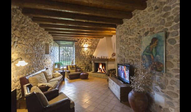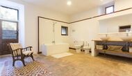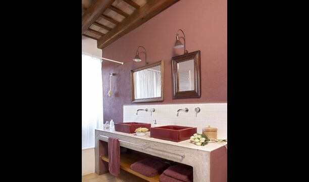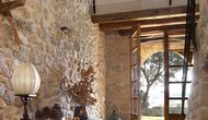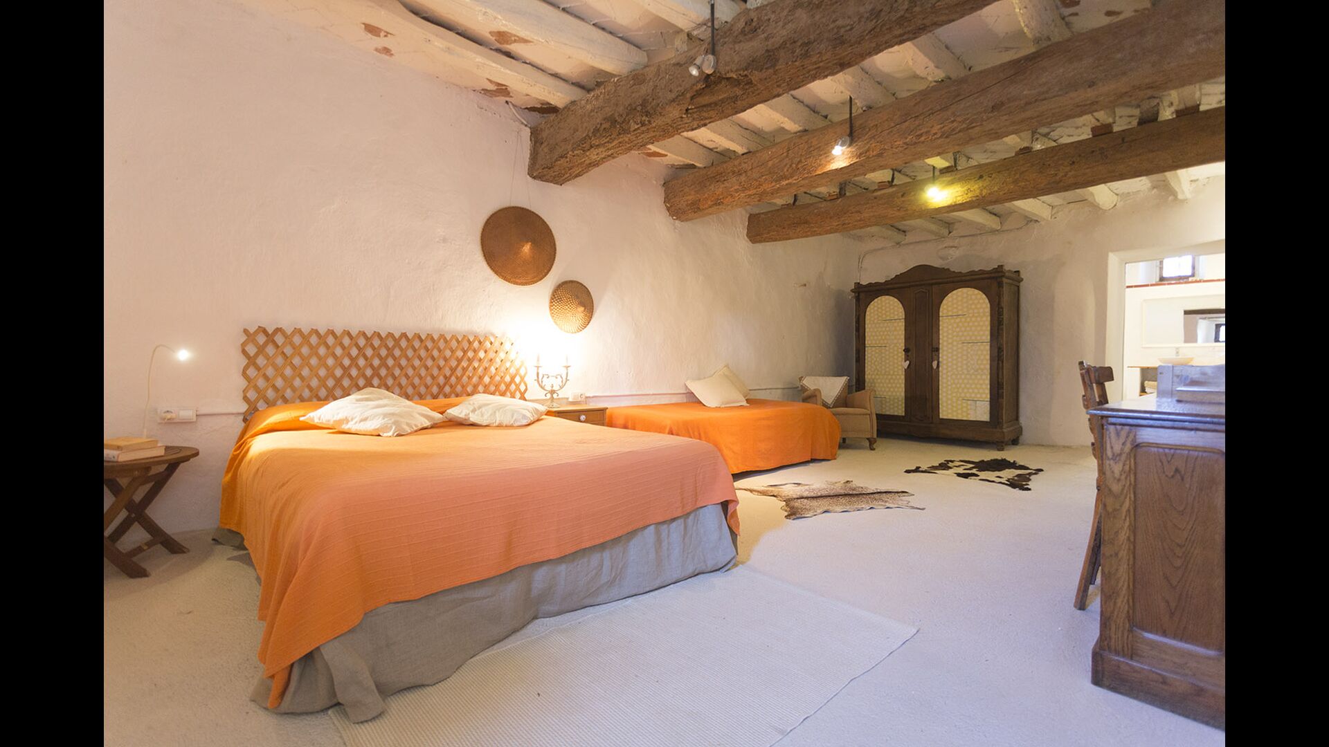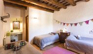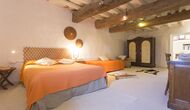 Coming up the mansion-style stairway, on the first floor you get to a big hall, serving as entrance to the four different rooms. Each room is between 30 and 40m2, three of them have double beds and the fourth has two single beds. Each room has modern bathrooms inside, and three of them with bathtubs with hydro massage. From each room, you have an excellent view over respectively the pool-area, the nearby fields and the grove.