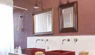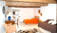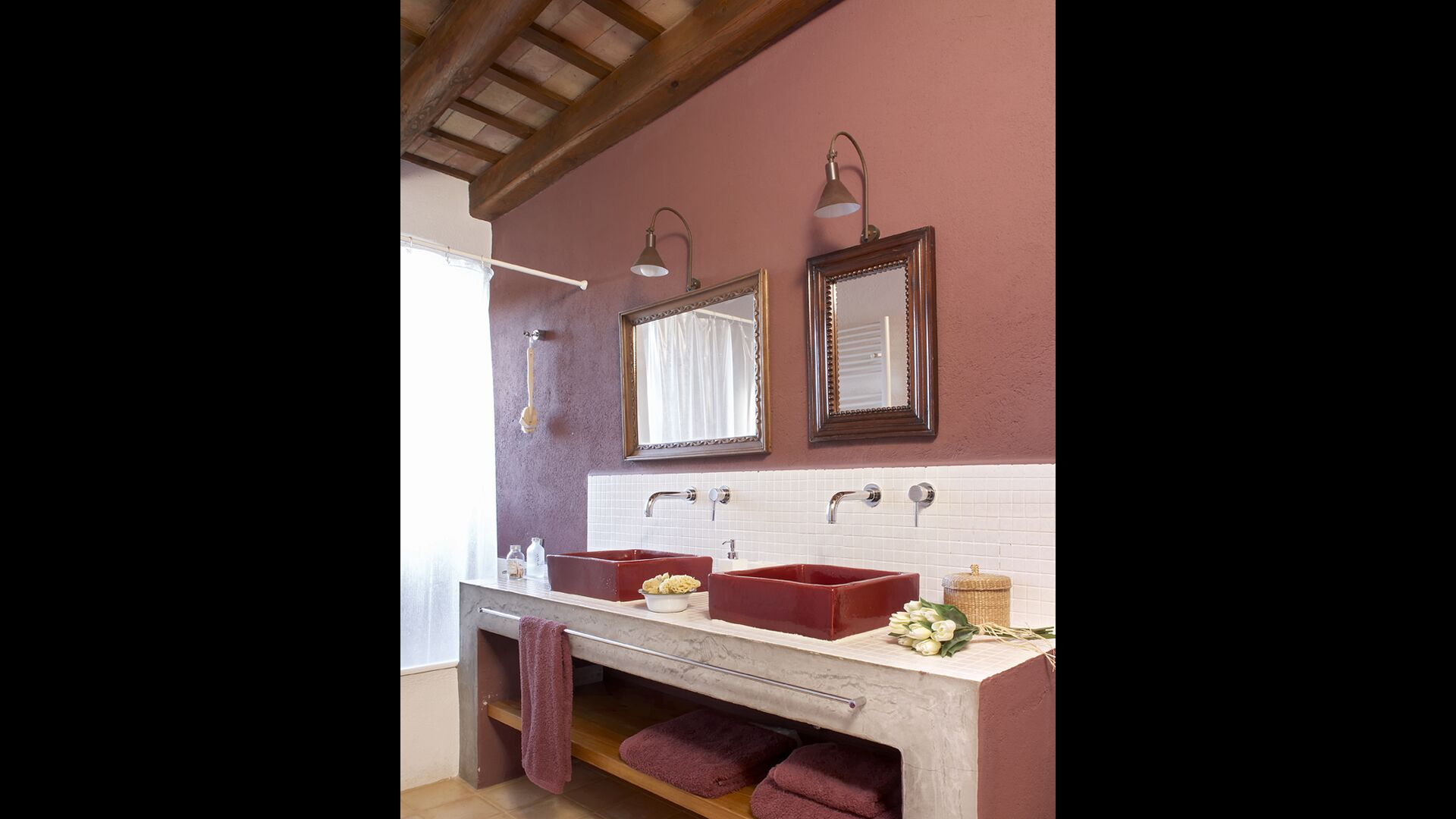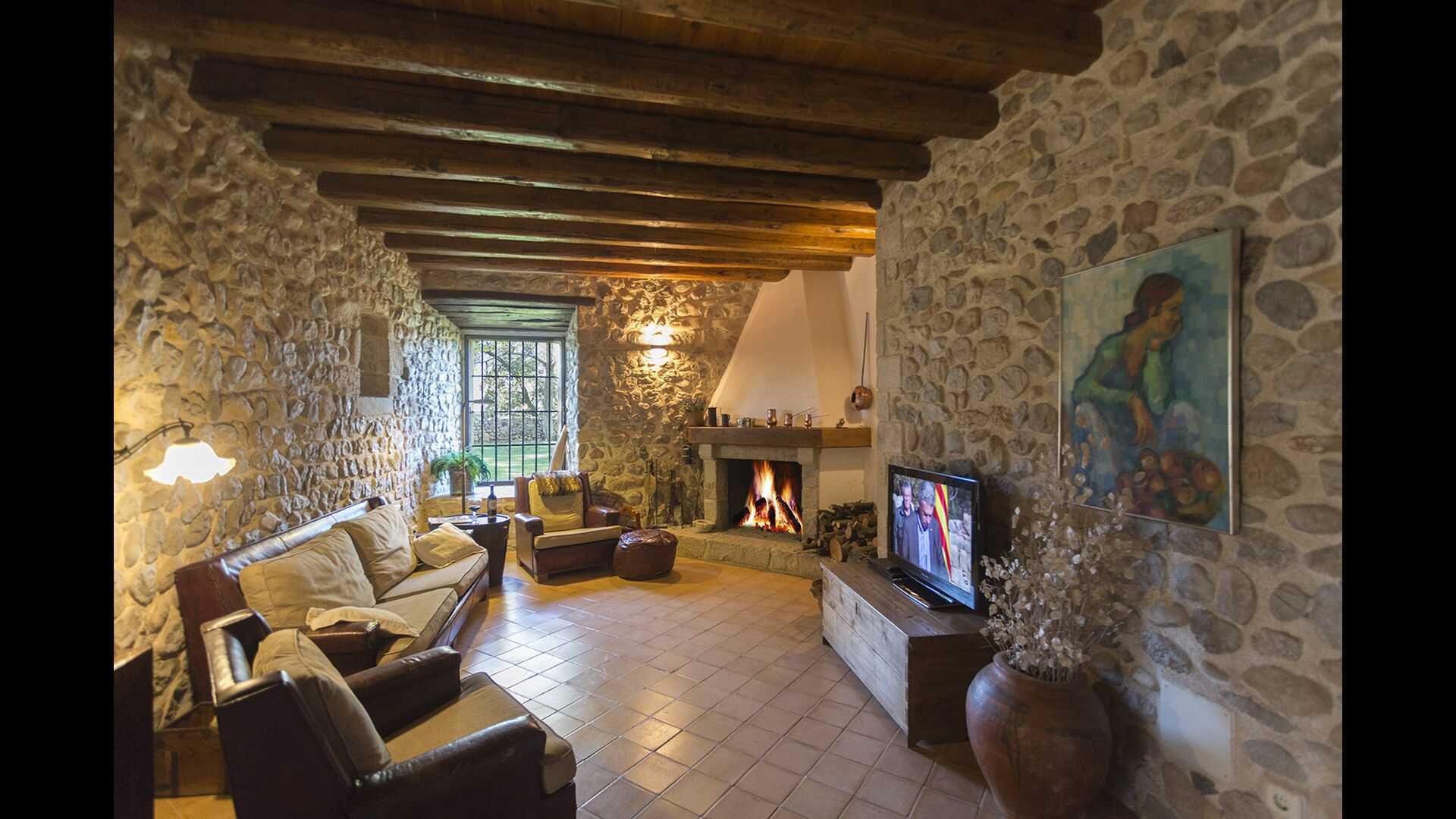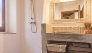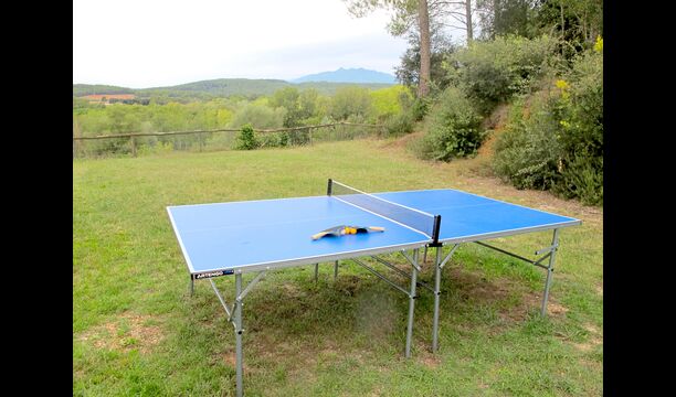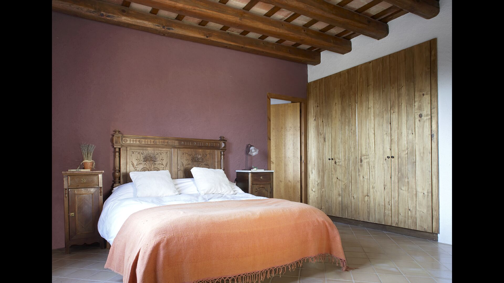 Coming up the mansion-style stairway, on the first floor you get to a big hall, serving as entrance to the four different rooms. Each room is between 30 and 40m2, three of them have double beds and the fourth has two single beds. Each room has modern bathrooms inside, and three of them with bathtubs with hydro massage. From each room, you have an excellent view over respectively the pool-area, the nearby fields and the grove.