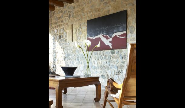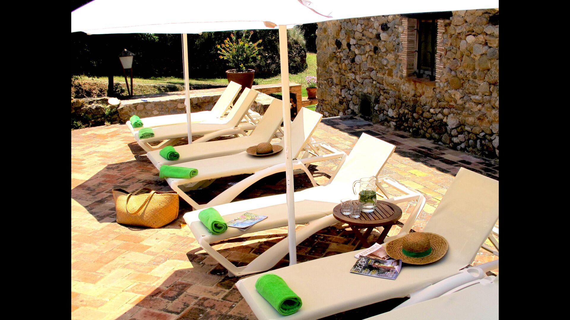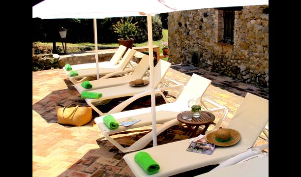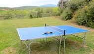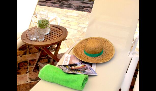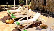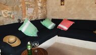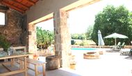 The exterior facilities are just as extensive. On the front of the house, the limestone wall surrounds the pool area. The swimming pool is 10 x 5 metres, and after a refreshing swim, you can dry in one of the beach chairs. On the east-side of the house, you find the terrace with terrace table, chairs and parasols; Big enough for the entire group to eat together. On south side of the house, there is a lawn and a path leading down to the river. It is possible to take a swim in the river as well.