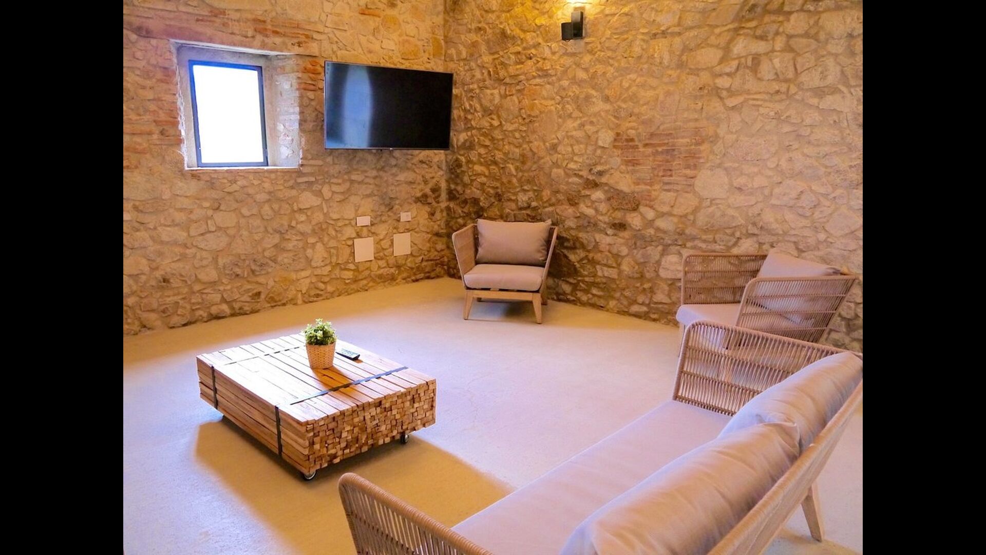 La casa està dividida en "apartaments", el que significa que les habitacions es distribueixen en unitats separades al voltant del castell, on hi ha diverses habitacions en moltes de les unitats. Hi ha un total de 6 d'aquests "apartaments" amb 9 habitacions i espai per a 26 persones en total. Amb les 9 habitacions vénen 6 banys, dels quals 4 són en suite. A més, 1 de les habitacions té accés directe a la zona de la piscina. Hi ha diverses cuines ben equipades, així com una sala d'estar amb TV de pantalla plana i diversos seients. També hi ha, en relació amb les cuines, diverses taules de menjador, perquè puguin gaudir dels àpats junts.