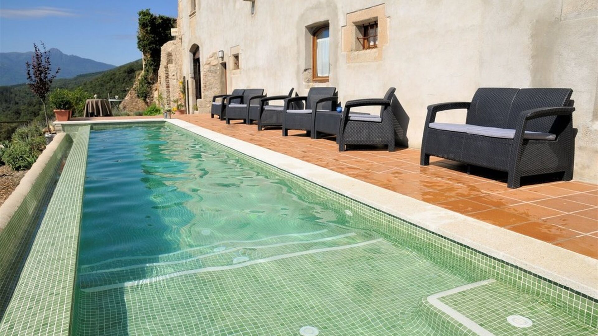 Les instal·lacions de la casa de vacances són nombroses: el més destacat és, per descomptat, la piscina de 15 metres que domina l'horitzó i el bell paisatge. La piscina té profunditats variables i una funció de jacuzzi en un extrem. Amb la piscina hi ha diverses gandules i altres seients, on pot seure amb una beguda freda i gaudir de la vista i de l'encantador sol català, amb l'oportunitat única de donar-se-vos a l'aigua refrescant en un moment donat. En el mateix costat de la casa que la piscina, es troba el bell jardí amb diversos nivells i tot tipus de belles flors i plantes, però en realitat, tota l'àrea és el seu jardí; Vostè pot moure lliurement en el camp que envolta el castell. A més d'això, hi ha un gran pati amb espai per a gairebé tot el que pugui desitjar. Per exemple, pot moure la graella mòbil allà i fer una festa de barbacoa.