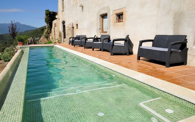 És difícil imaginar una casa de vacances més singular; Aquí, gaudiràs d'un magnífic castell a la muntanya, únicament envoltat d'altres muntanyes, boscos i una naturalesa impressionant i intacta. Des de la gran casa, tindrà una vista de 360 graus de valls i paisatges únics; Fins i tot pots fer una ullada a la costa de la Costa Brava. No hi ha una casa que sigui més adequada per allunyar-se del tràfec i el bullici. Aquí, pot seure en una gandula amb una beguda freda i gaudir de la calor i l'aire fresc de la muntanya. El propietari de la casa ha atribuït la casa amb l'eslògan "Enmig del no-res, connectat a tot arreu", que és tan cert com vaig dir: hi ha només mitja hora des del seu castell privat a Costa Brava i aproximadament A 15 minuts del poble més proper amb supermercat, restaurant, etc.