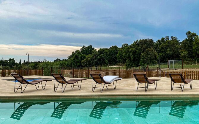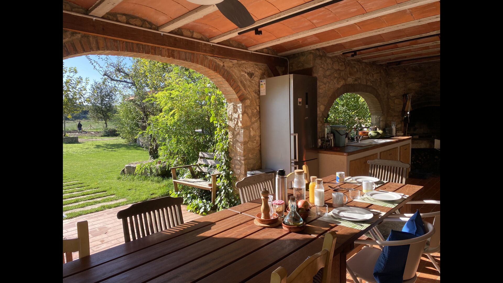 El centre natural del c´lid estiu catalá és la bella zona de la piscina. Aquí es troba la piscina, de 4 metres x 11 metres, jacuzzi amb solárium i un pèrgola. Dos 2 amplis porxos amb barbacoa de gas i/o llegenda o carbó. proporcionen ombra i el lloc perfecte per cuinar a l'aire lliure. També hi ha un porxo addicional m&ea;s petit. La propietat disposa d'aparcament privat i fins i tot ara amb carregadors elèctrics, perquè puguis carregar el cotxe mentre et relaxes a la piscina.