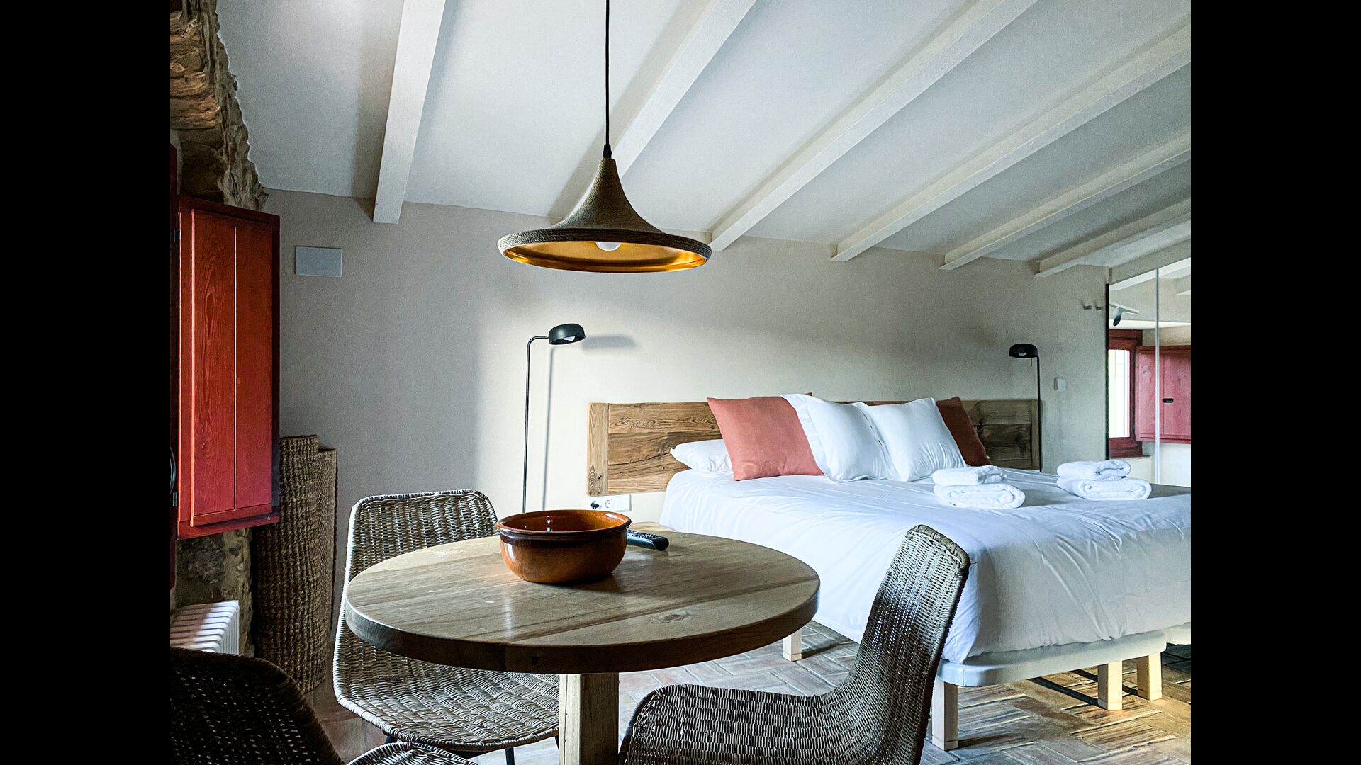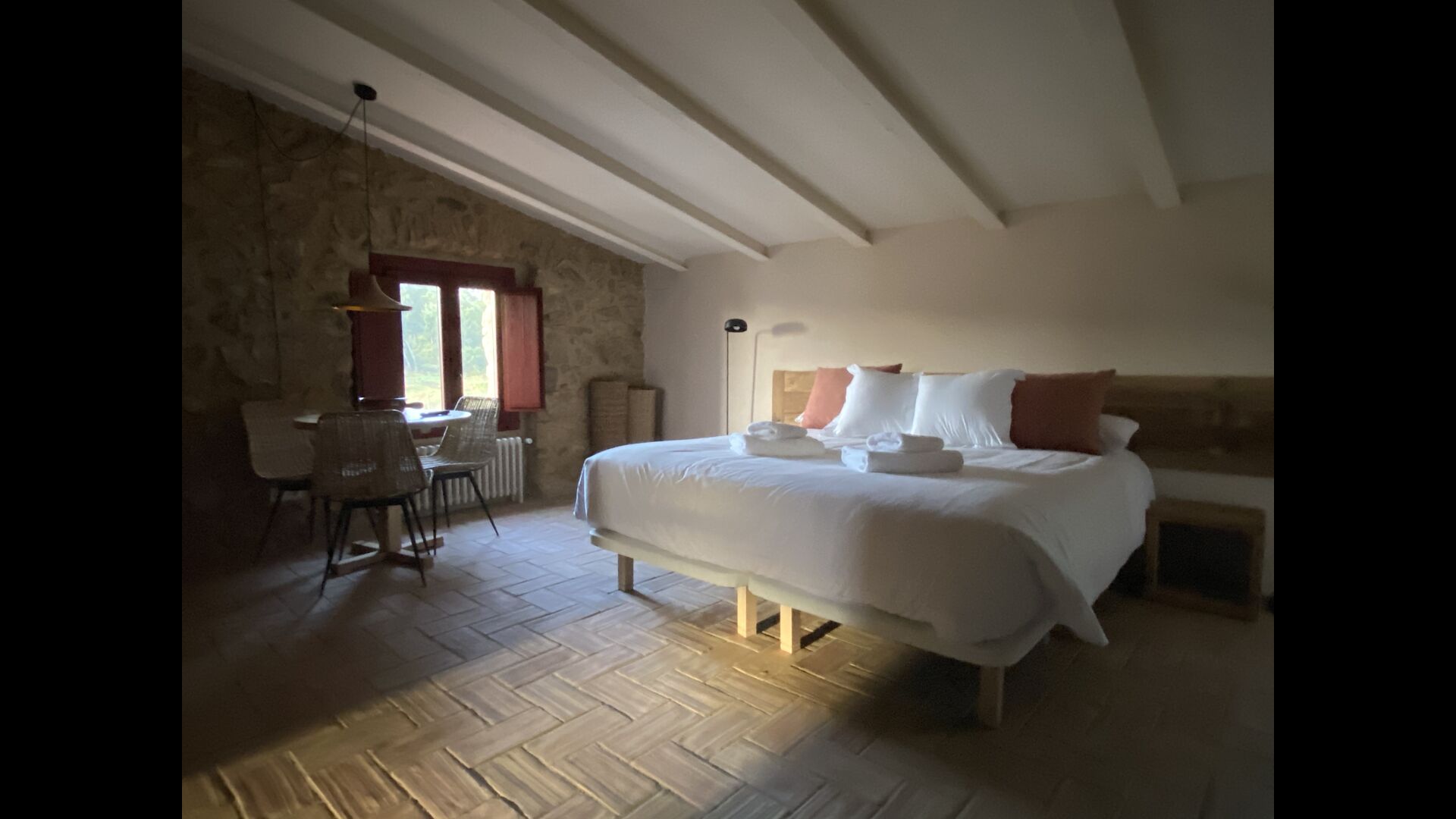 El Mas consta de quatre cases o apartaments rústics amb comoditats modernes, que ofereixen set àmplies habitacions boutique amb calefacció de biomassa, aire condicionat, kits de baño ecológics, sabatilles i tovalloles de qualitat. Ambdós edificis principals tenen cuina totalment equipada amb fàcil accés al jardí per sopar a l'aire lliure.