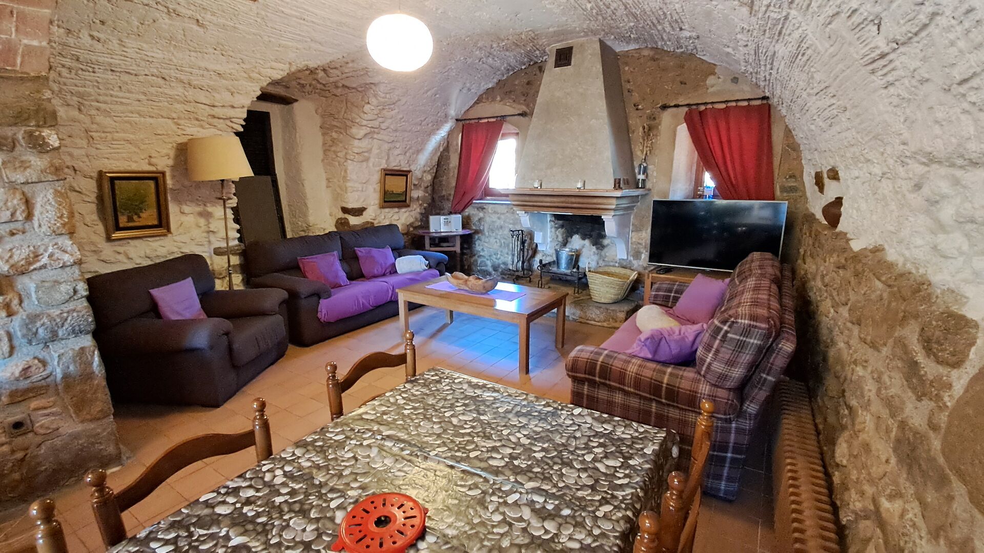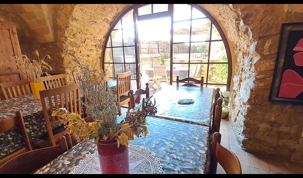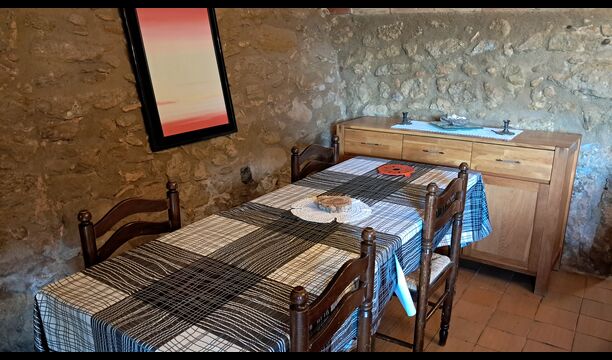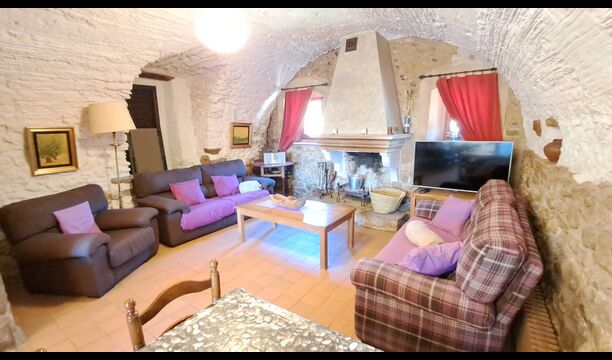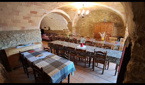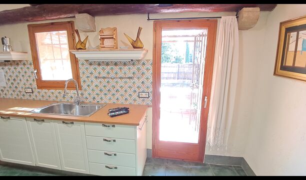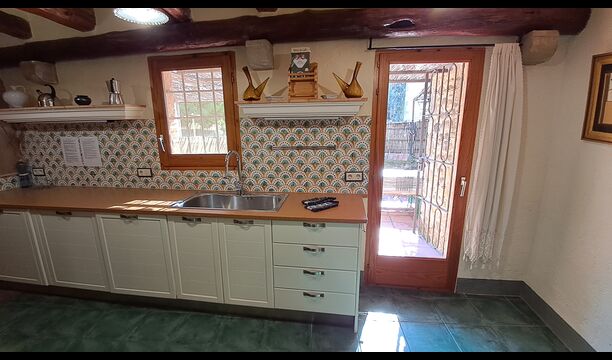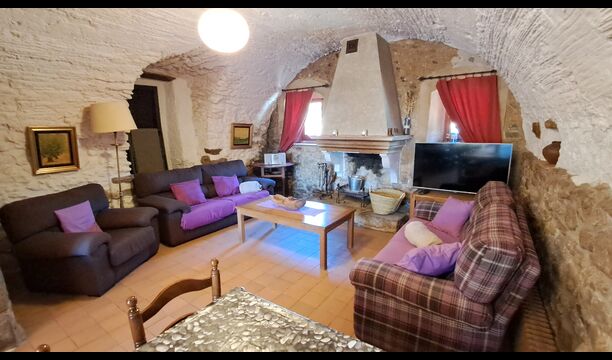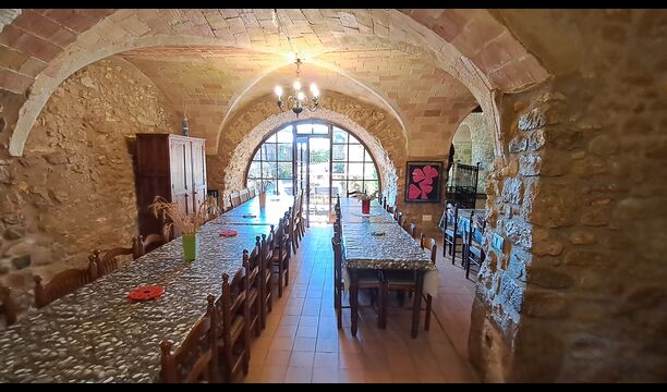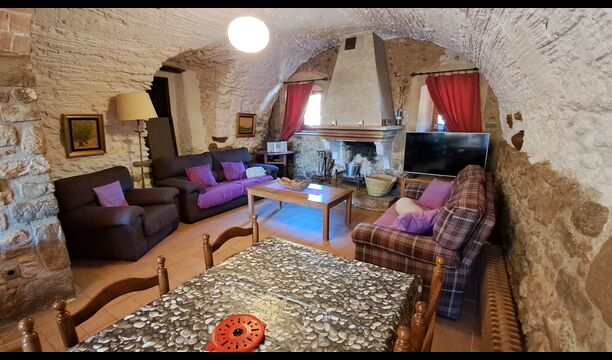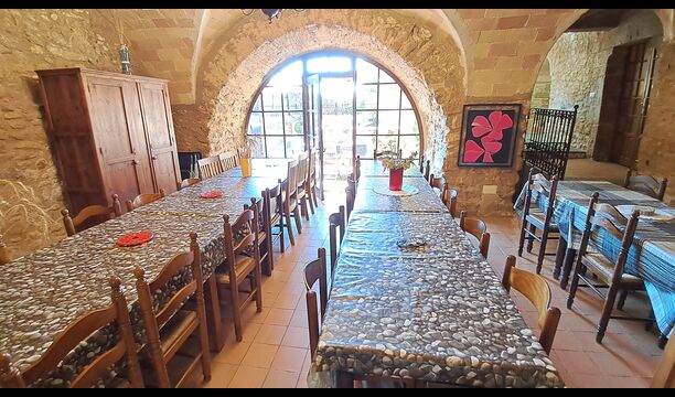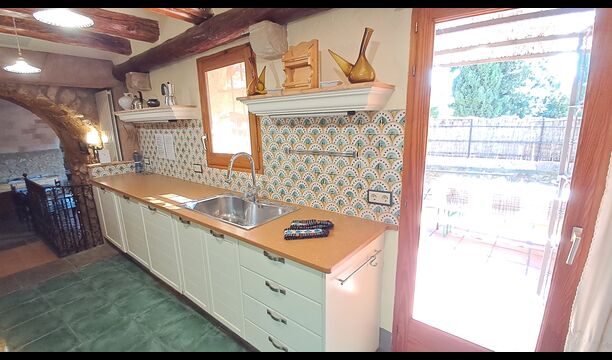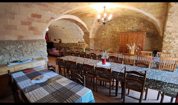 Aquest allotjament té 130 m2 i disposa d'un menjador de 50 m2, el que ens permet realitzar les trobades de grups i àpats molt còmodament. >. La cuina és gran i está completament equipada.