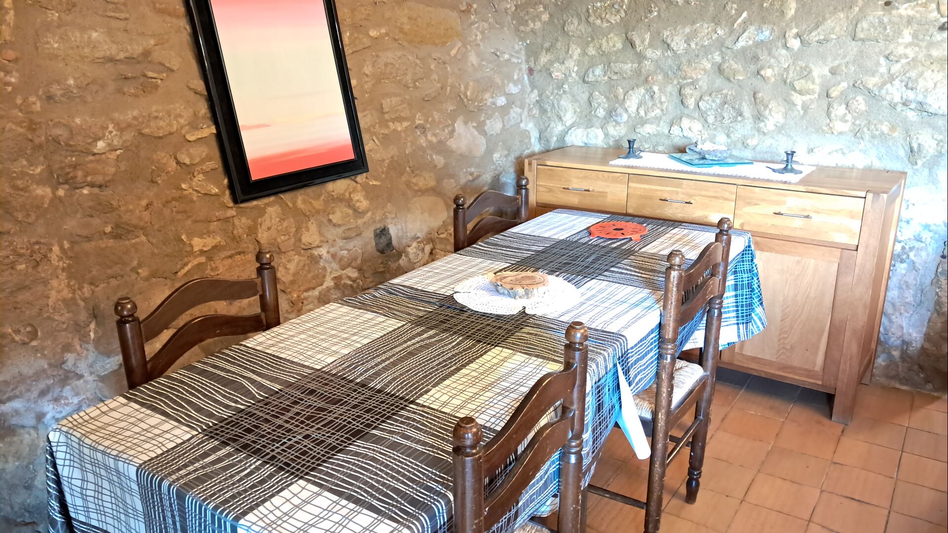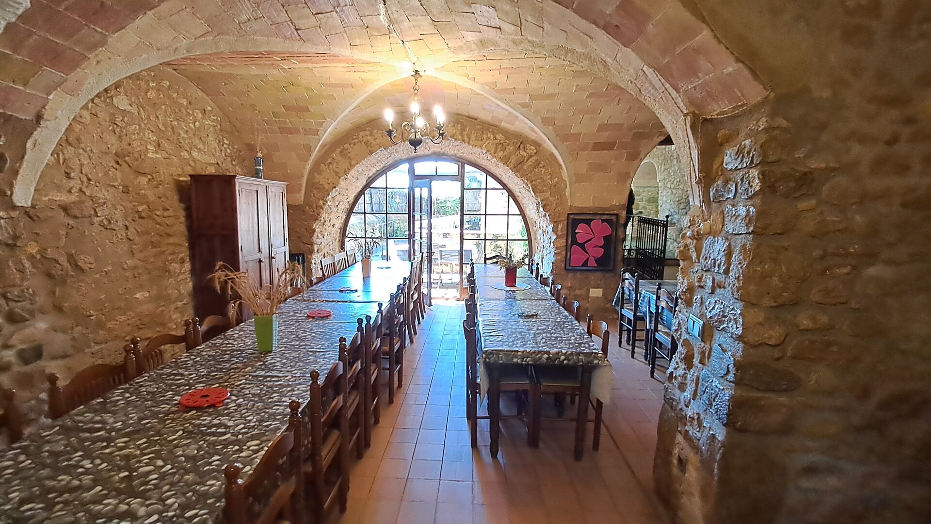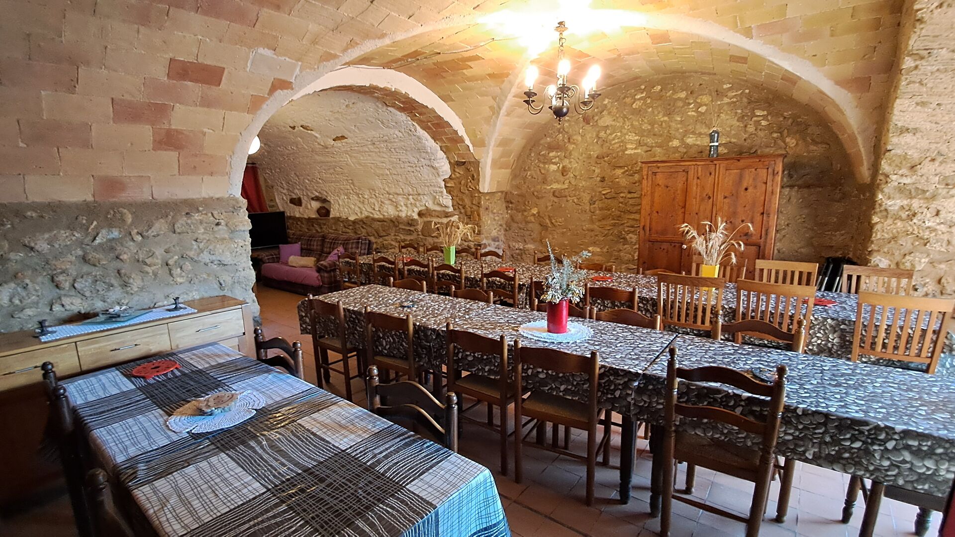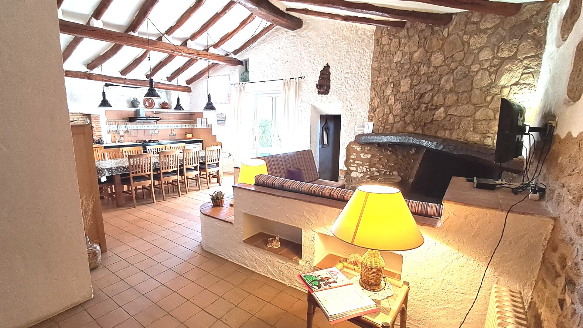 Aquest allotjament té 130 m2 i disposa d'un menjador de 50 m2, el que ens permet realitzar les trobades de grups i àpats molt còmodament. >. La cuina és gran i está completament equipada.