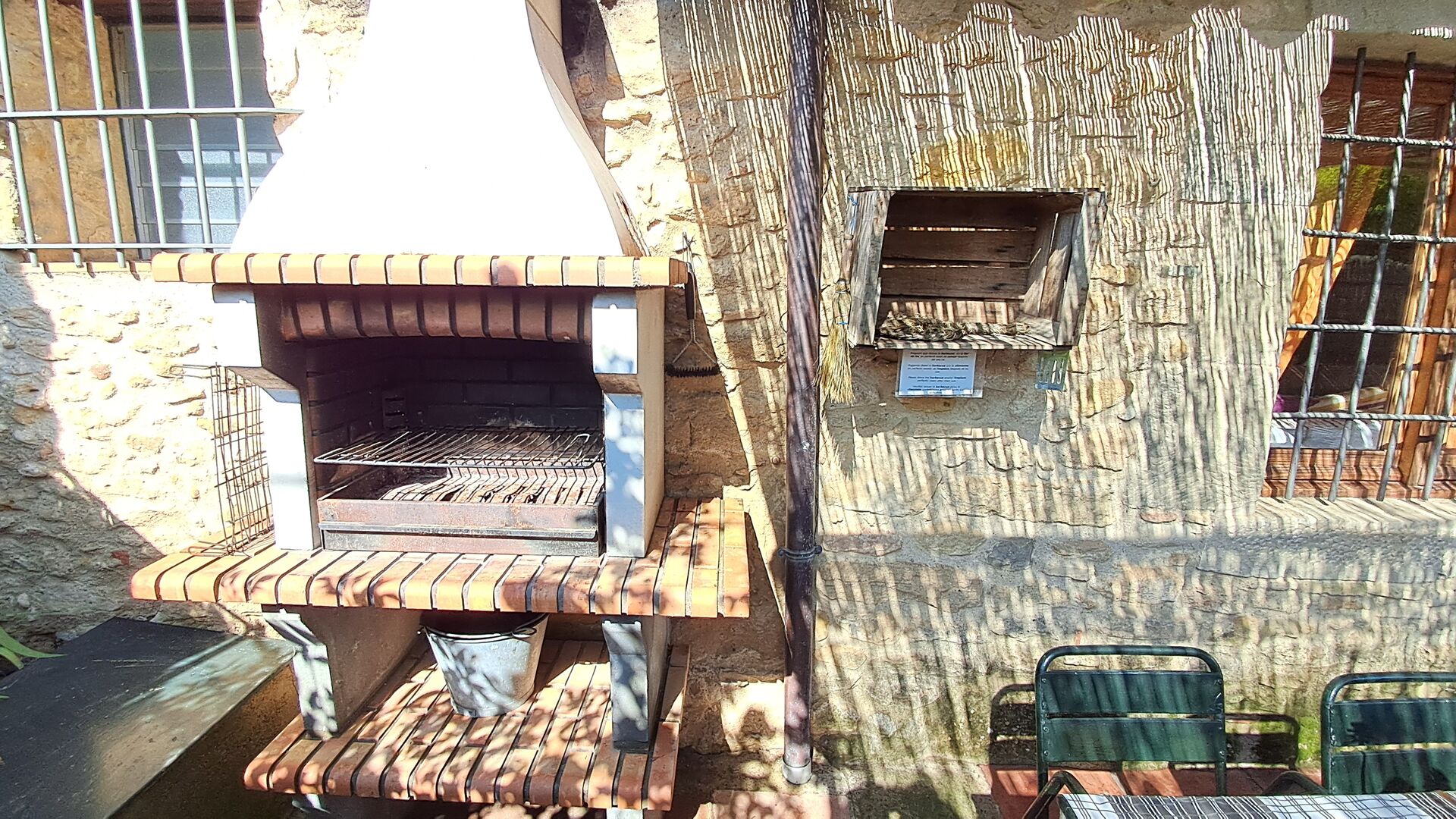 El jardí també té un galliner amb dues gallines i dos conills.
