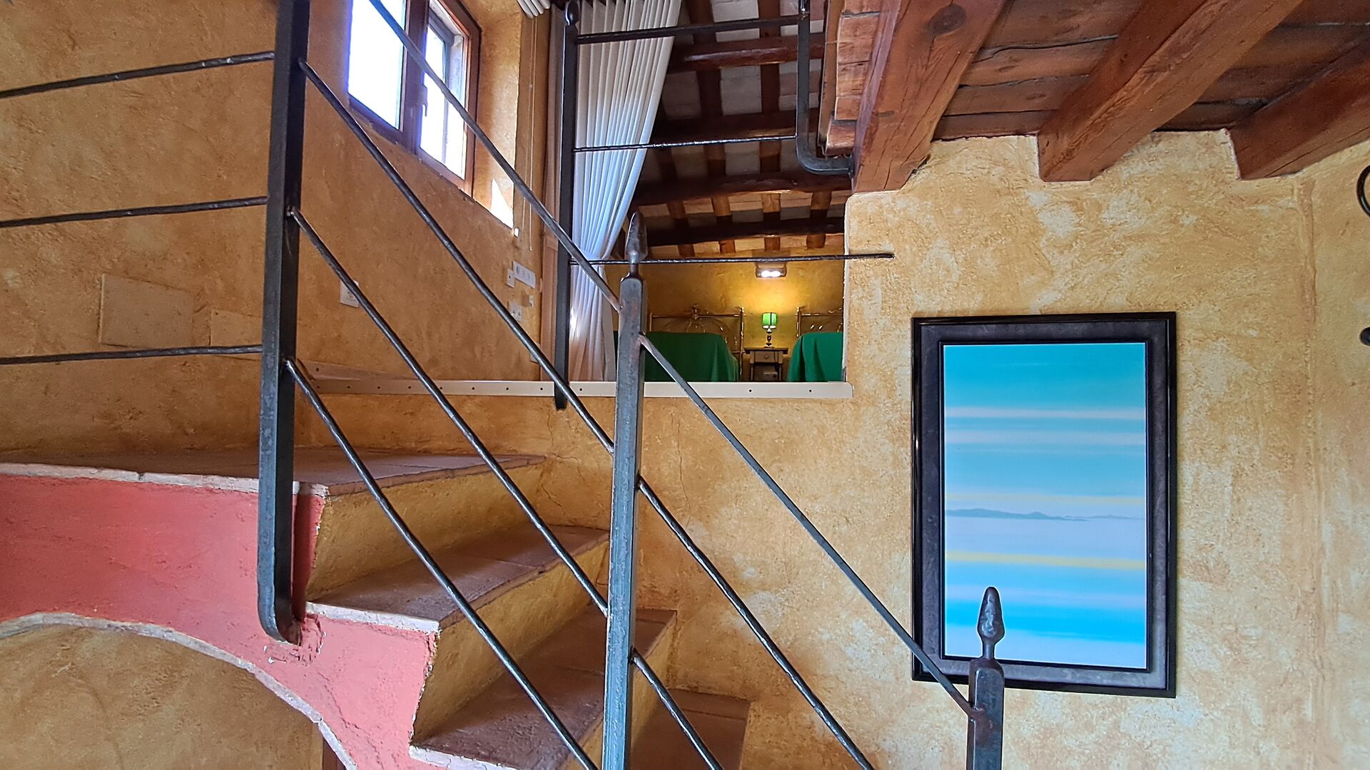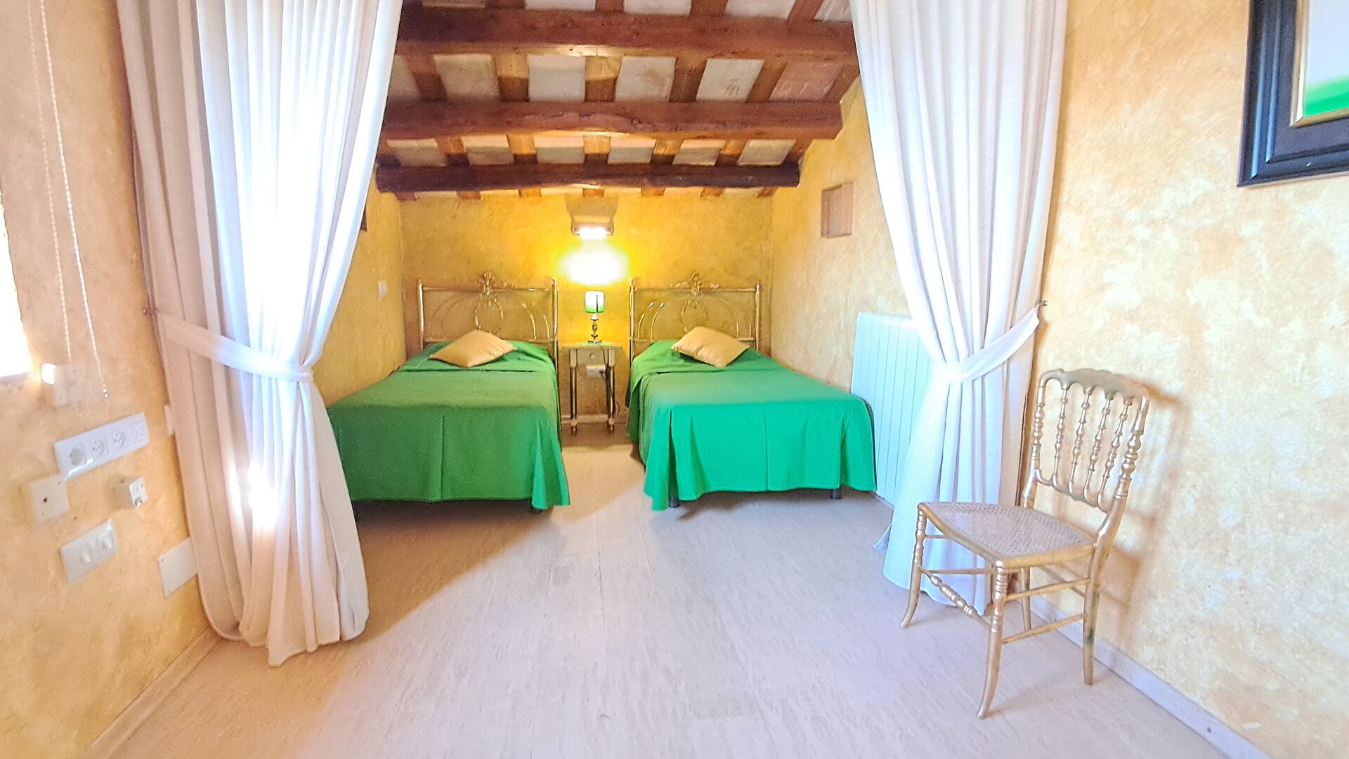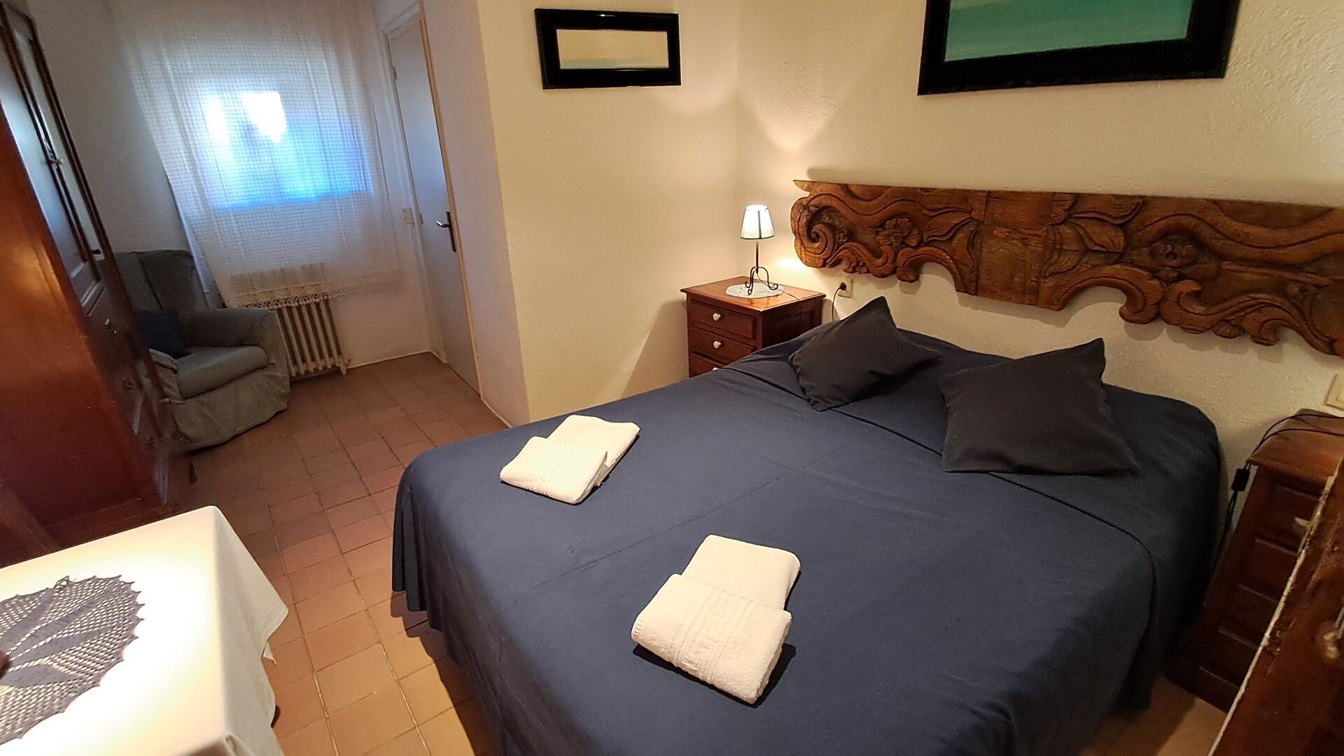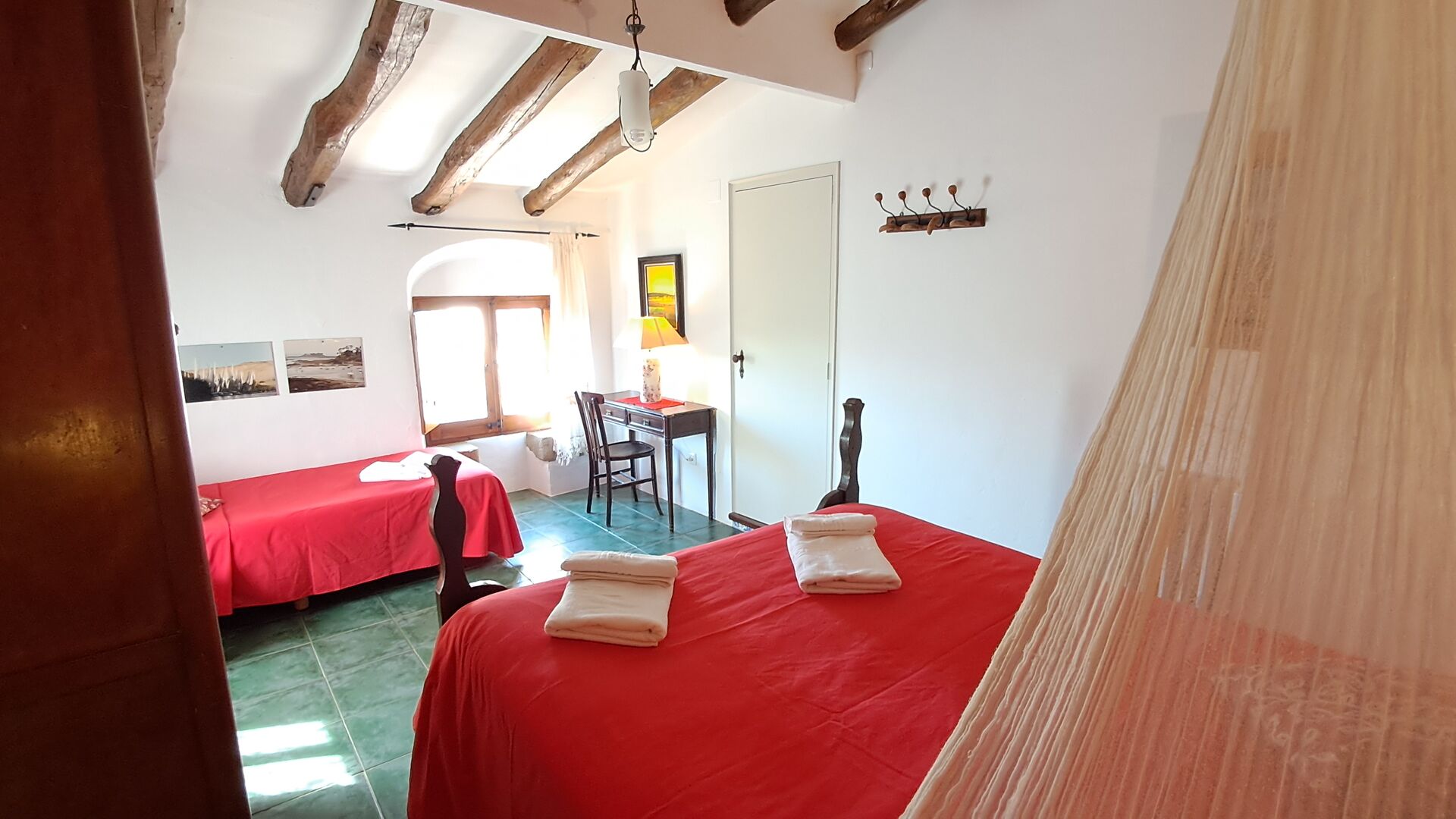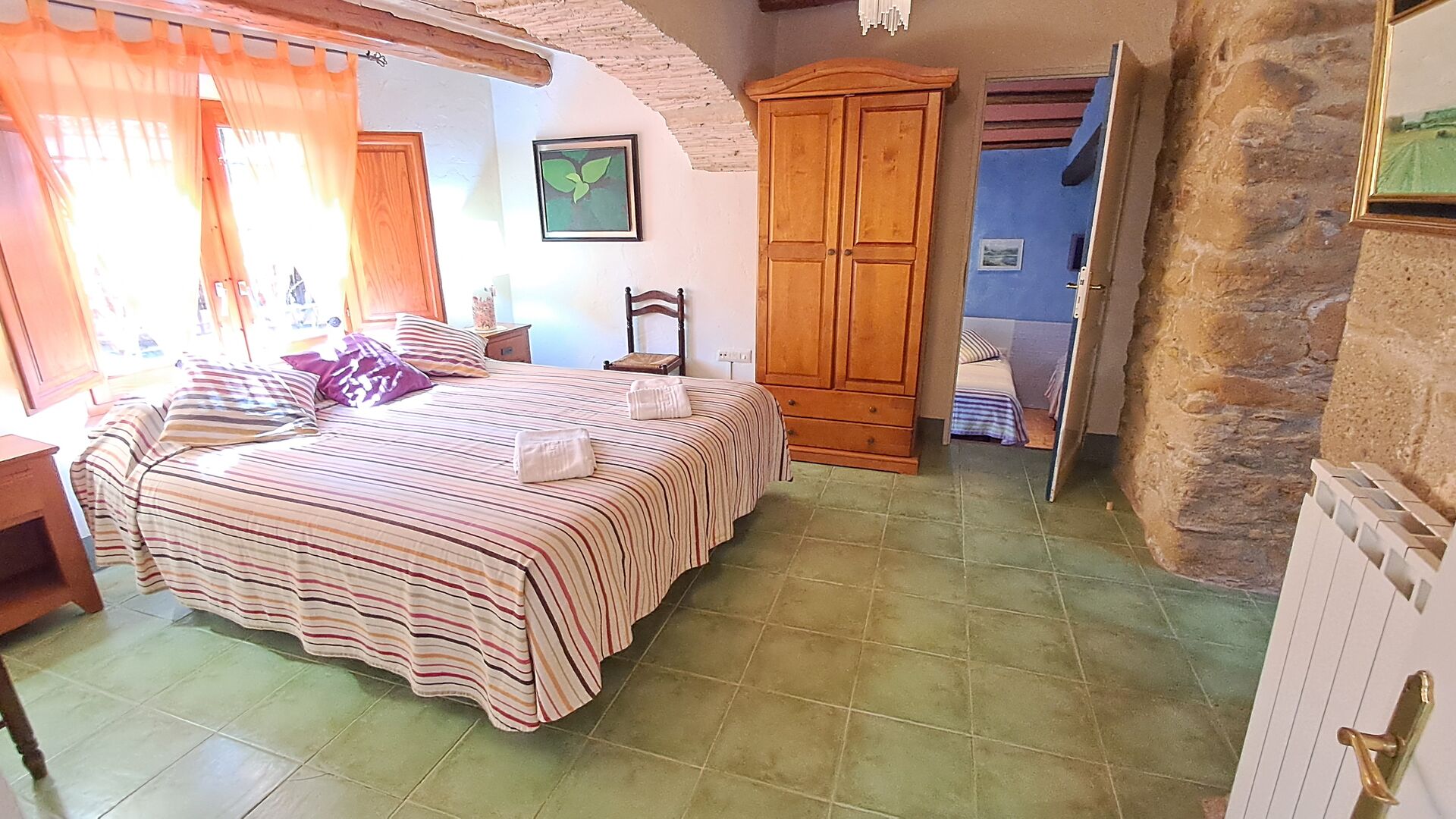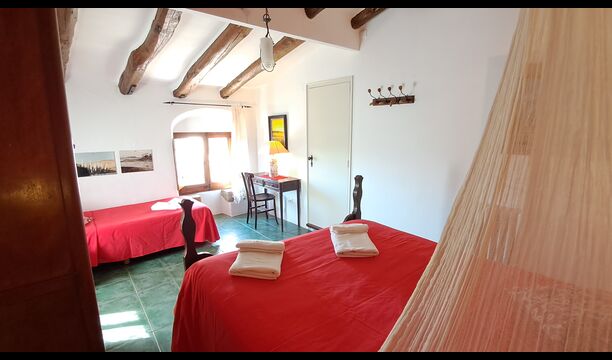 Habitació La Finestreta: Ideal per a 3 persones. Disposa d’un dormitori amb llit de matrimoni i llit individual, dutxa/WC (accés estret) a l’habitació